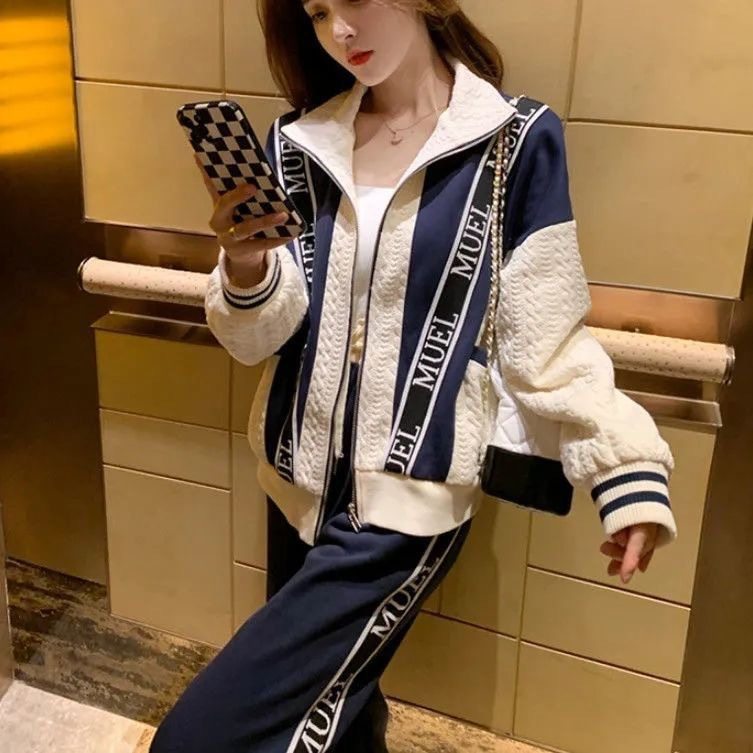 plus size Women's Casual Sports suit Autumn New Loose Western Style Sweatshirt Coat Fragrant European Two-piece Set