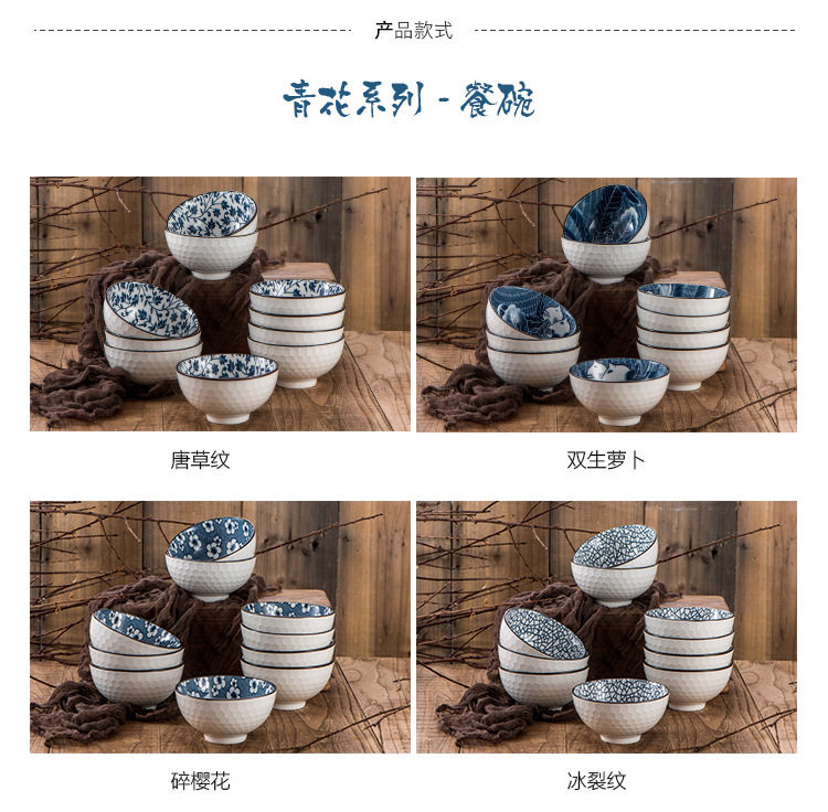 Ceramic Japanese Tableware Gift Bowl Set Creative Ceramic Bowl Gift Box Set Bowl Blue and White Porcelain Bowl Activity Gift