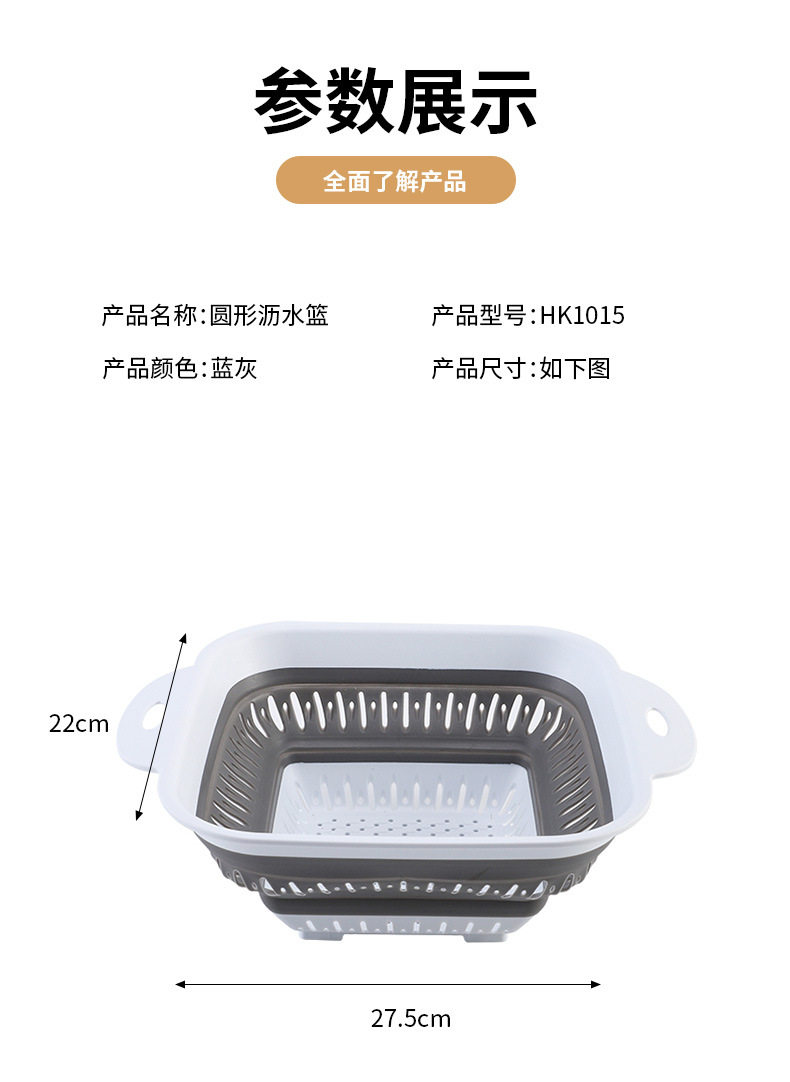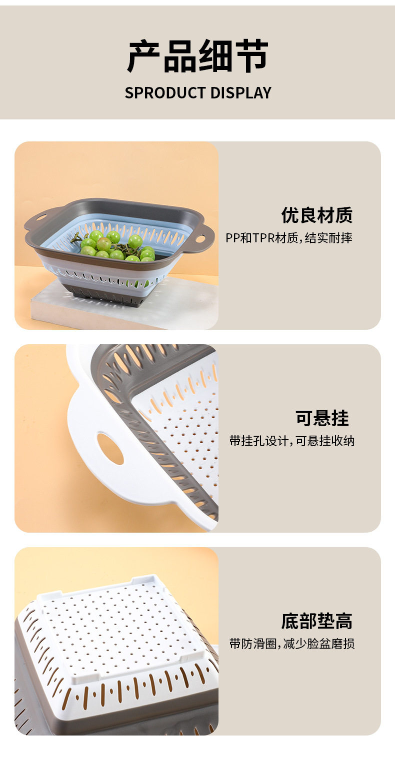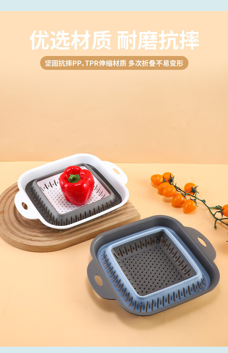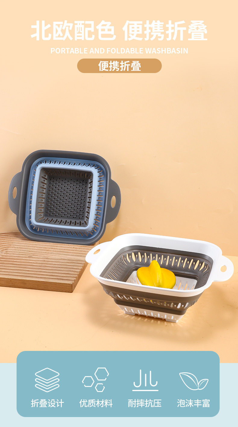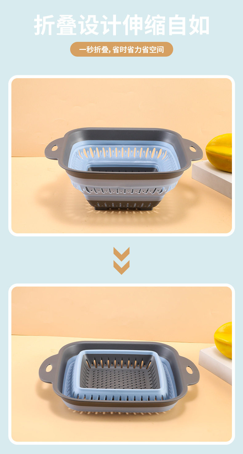Cross-border Creative Square Folding Draining Basket Multi-functional Kitchen Silicone Draining Basket for Vegetables and Fruits