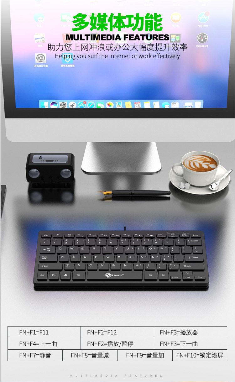 Li magnesium K12USB wired computer keyboard desktop home business notebook USB keypad chocolate black and white