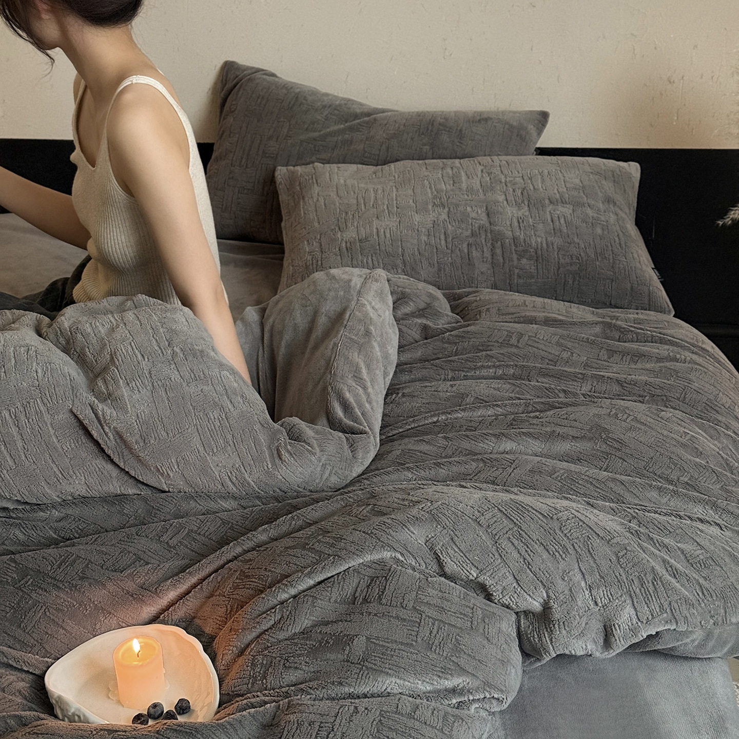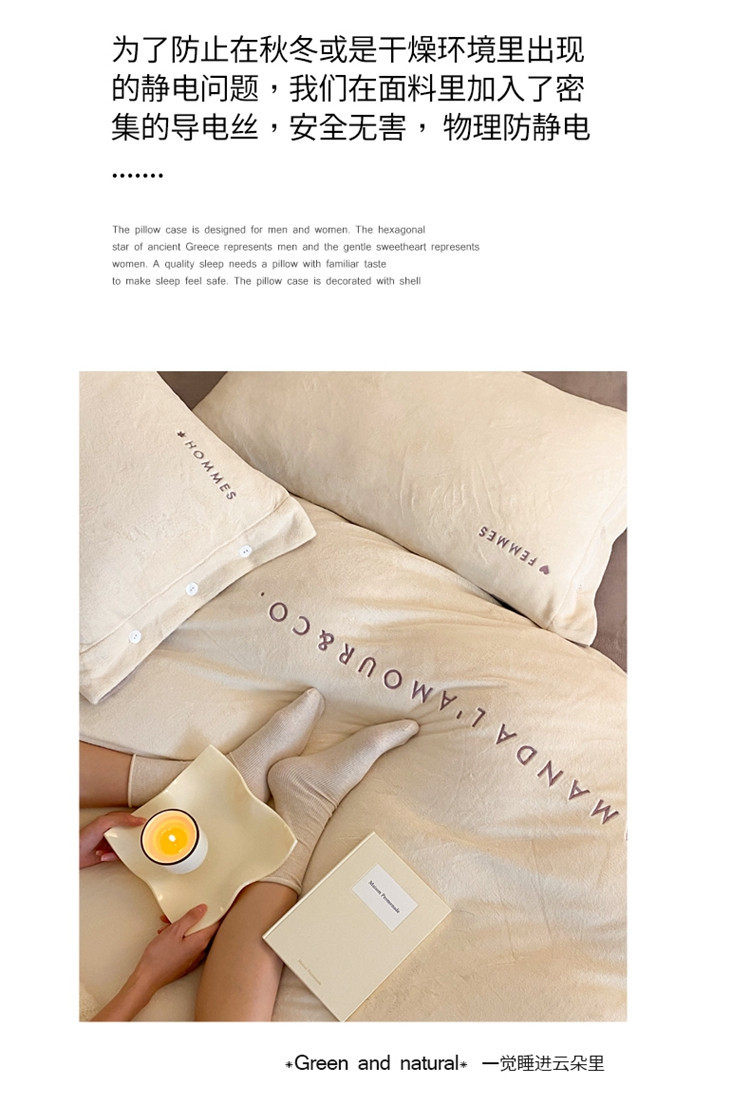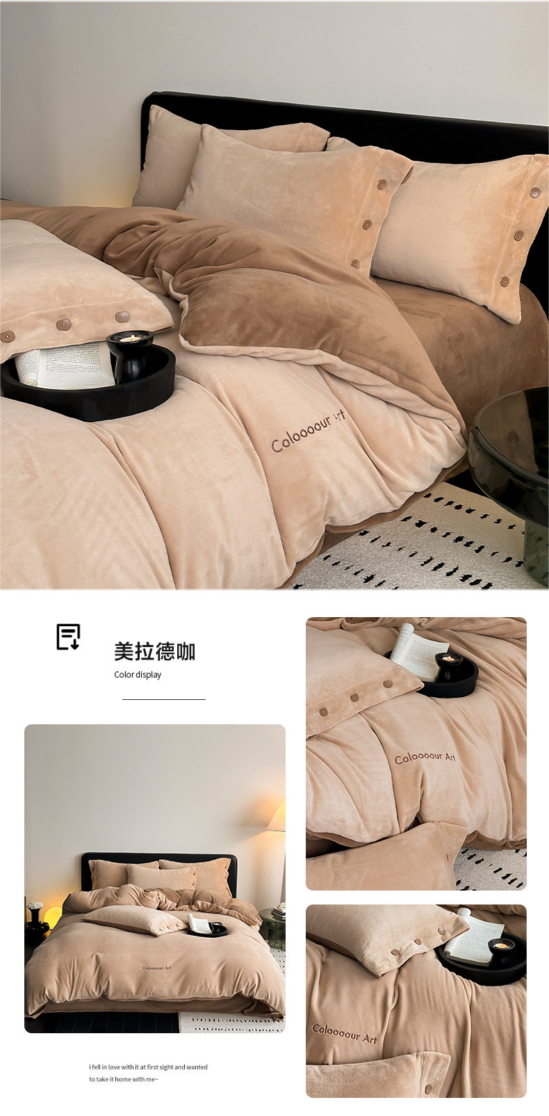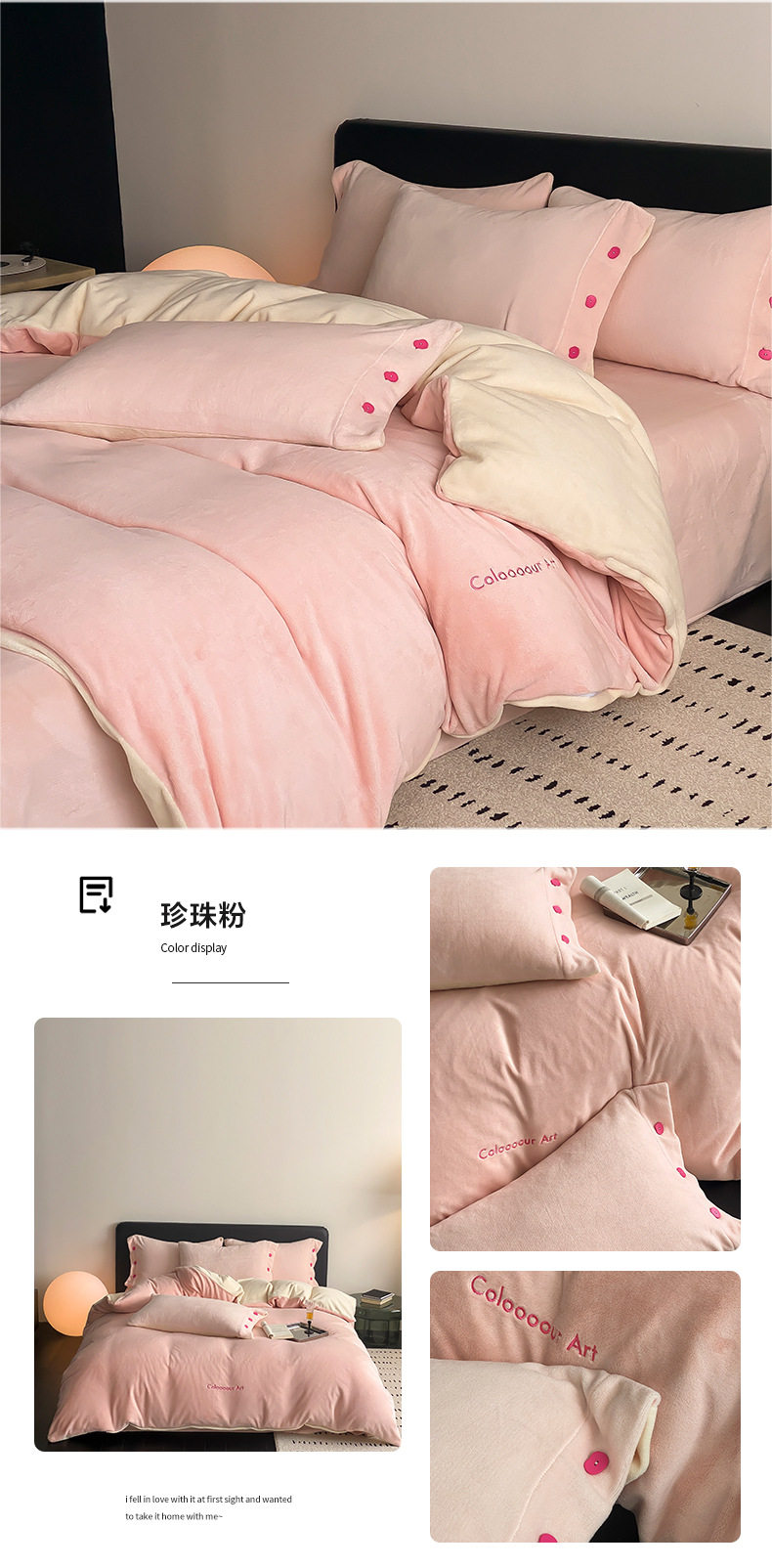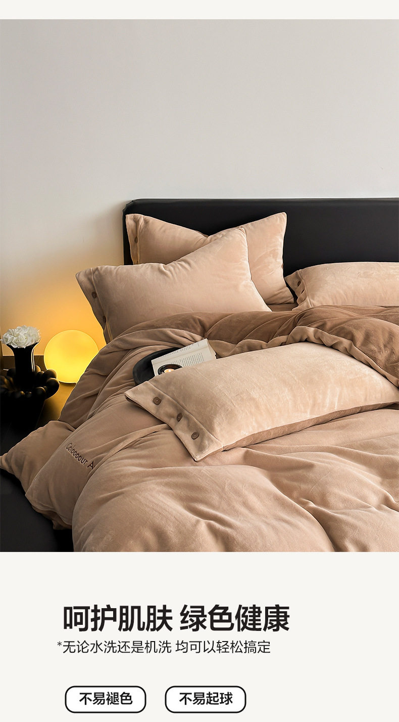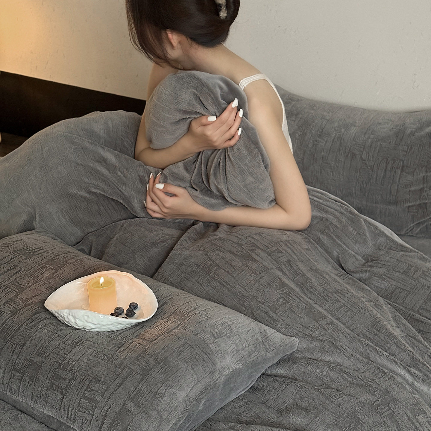 Hard to coax the same | high weight milk velvet four-piece set A double-sided velvet padded warm coral antistatic kit