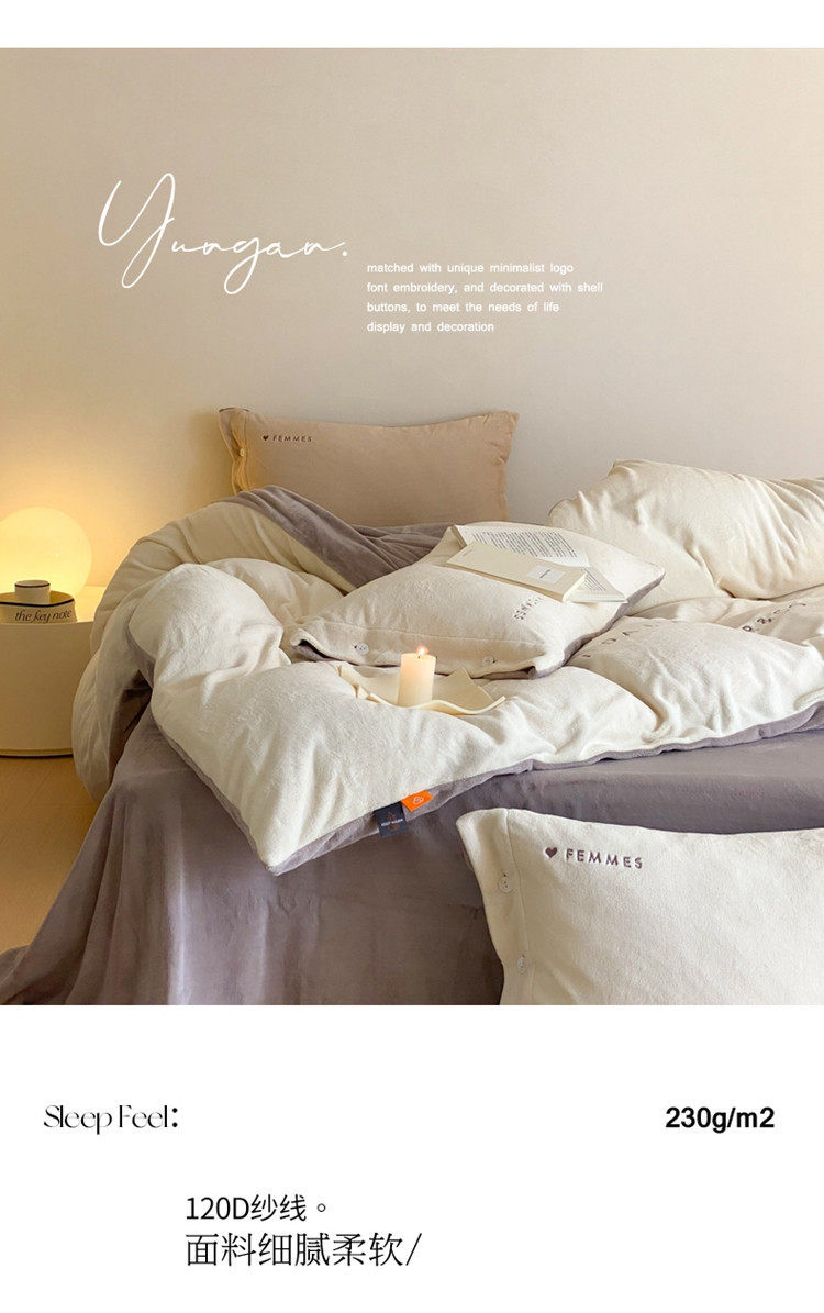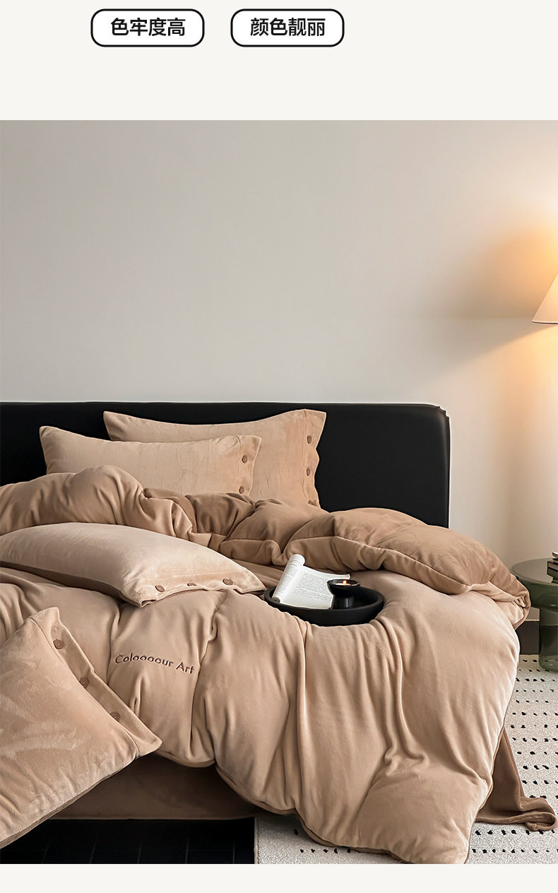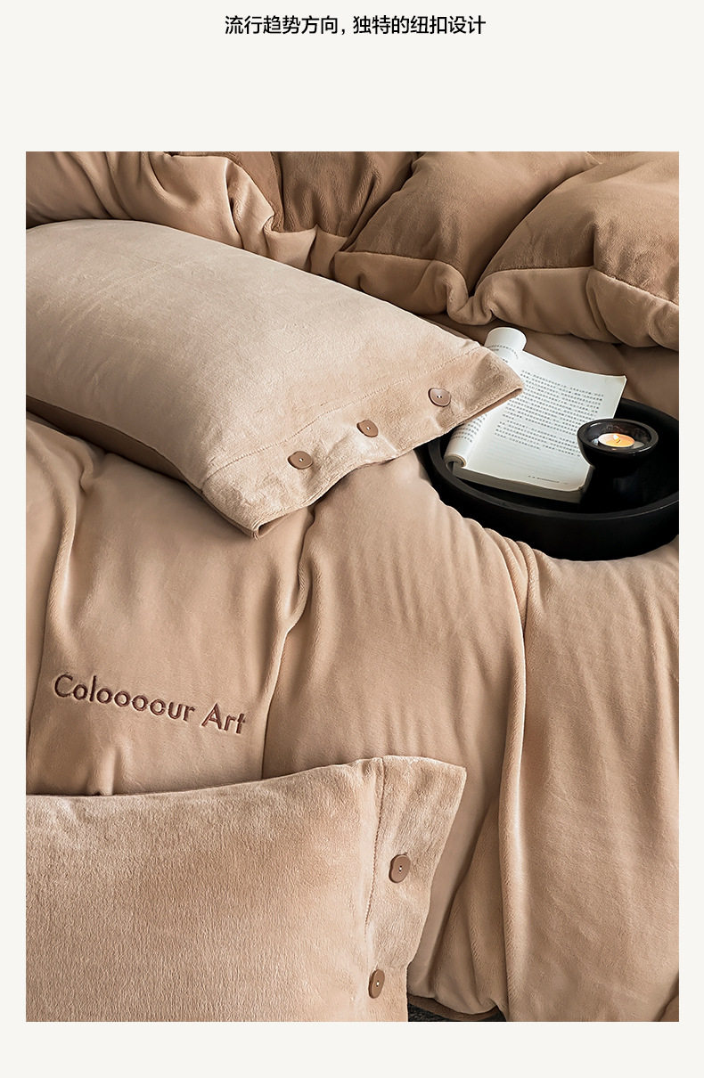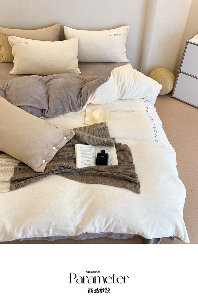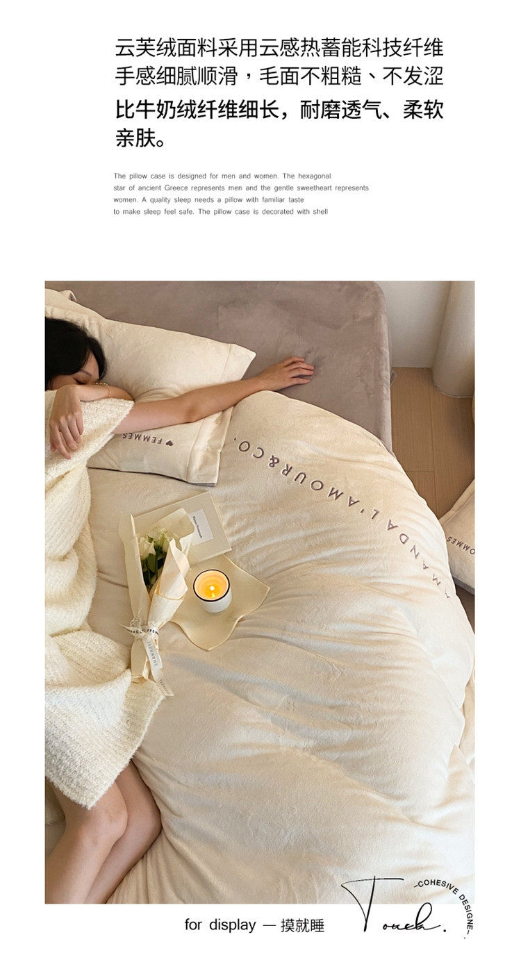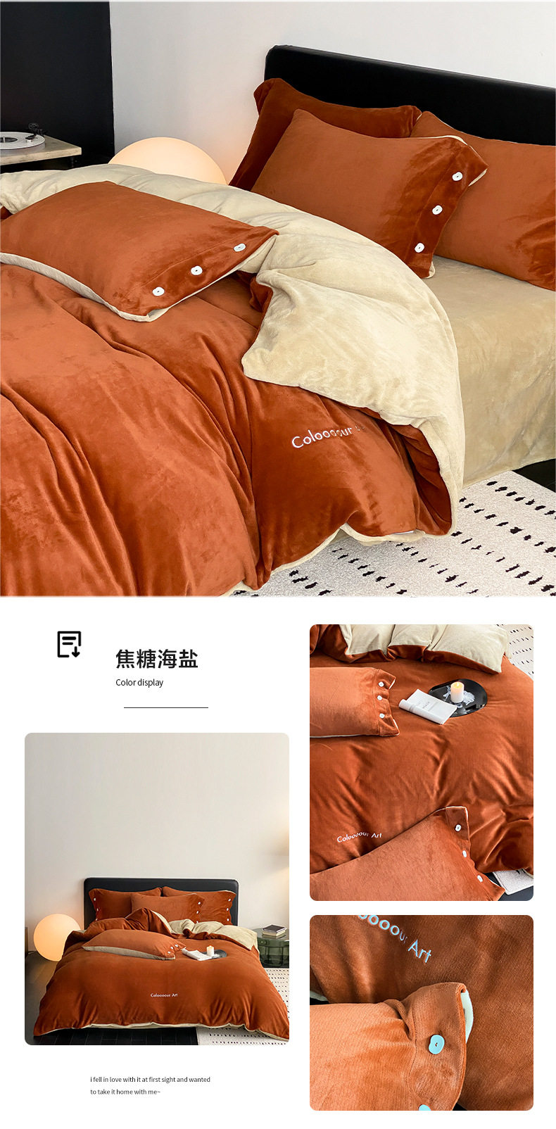 Hard to coax the same | high weight milk velvet four-piece set A double-sided velvet padded warm coral antistatic kit