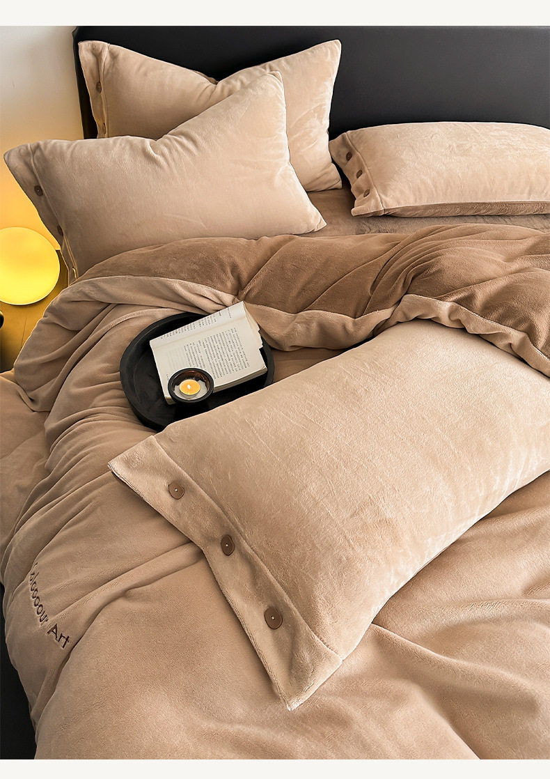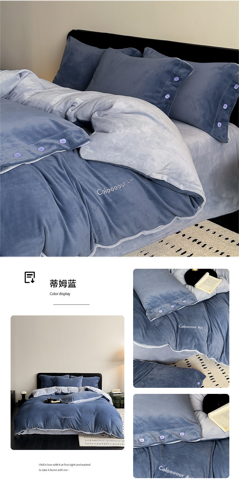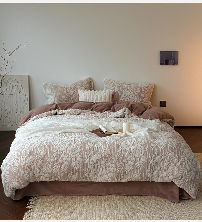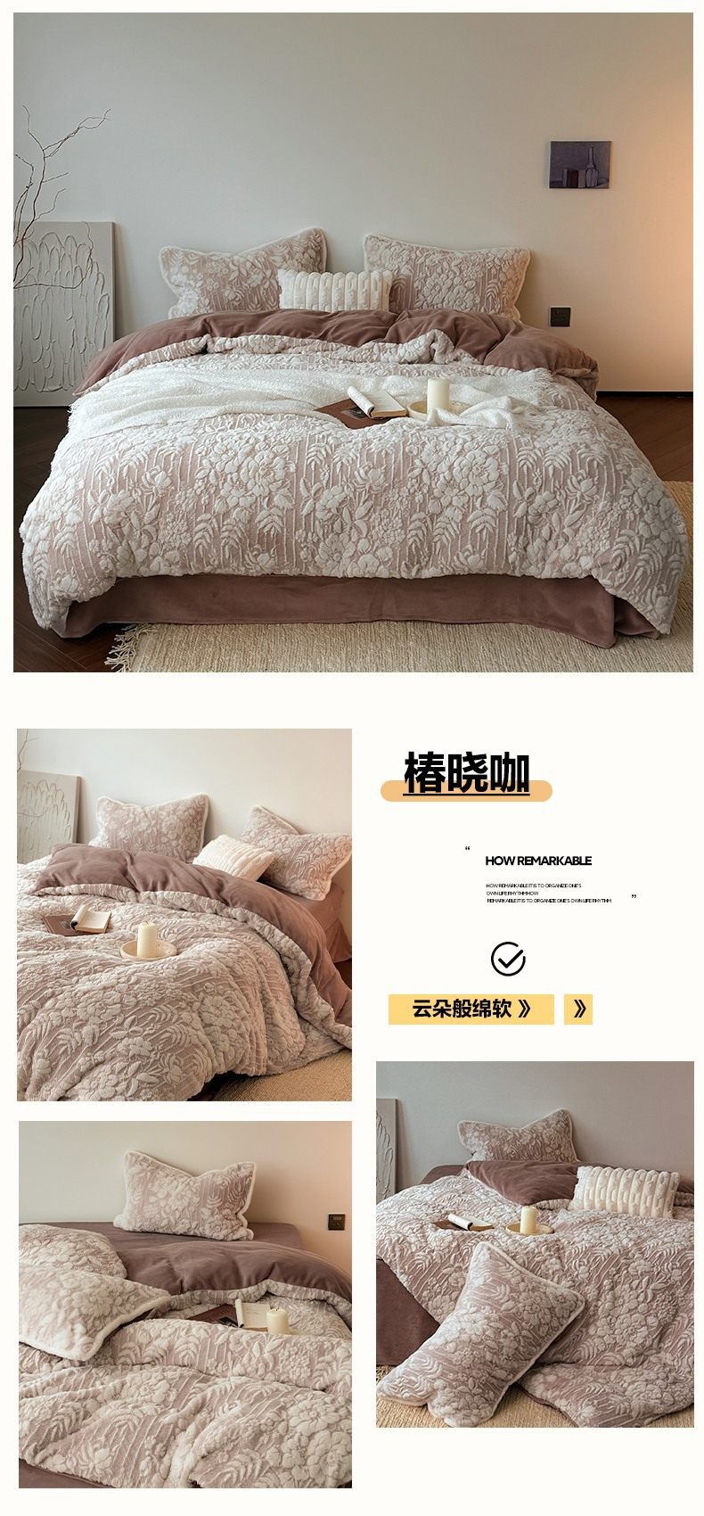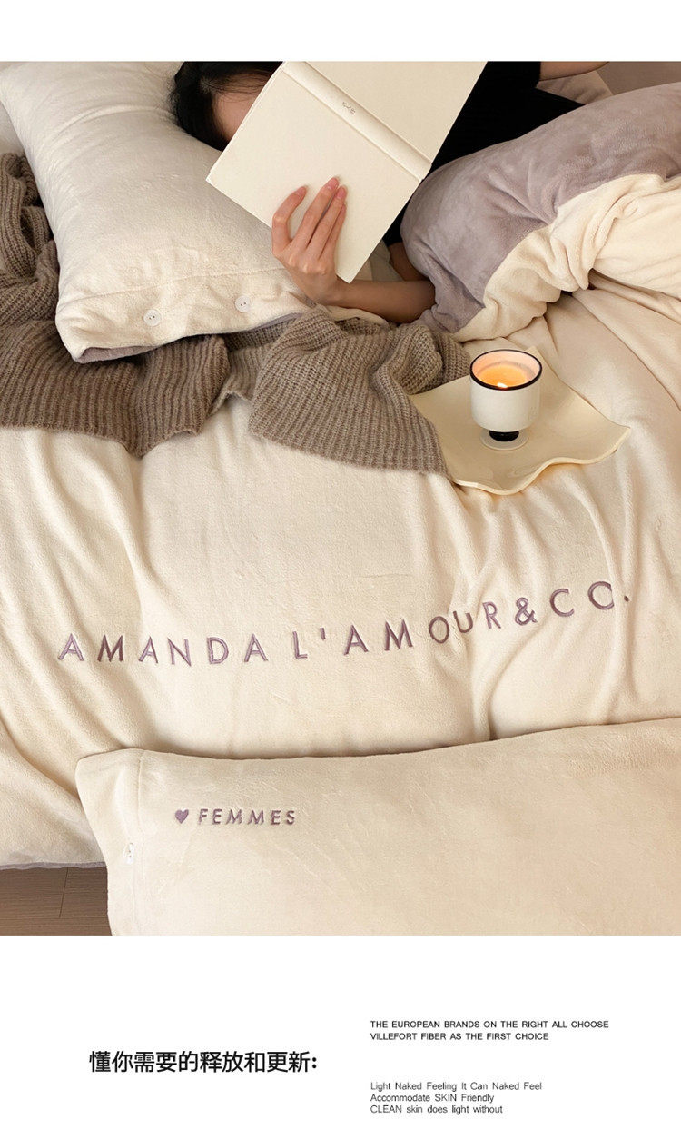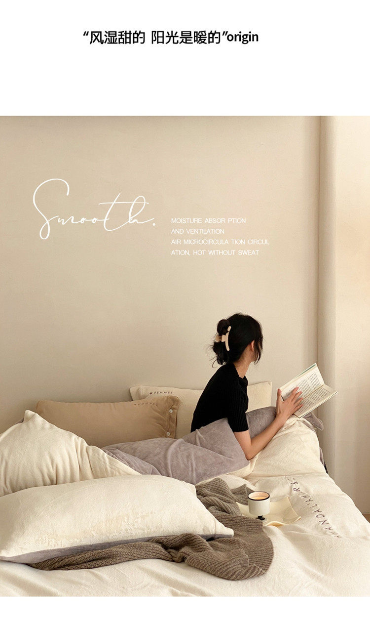 Hard to coax the same | high weight milk velvet four-piece set A double-sided velvet padded warm coral antistatic kit