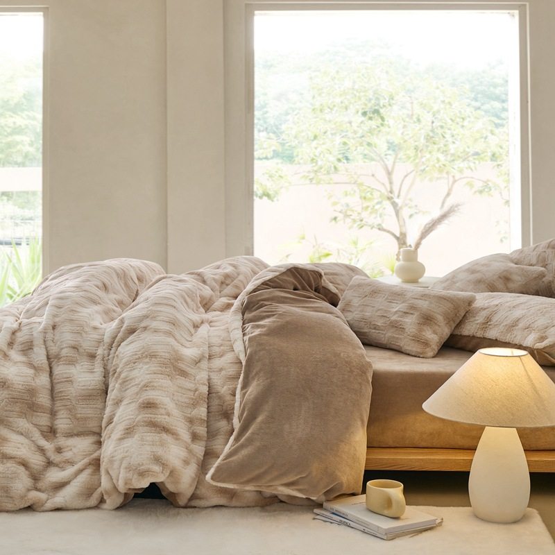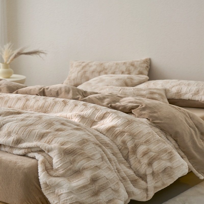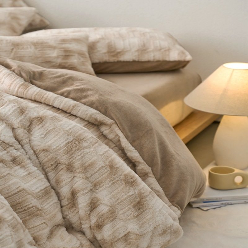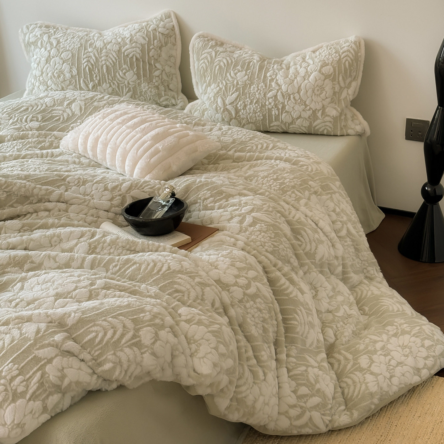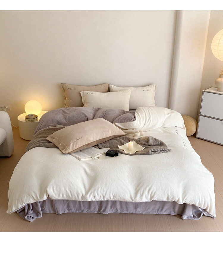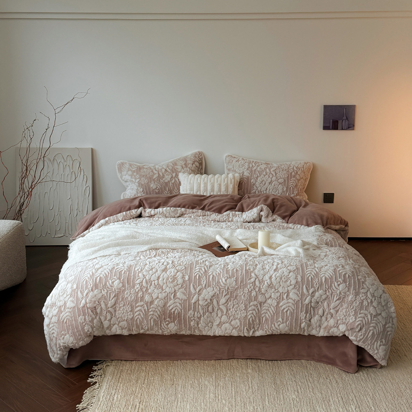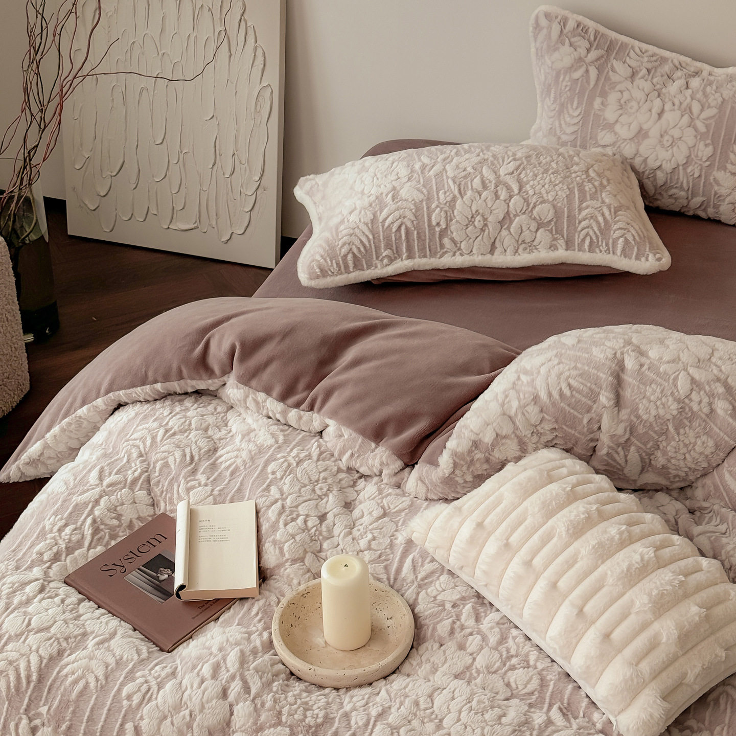 Hard to coax the same | high weight milk velvet four-piece set A double-sided velvet padded warm coral antistatic kit
