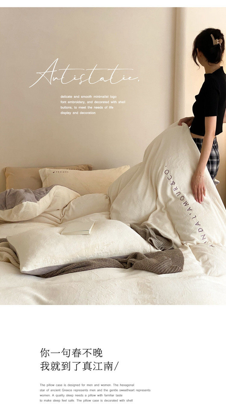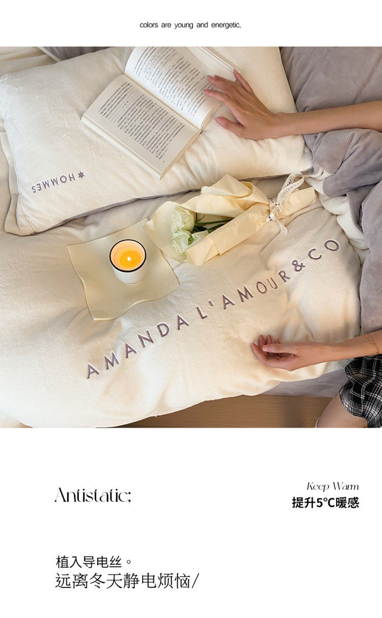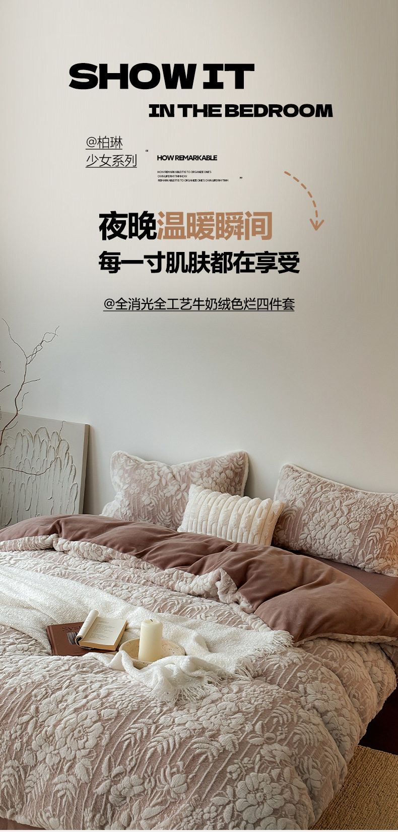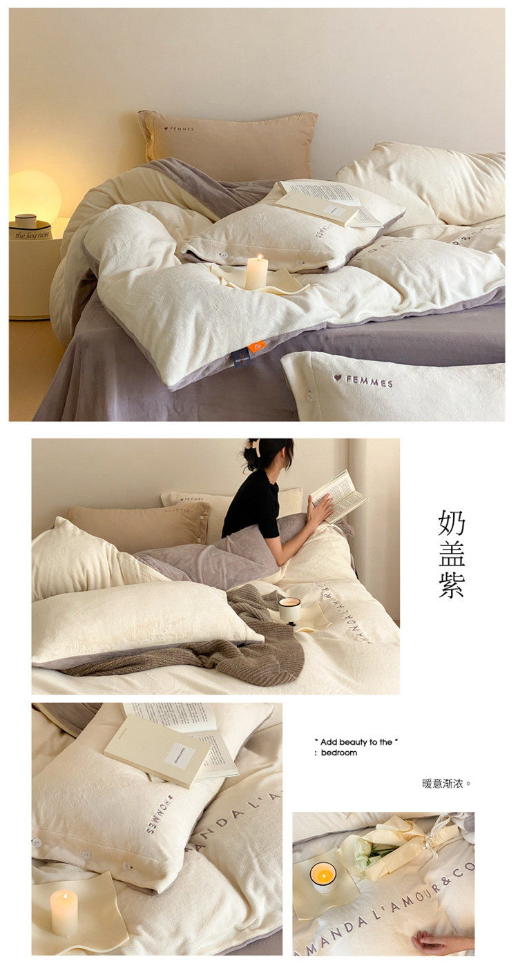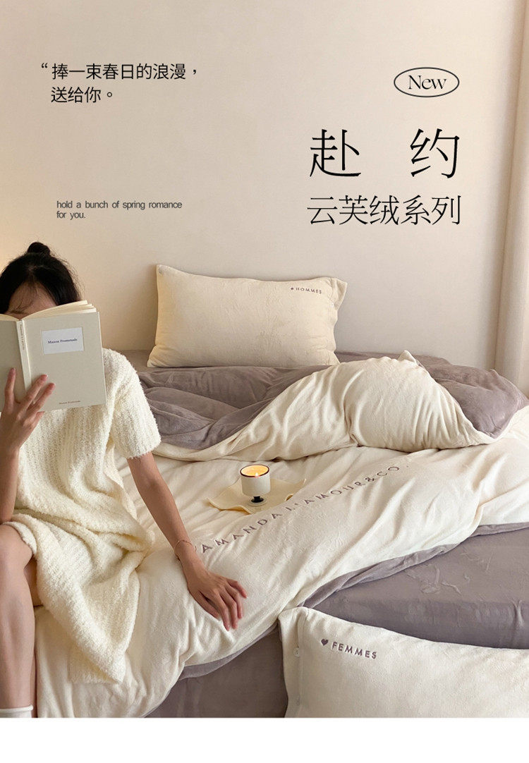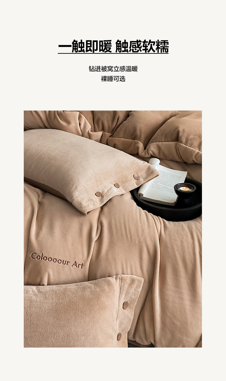Hard to coax the same | high weight milk velvet four-piece set A double-sided velvet padded warm coral antistatic kit