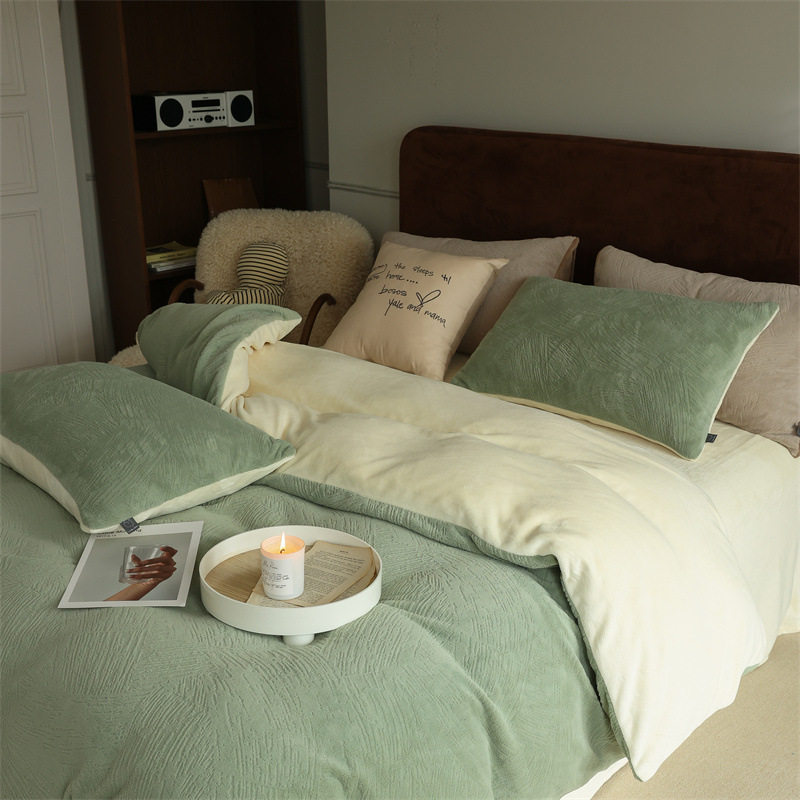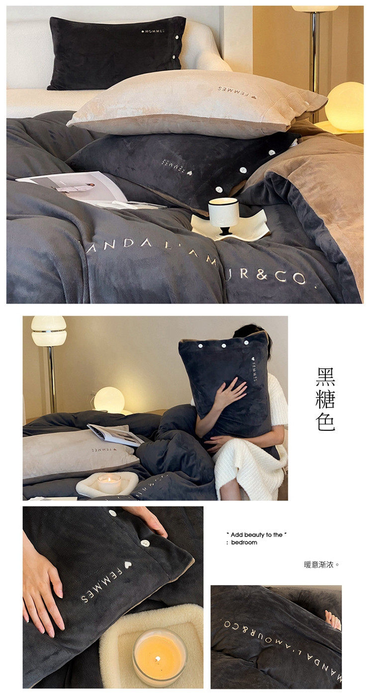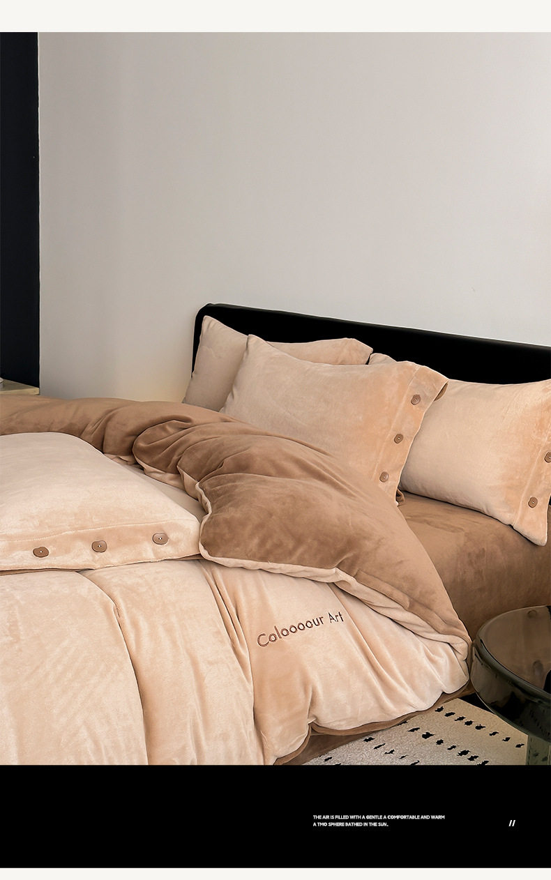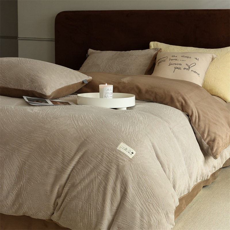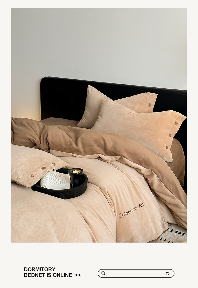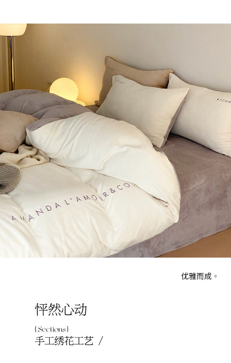 Hard to coax the same | high weight milk velvet four-piece set A double-sided velvet padded warm coral antistatic kit