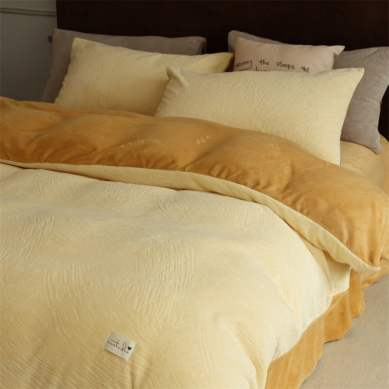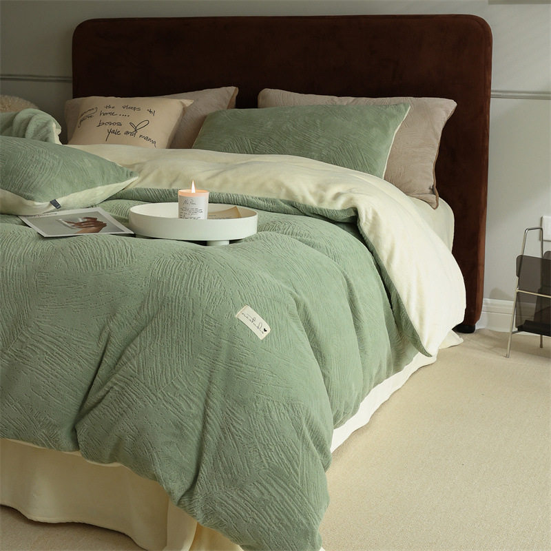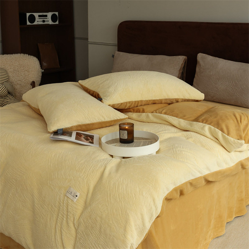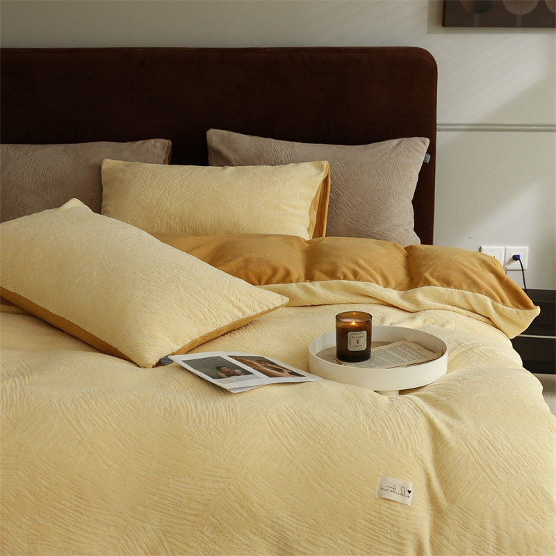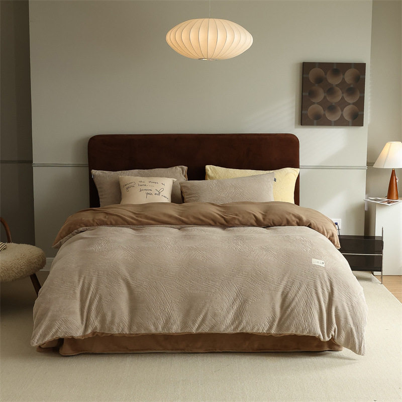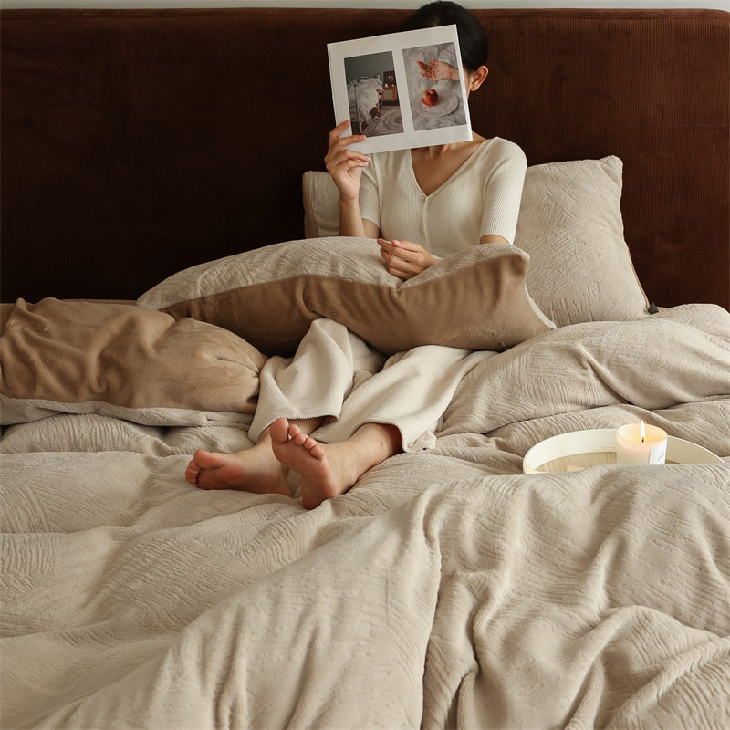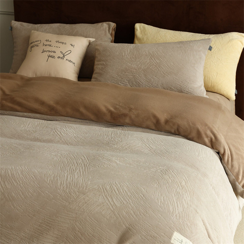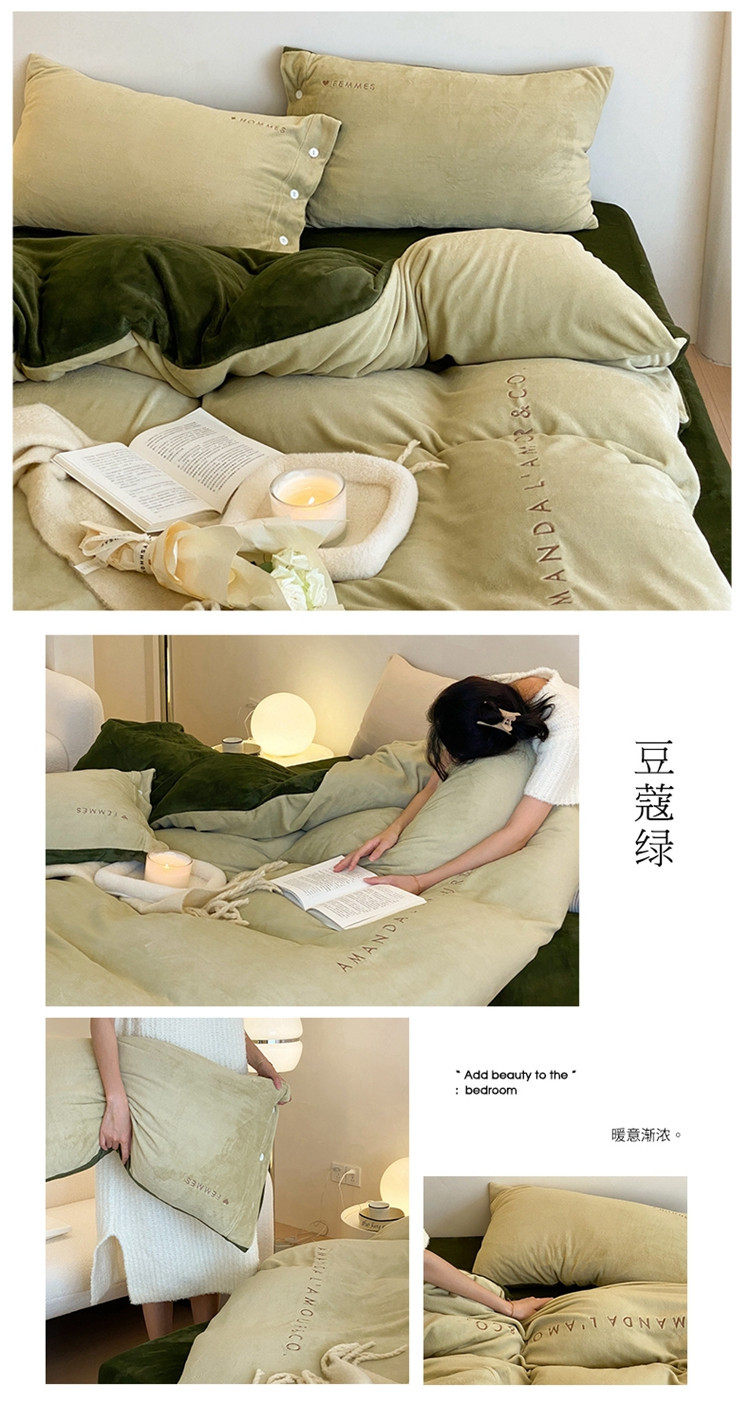 Hard to coax the same | high weight milk velvet four-piece set A double-sided velvet padded warm coral antistatic kit