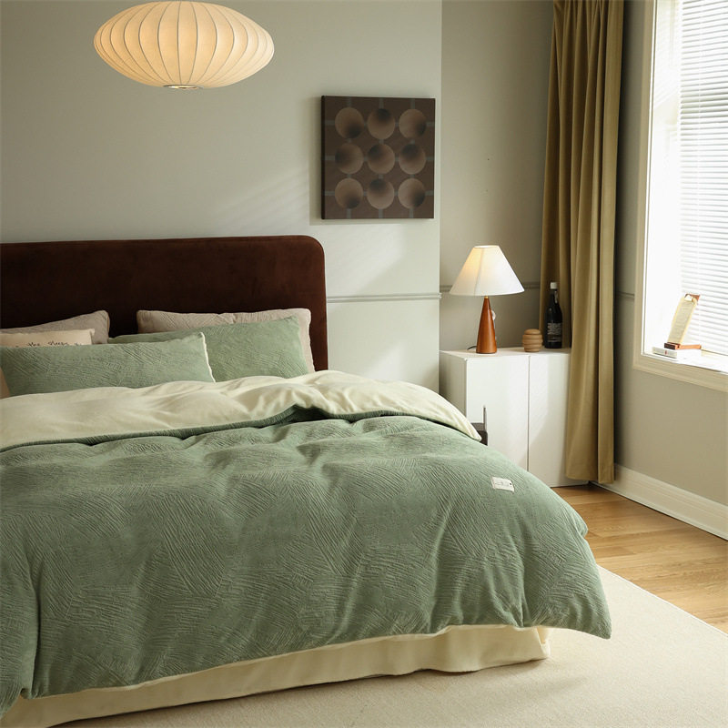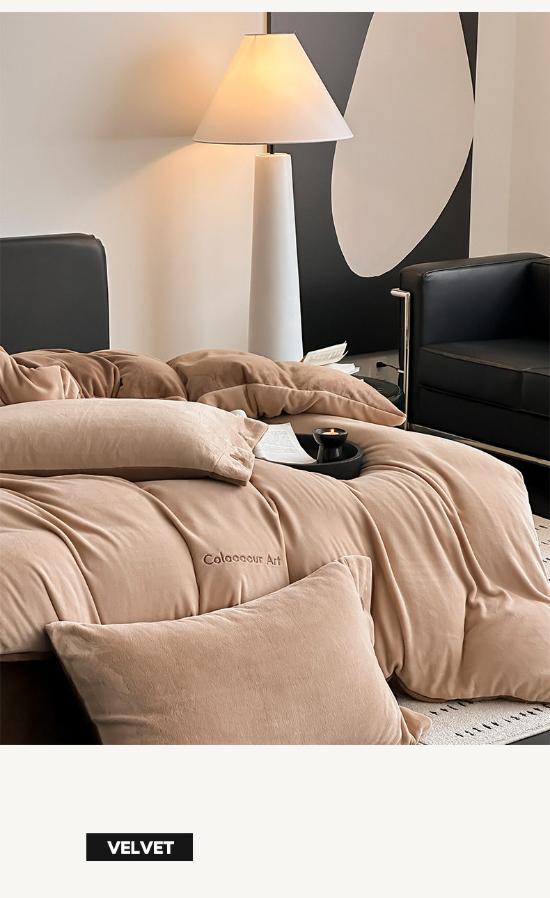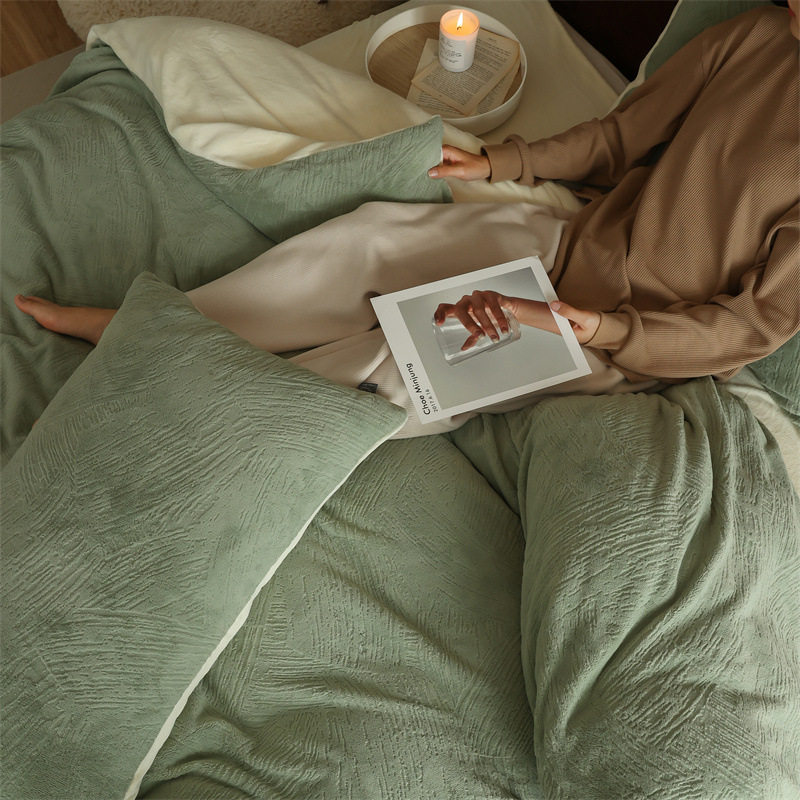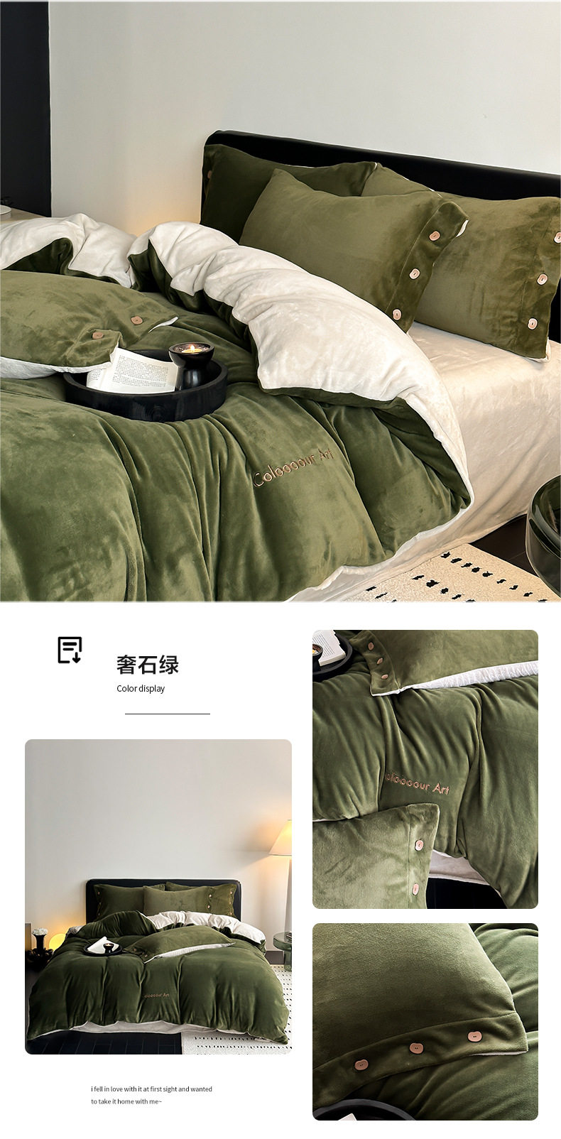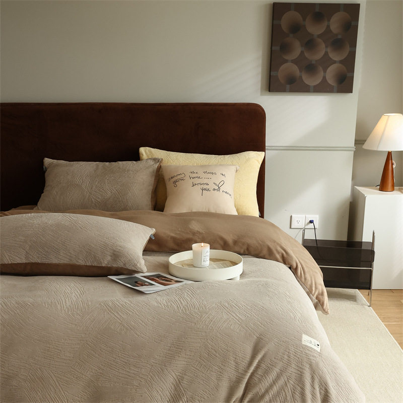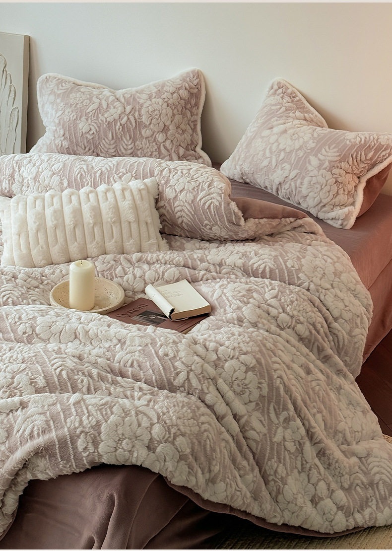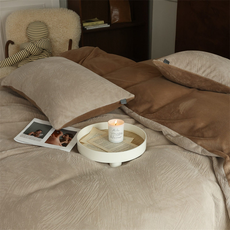 Hard to coax the same | high weight milk velvet four-piece set A double-sided velvet padded warm coral antistatic kit