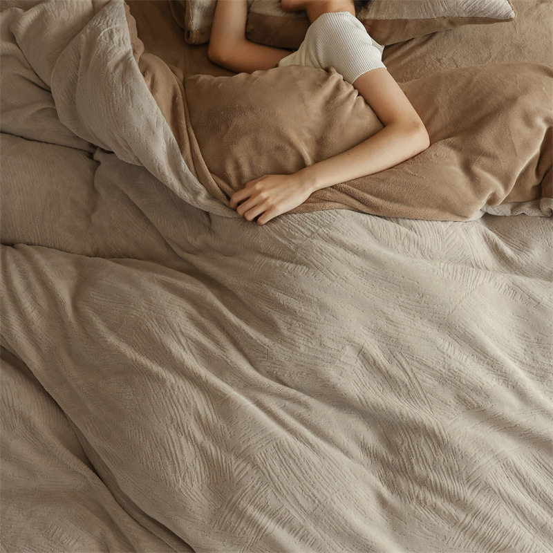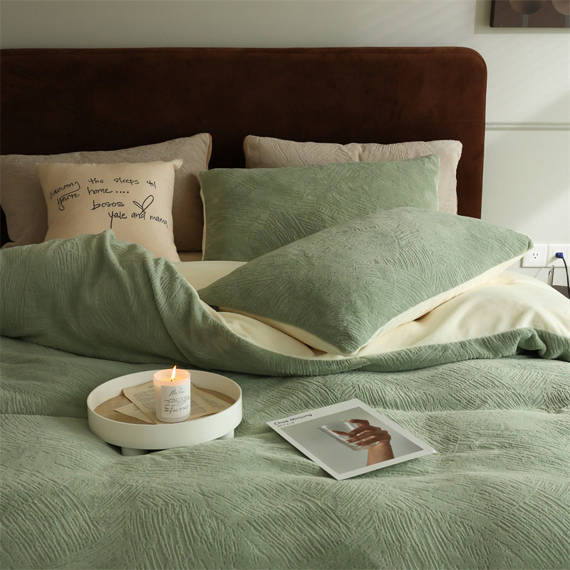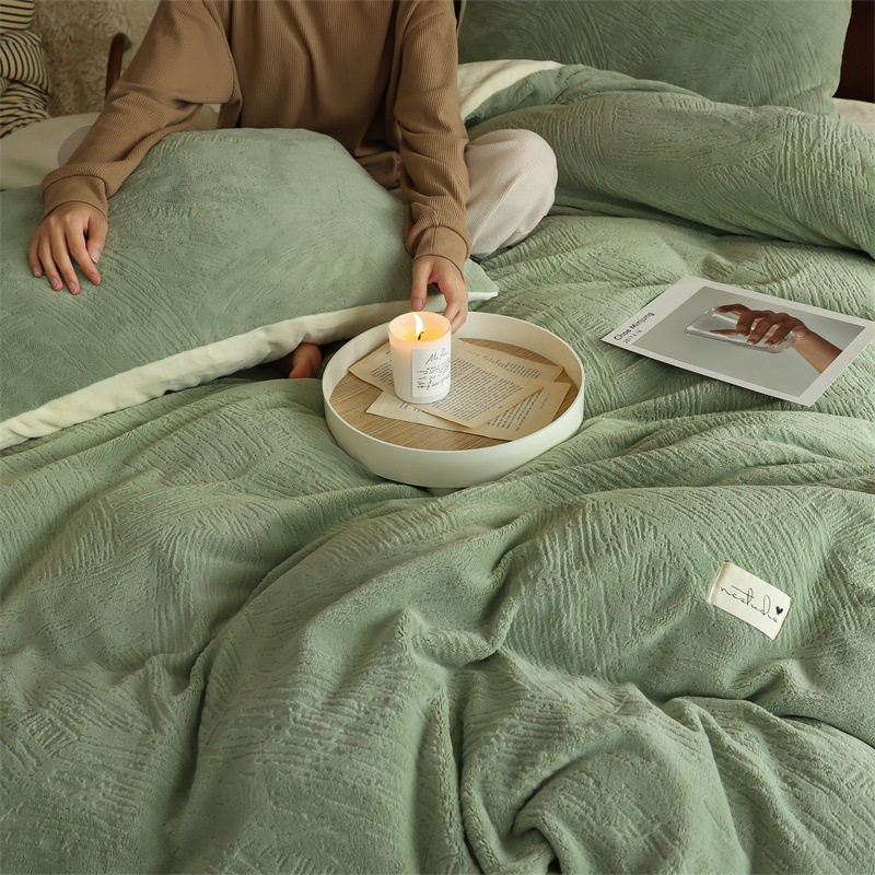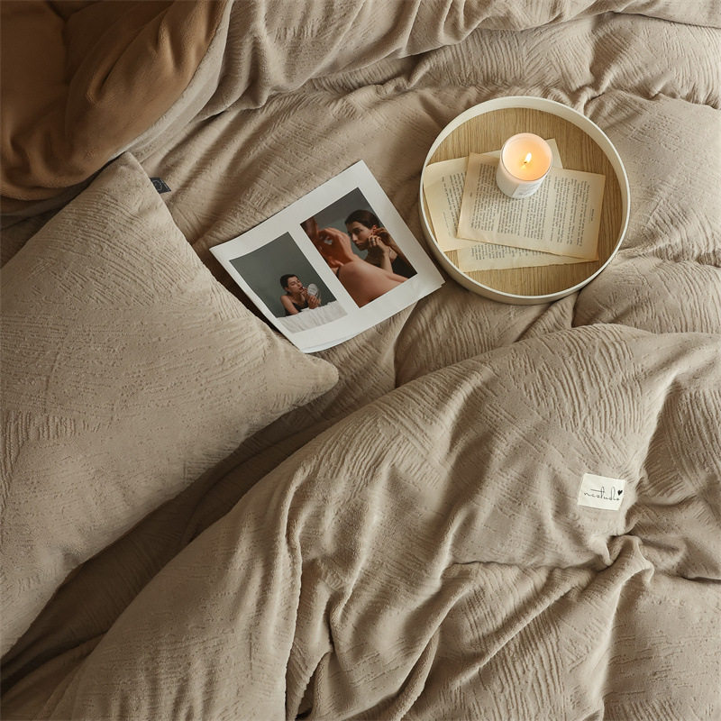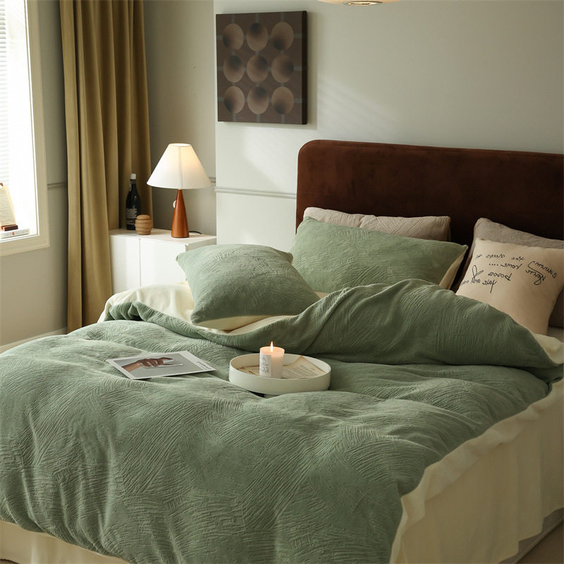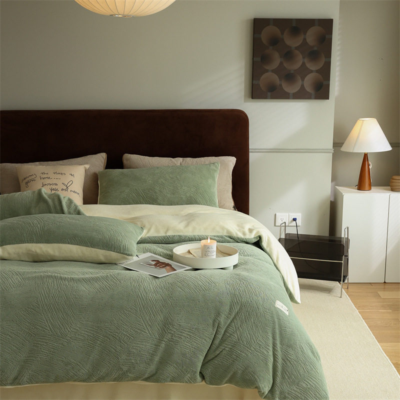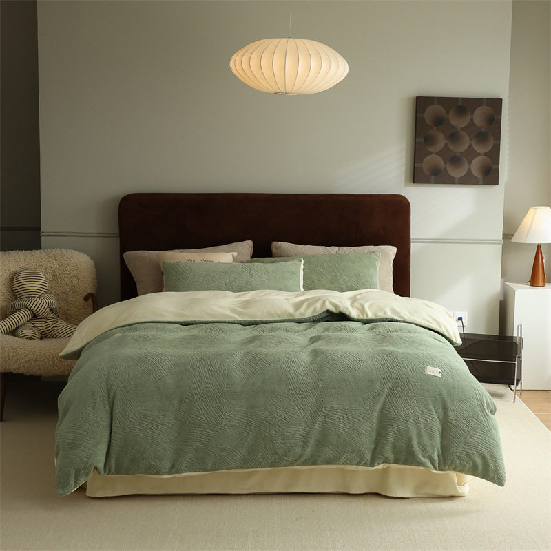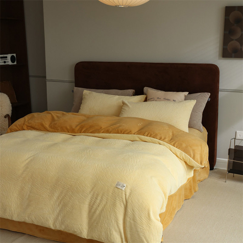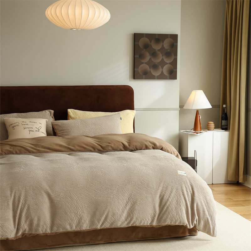 Hard to coax the same | high weight milk velvet four-piece set A double-sided velvet padded warm coral antistatic kit