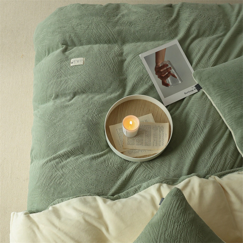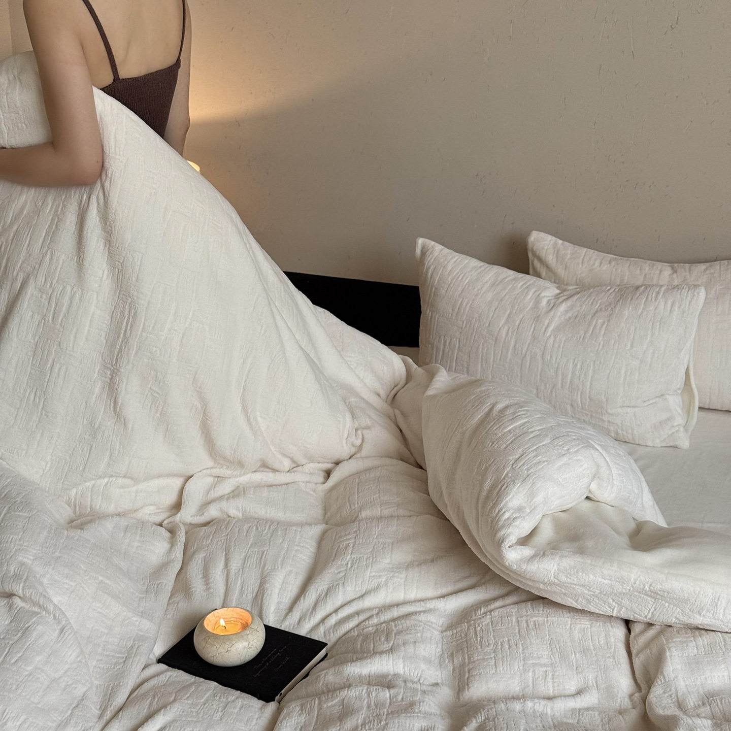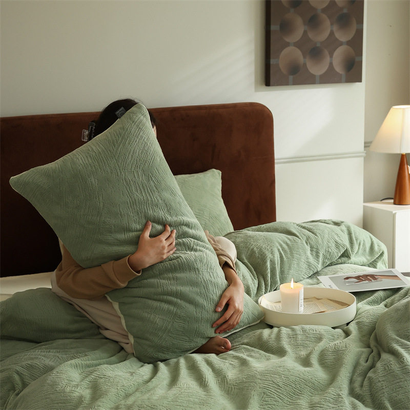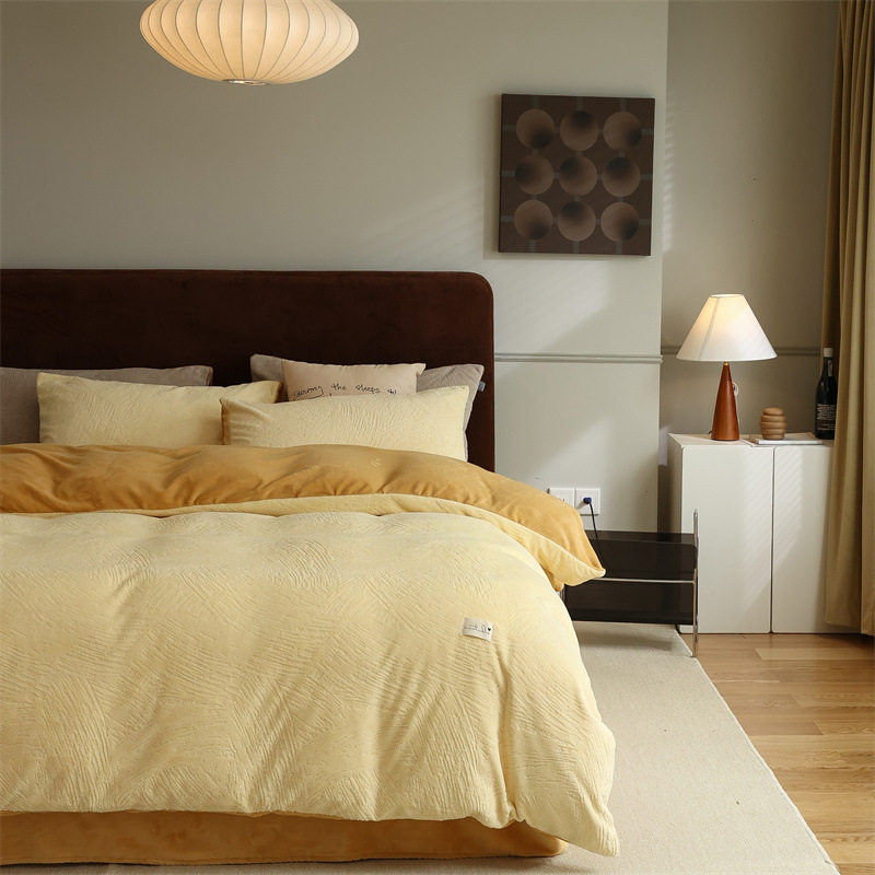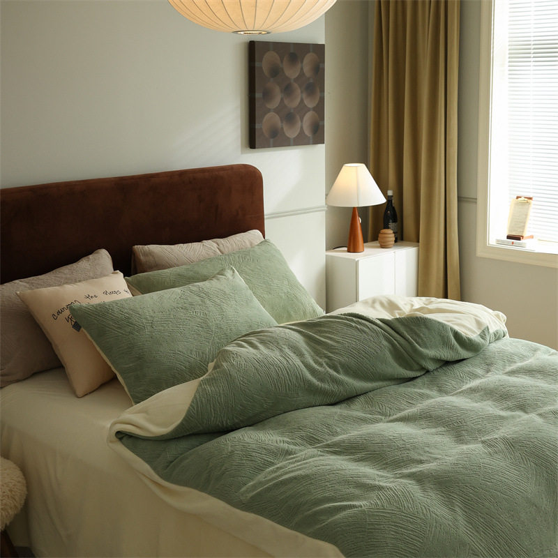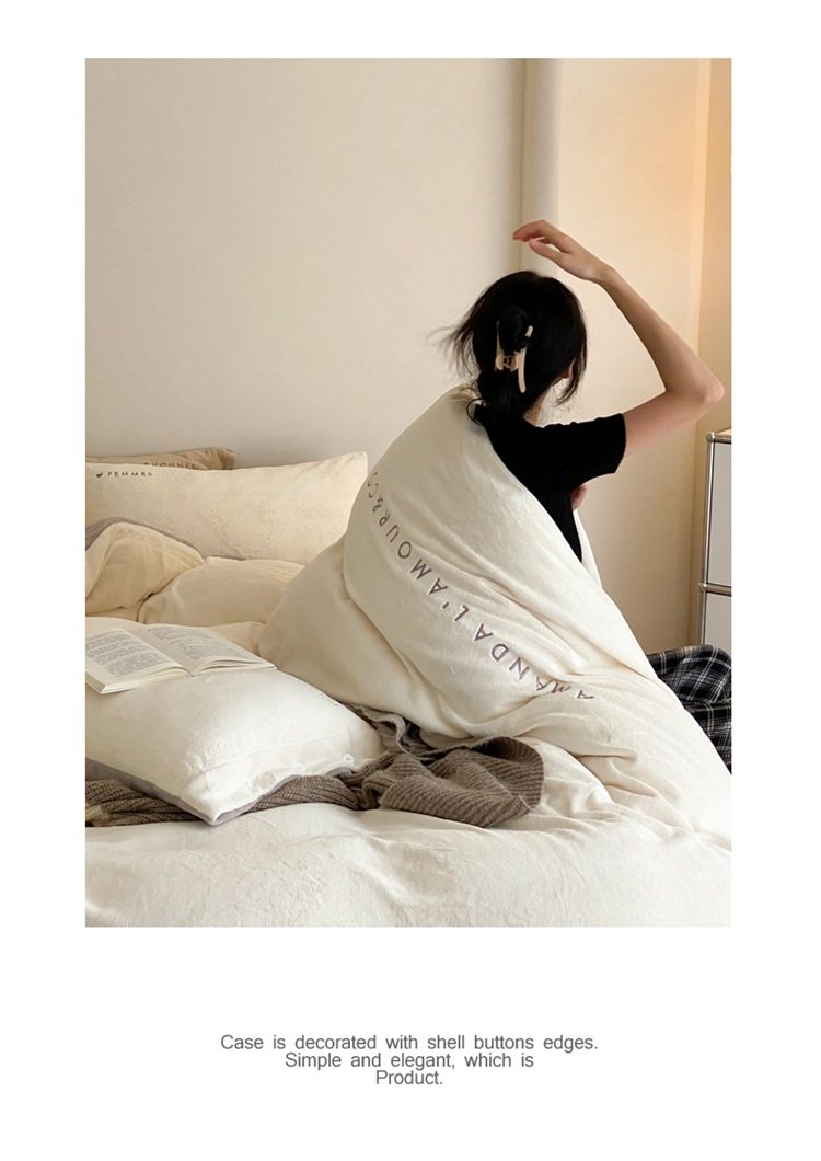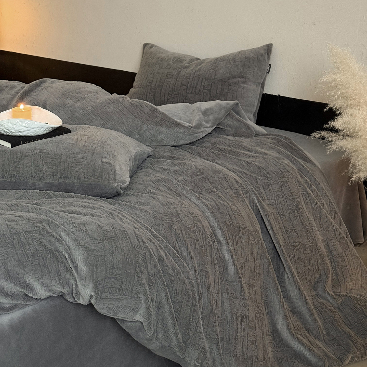 Hard to coax the same | high weight milk velvet four-piece set A double-sided velvet padded warm coral antistatic kit