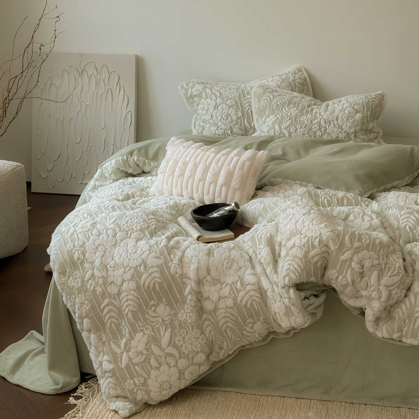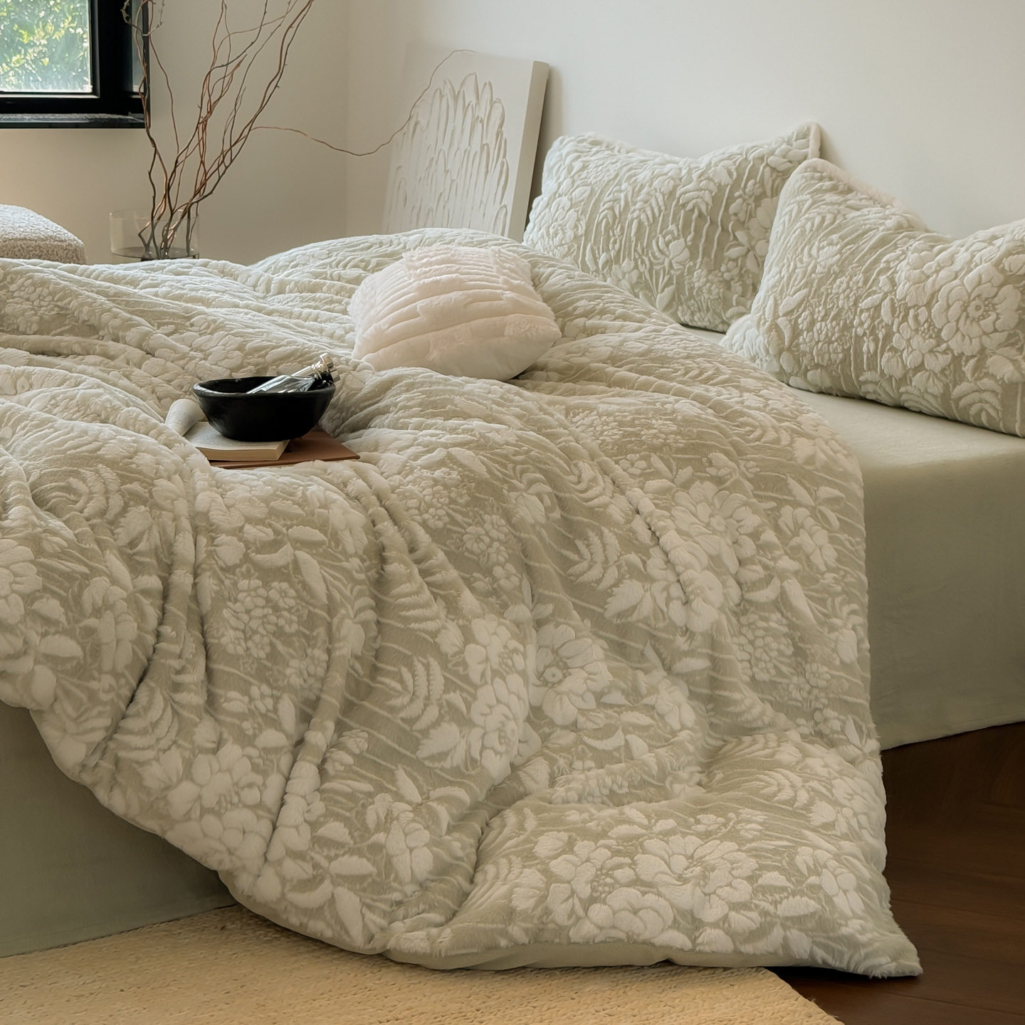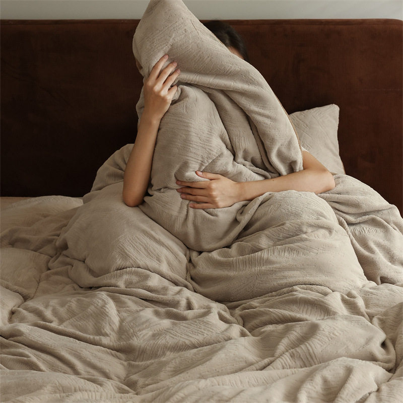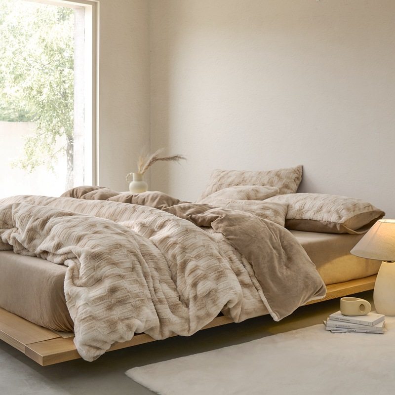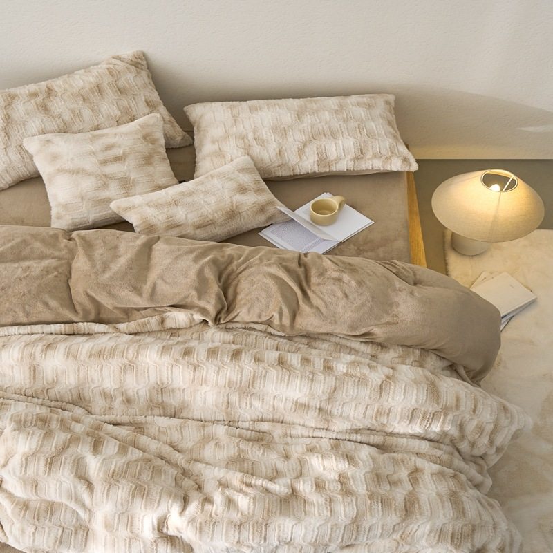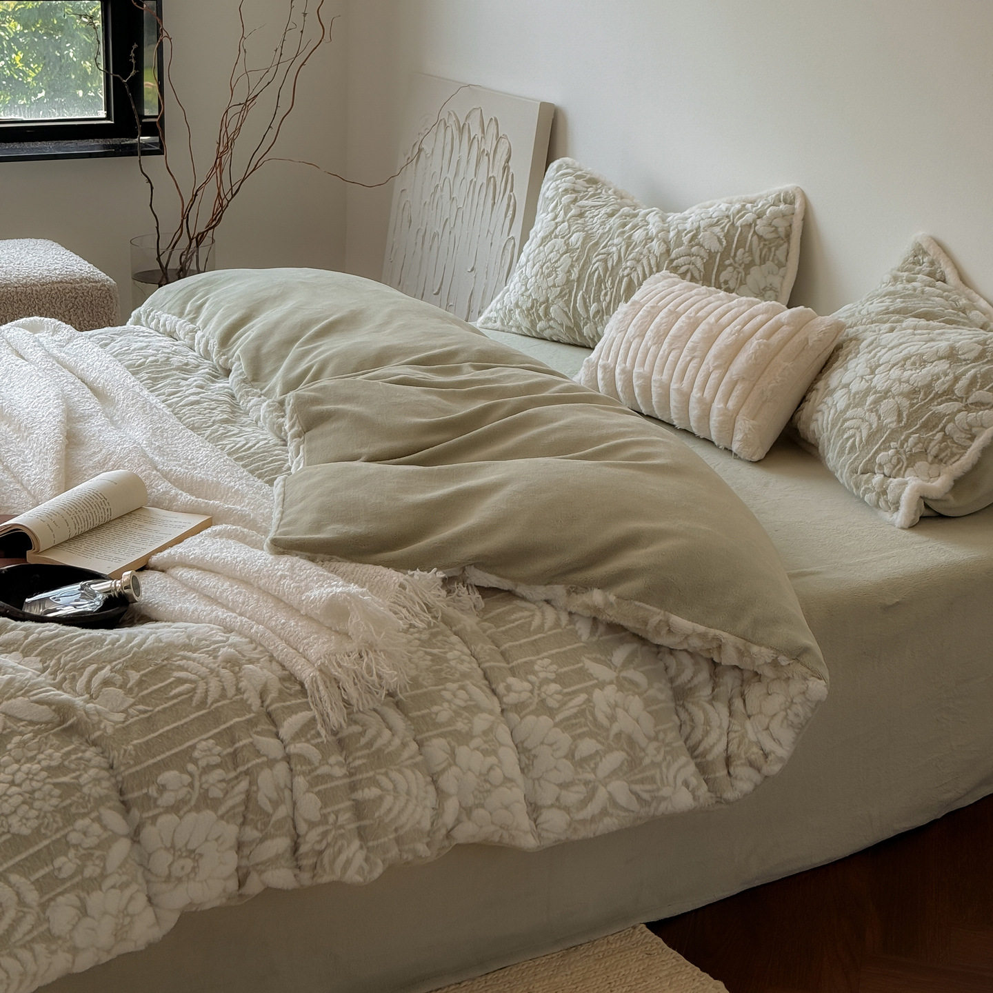 Hard to coax the same | high weight milk velvet four-piece set A double-sided velvet padded warm coral antistatic kit