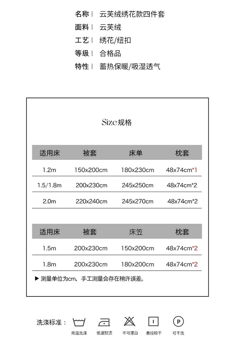 | Dimensions | 1.2 m bed sheet set of three (quilt core 150x 200),1.5 m bed sheet four-piece set (quilt core 200*230),1.8 m bed sheet four-piece set (quilt core 200*230),1.8 rice plus quilt cover sheet four-piece set (quilt core 220*240),1.2 m bed hat set of three (quilt core 150x 200),1.5 m bed hat set (quilt core 200*230),1.8 m bed hat set (quilt core 200*230),1.8 m bed hat set (quilt core 220*240) |