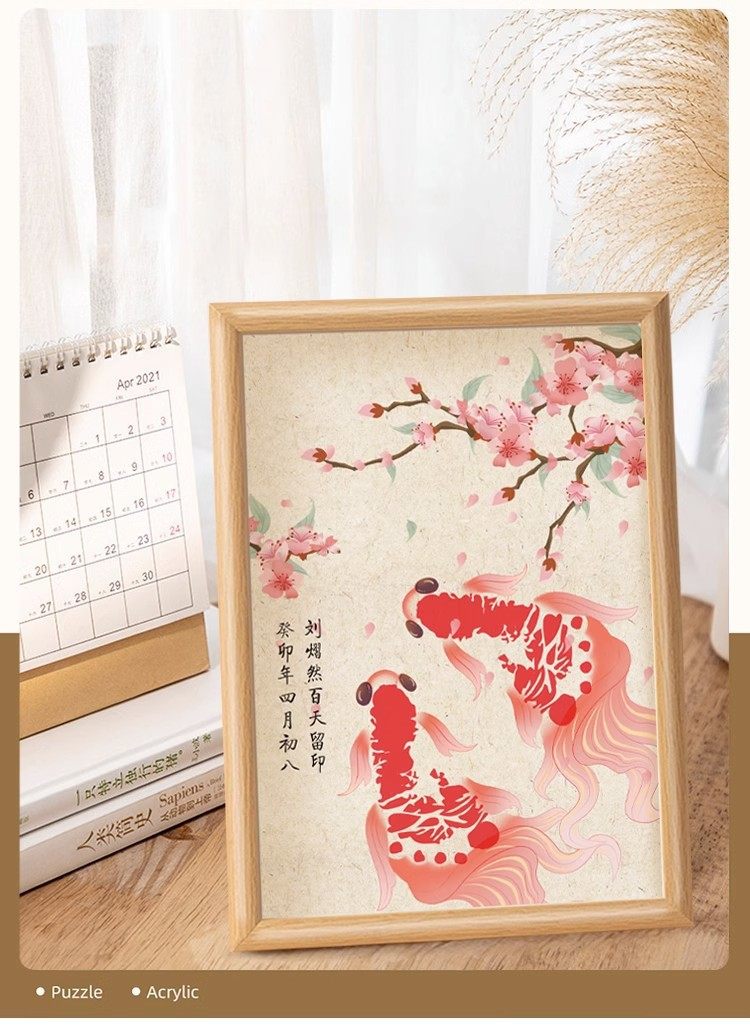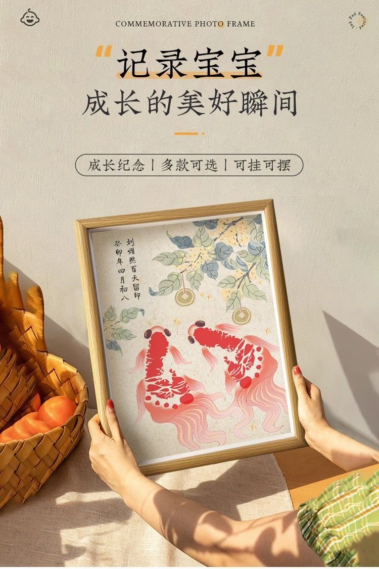 Baby One Year Old Hand and Foot Print New Koi Ink Pink Caglio Display Frame 100 Days Full Moon Hand and Foot Print Photo Frame Set Table