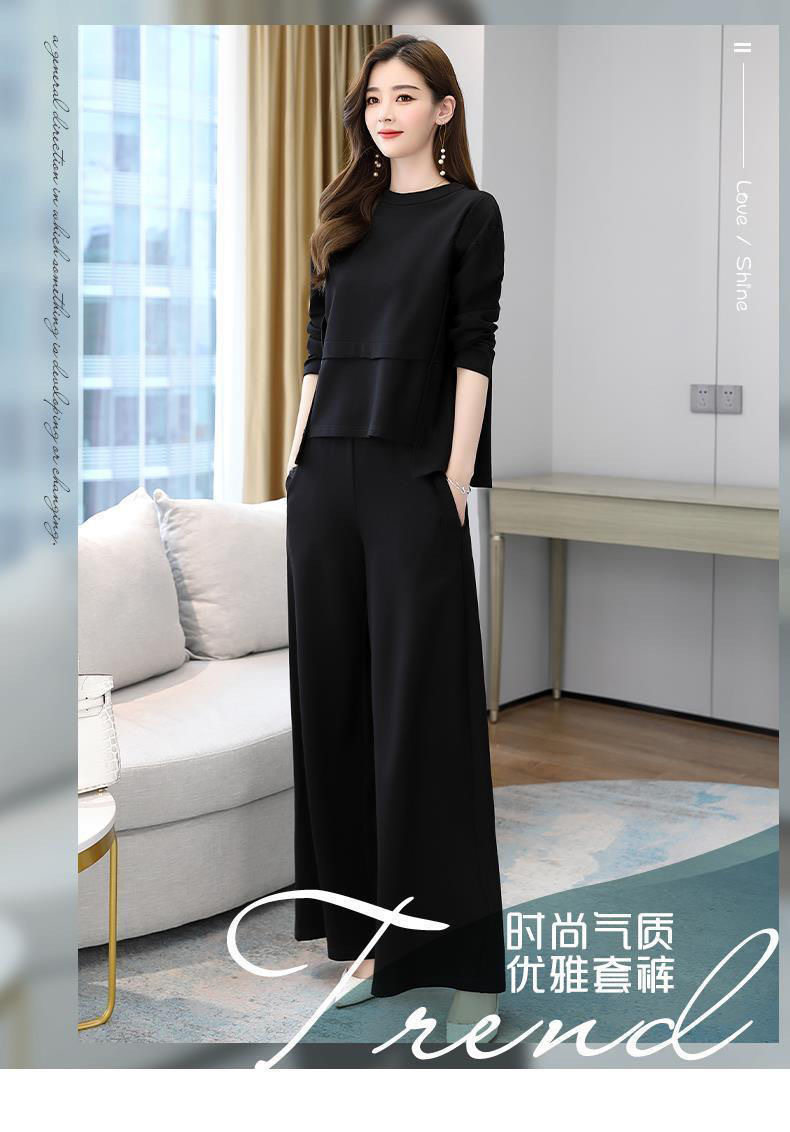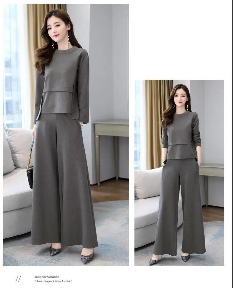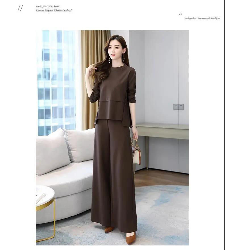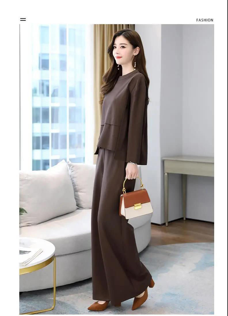 plus size Autumn Age-reducing Slimming suit Southeast Asian New Fashionable Two-piece Western Style Elegant Wide-leg Pants for Women