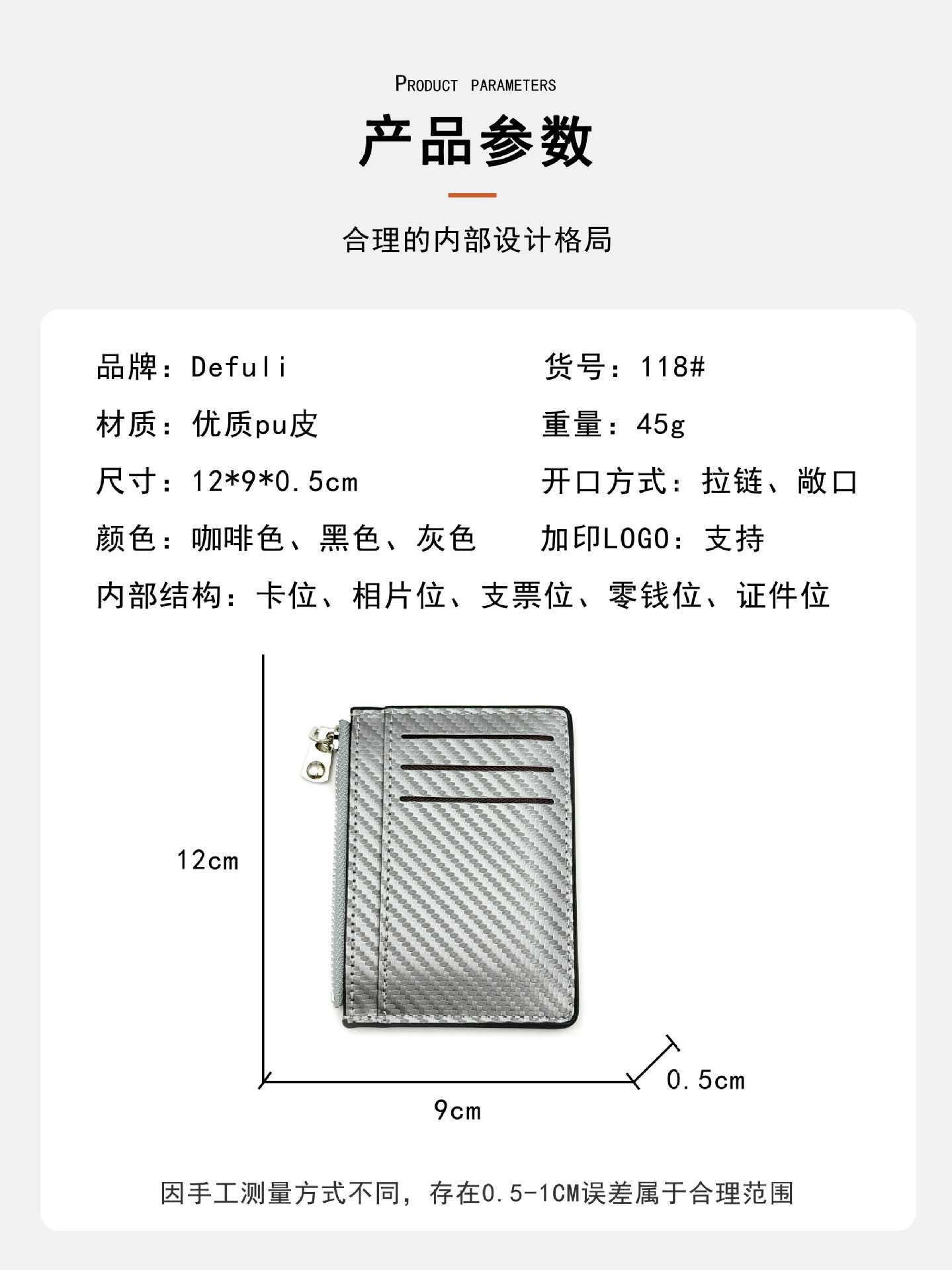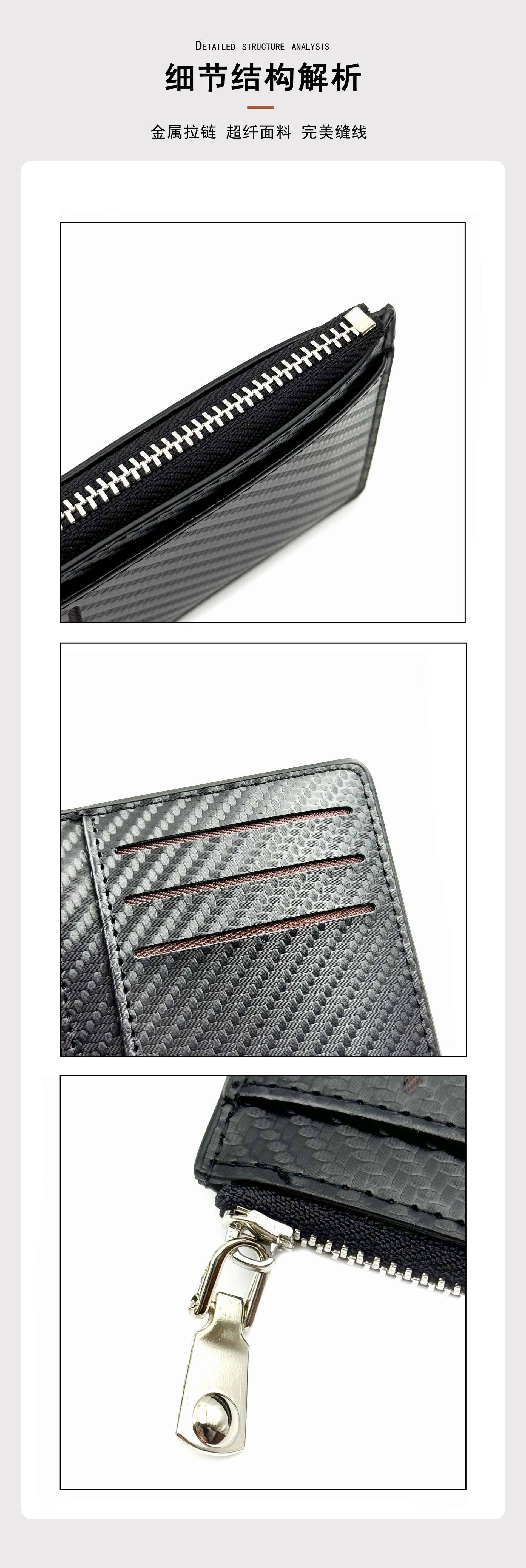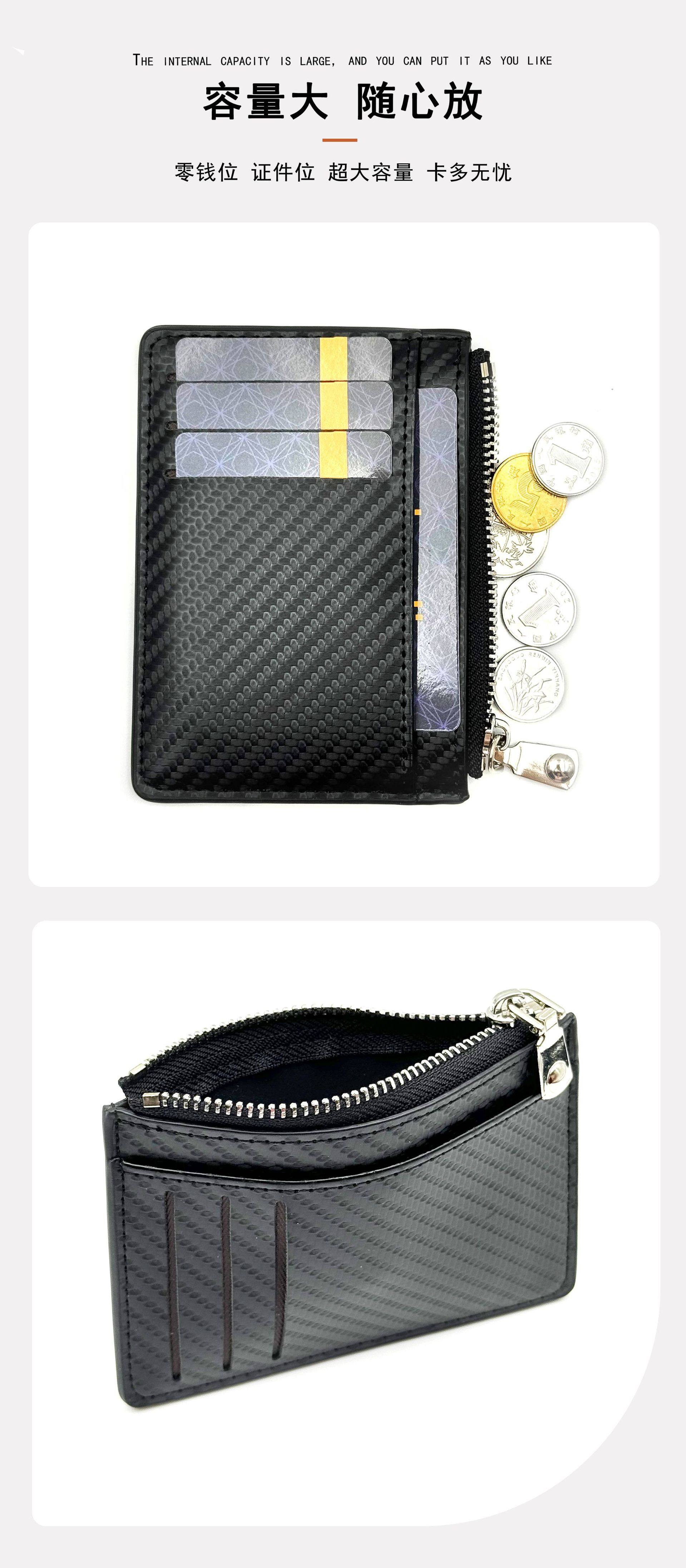 Defuli2024 Summer Men's Wallet Card Case Multi-card Bits PU Fabric Carbon Fiber Pattern Zipper Card Case Cross-border Trend