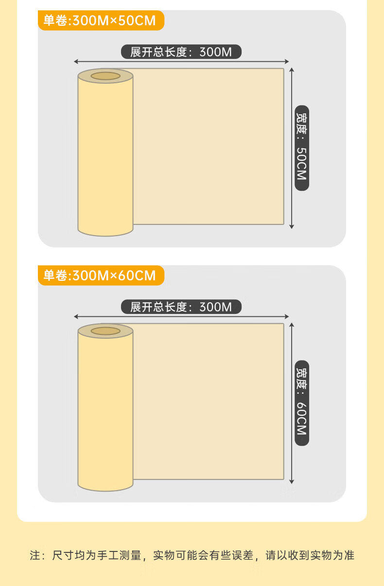 | Size | Thickened plastic wrap set of 300 pieces,Thickened plastic wrap set of 600 pieces,【30cm*300m】pvc cling film,【40cm*300m】pvc cling film,【45cm*300m】pvc cling film,【50cm*300m】pvc cling film,【60cm*300m】pvc cling film,【30cm*400m】pvc cling film,【45cm*400m】pvc cling film,【60cm*400m】pvc cling film,[6 rolls in a box] 45cm*300m,[6 rolls in a box] 50cm*300m,[6 rolls in a box] 60cm*300m,[6 rolls in a box] 45cm*400m,[6 rolls in a box] 60cm*400m |