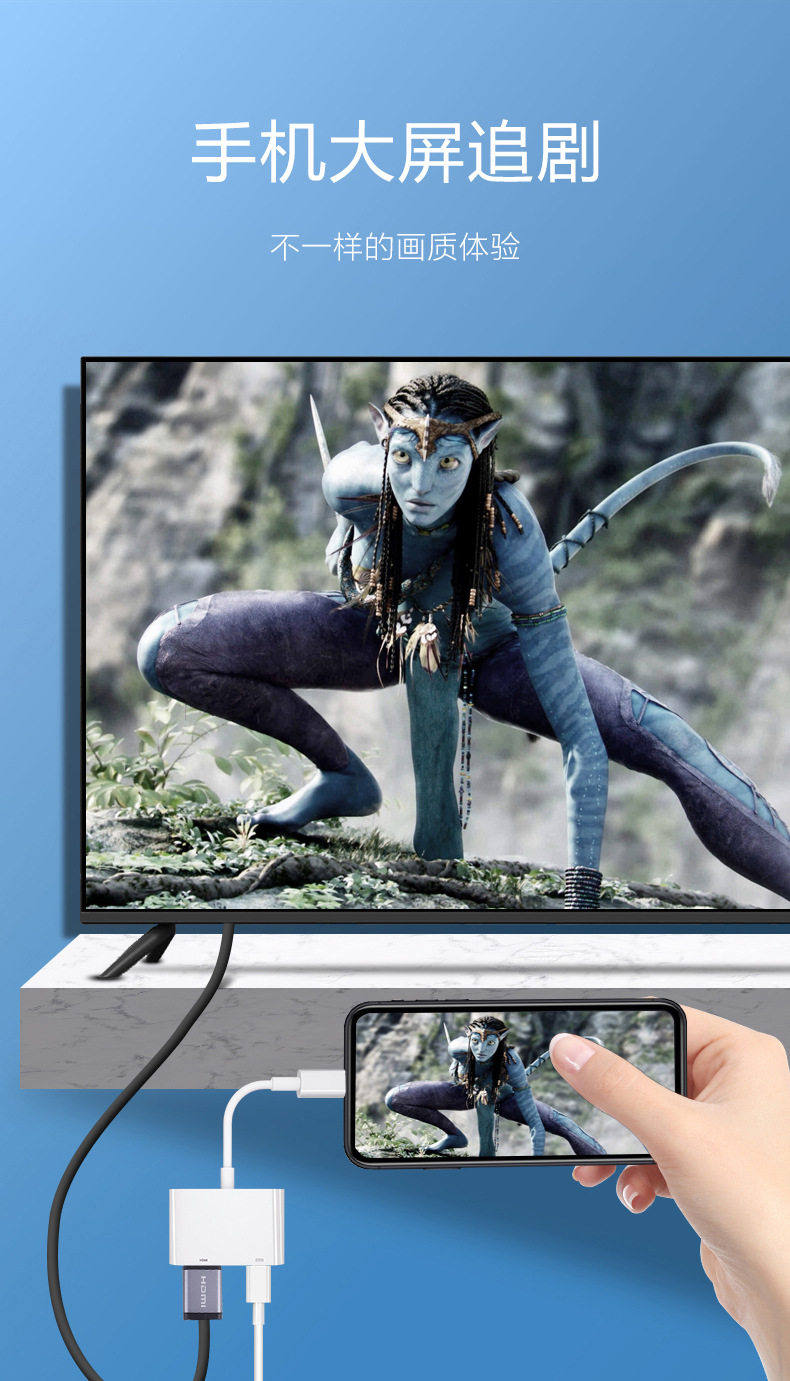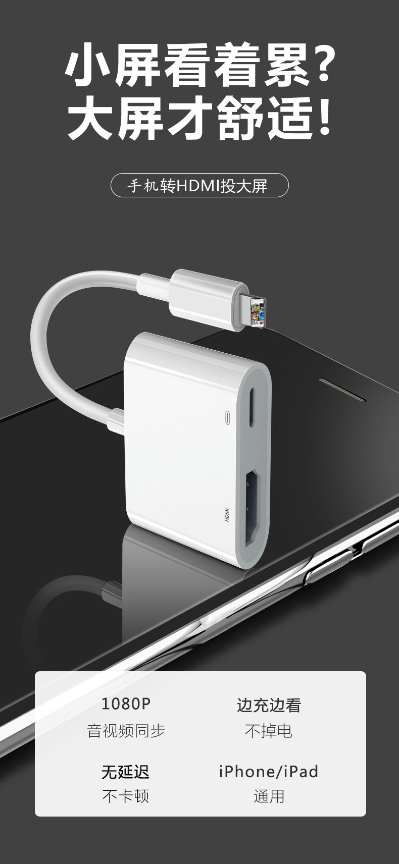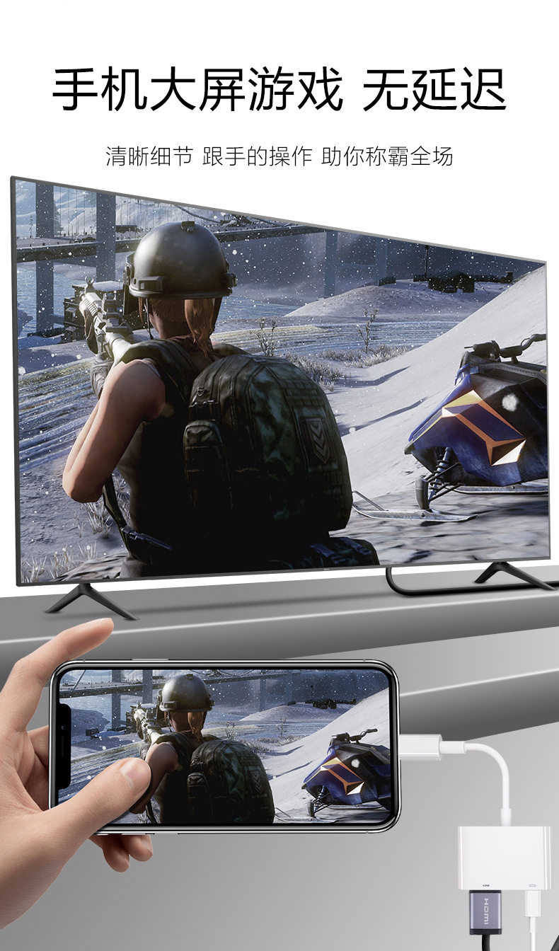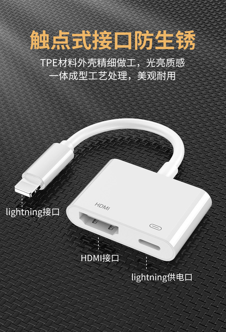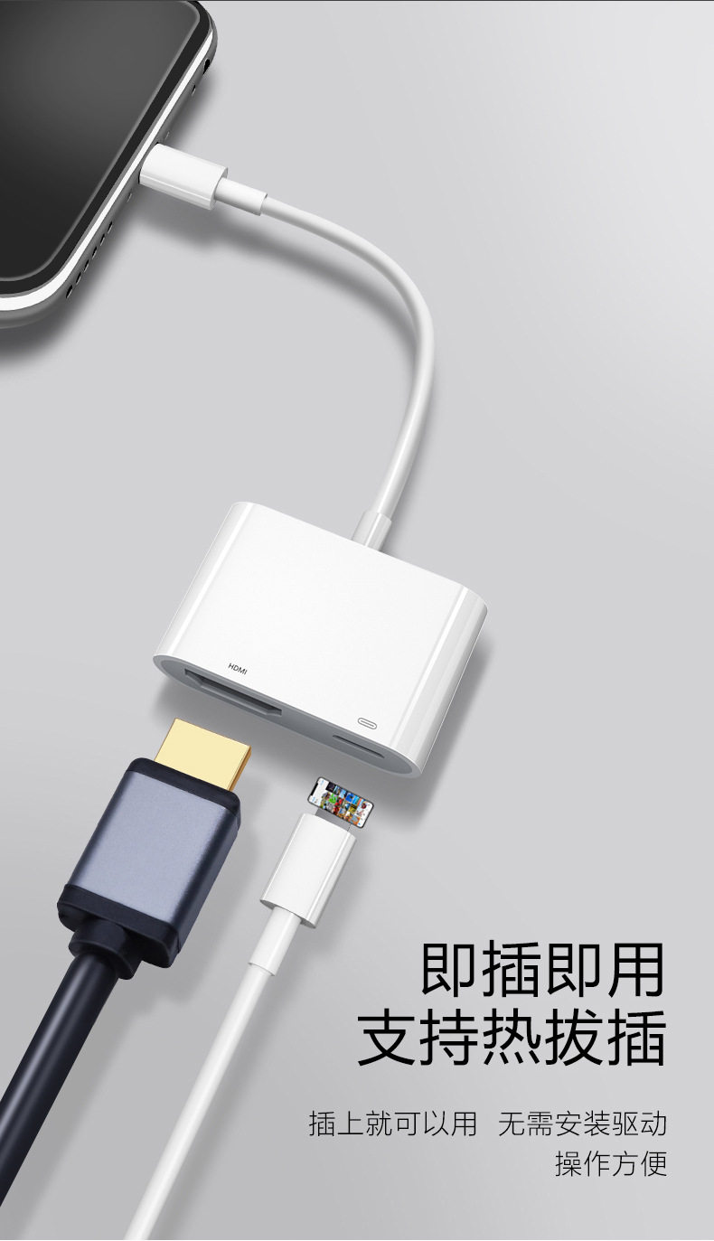 Power-free same-screen HDMI adapter for Apple mobile phone screen TV display audio-visual adapter