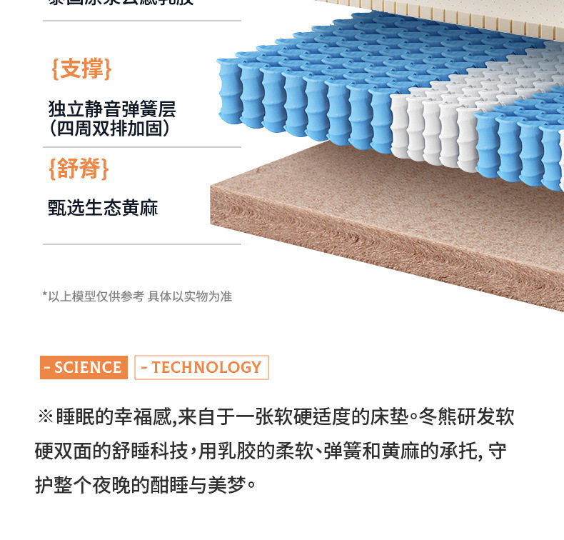 Winter Bear [White Moonlight -7 Star Mattress] Simmons Independent Spring Soft and Hard Dual-purpose Jute Latex Thick Mattress