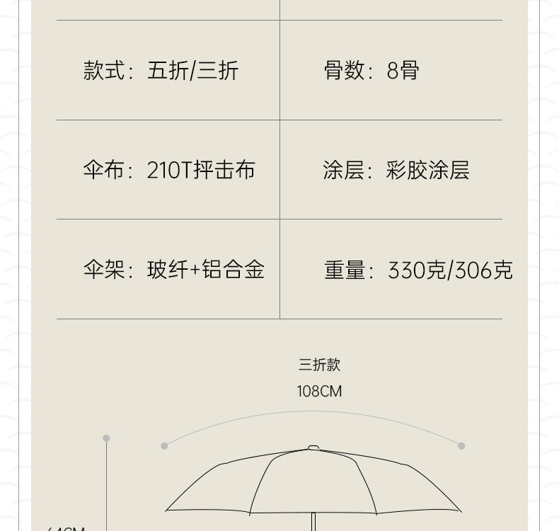 | Umbrella cloth density | 210T |