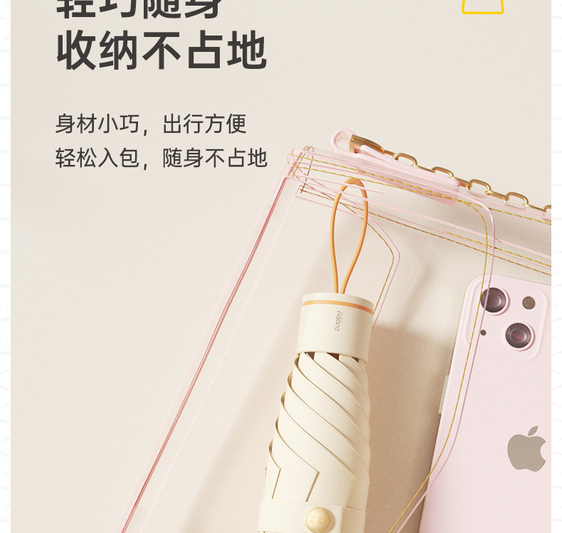 Zuodu Colored Glue Sunshade Umbrella Sunlight and Rain Dual-use Women's Sun Protection UV Protection Compact Portable Five-fold Umbrella Sun Umbrella