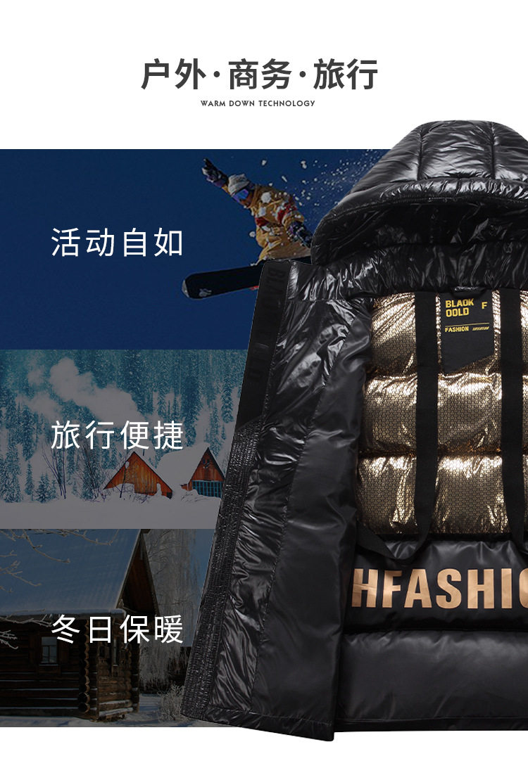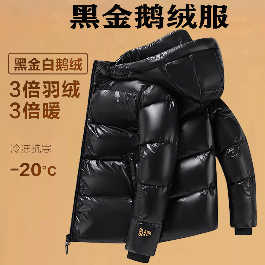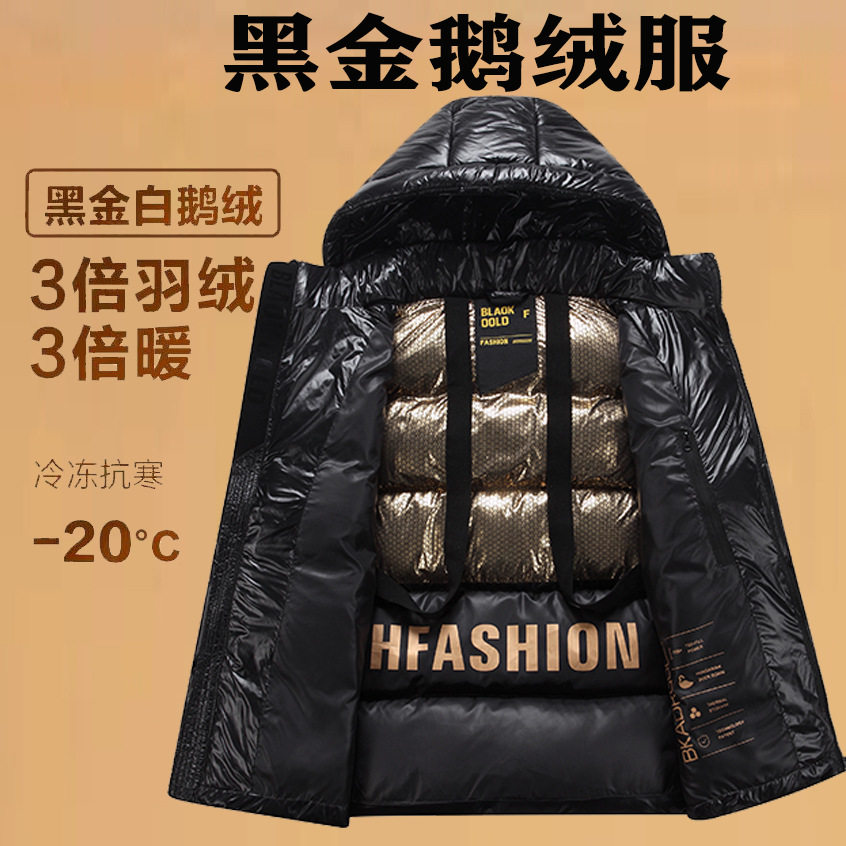 New Black Gold White Goose Down Jacket for Men and Women Couple Short Coat Over-the-knee Winter Thickened High-end Casual Wear