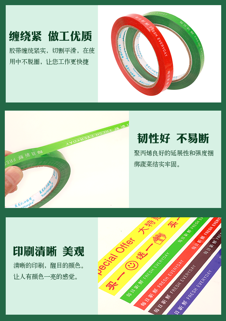 Daily Fresh Vegetable Binding Promotion Tape Shopping Mall Supermarket Fresh Binding Tape Binding Tape Colorfulful Vegetable Binding Film