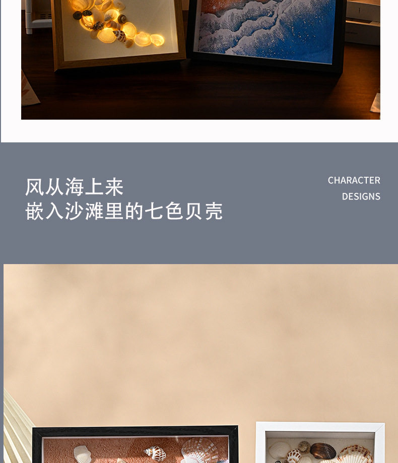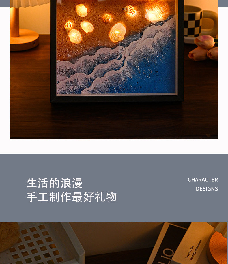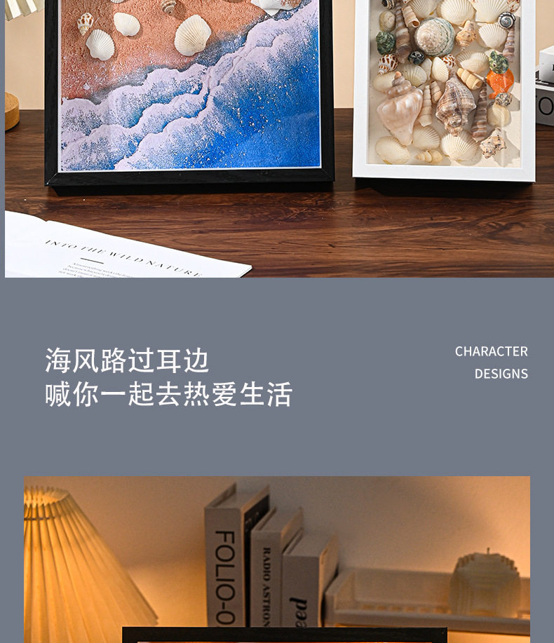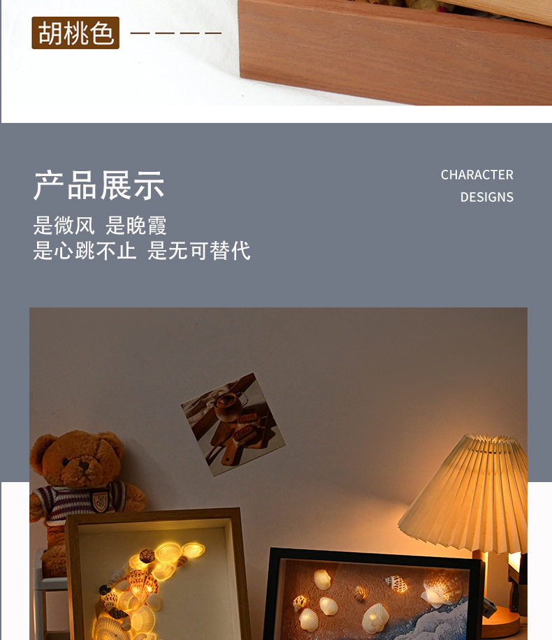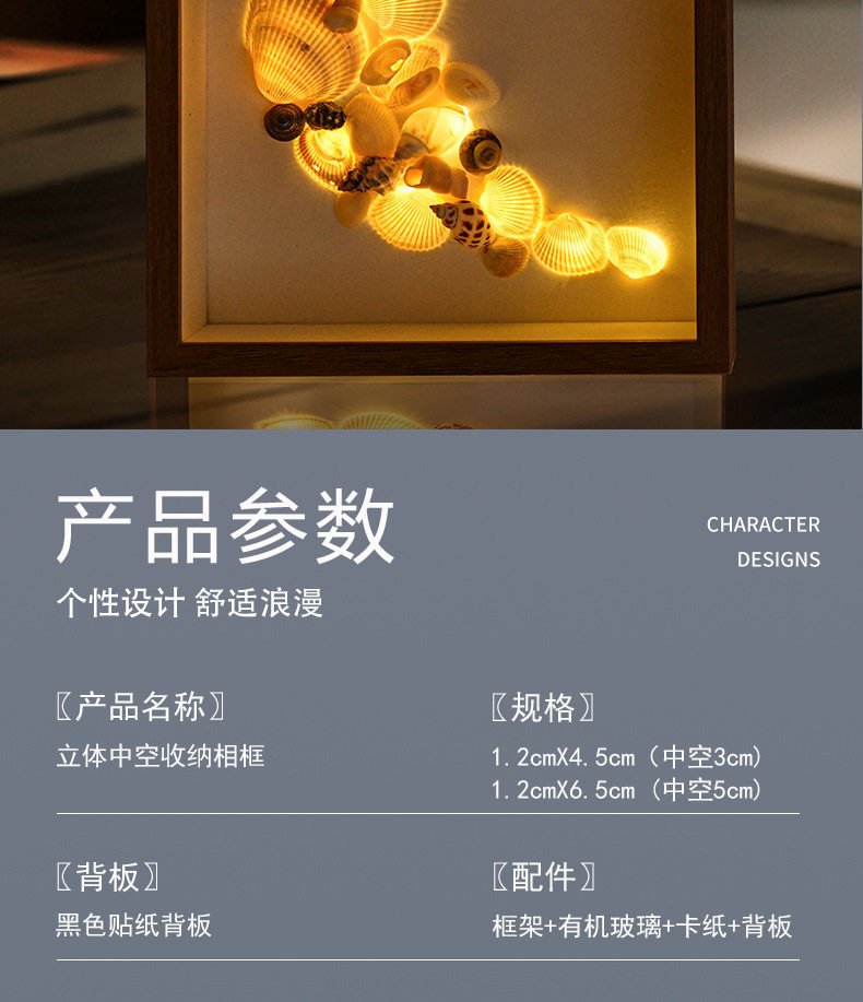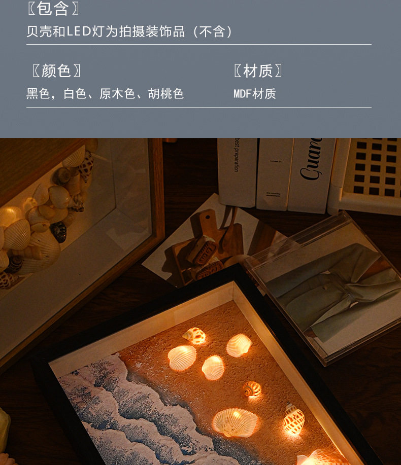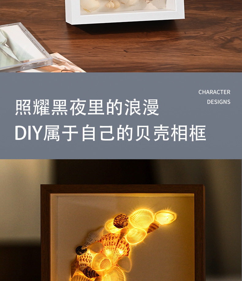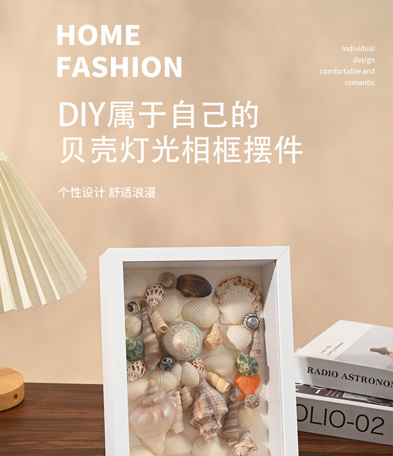 Beach Shell Collection Night Light Frame Picture Frame Hollow Photo Frame Album Creative Decoration Three-Dimensional Ornament with Light