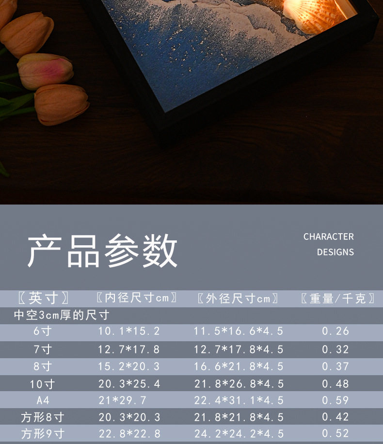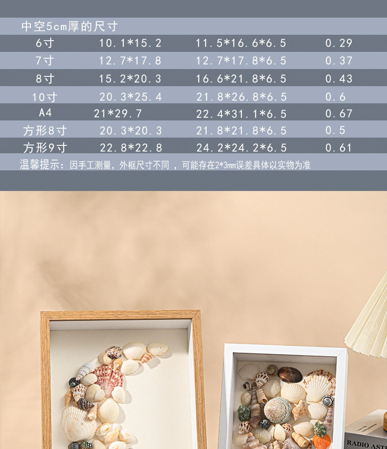 | Inner frame size | Walnut color (hollow 3cm),Wood color (hollow 3cm),Black (hollow 3cm),White (hollow 3cm),Walnut color (hollow 5cm),Wood color (hollow 5cm),Black (hollow 5cm),White (hollow 5cm) |