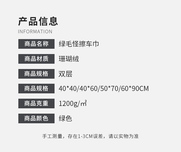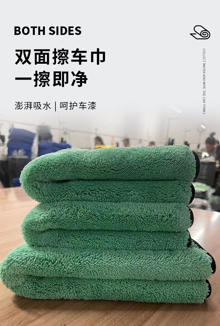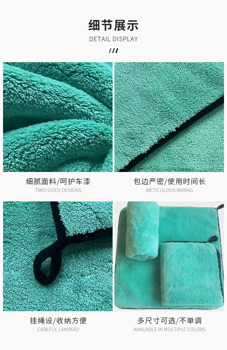 1200g green hair strange water towel wholesale fine fiber absorbent car cloth thick double coral fleece car wash towel
