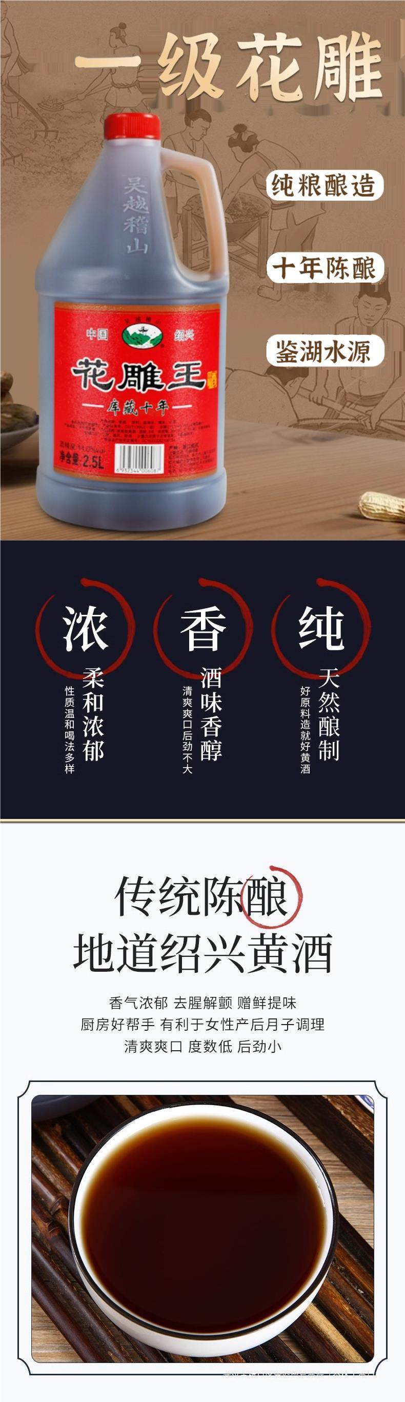Wu Yue Jishan Flower Carving Wang Shaoxing 10 Years Aged 5 Jin of Pure Grain to Deodorant and Increase Freshness to Brew Vegetable Seasoning Wine