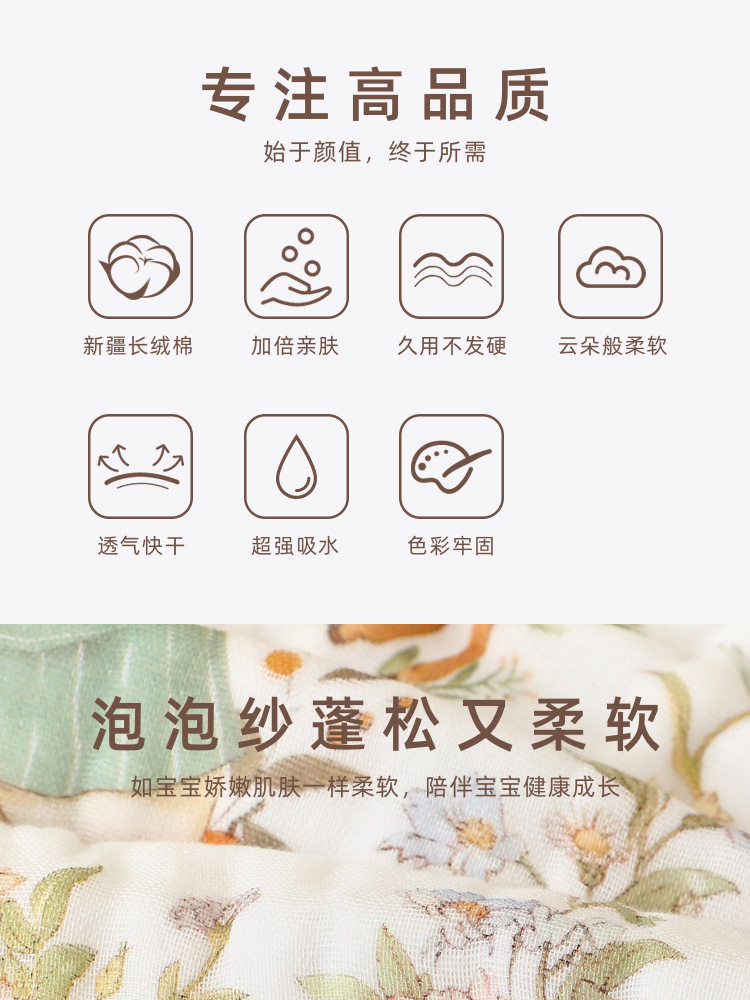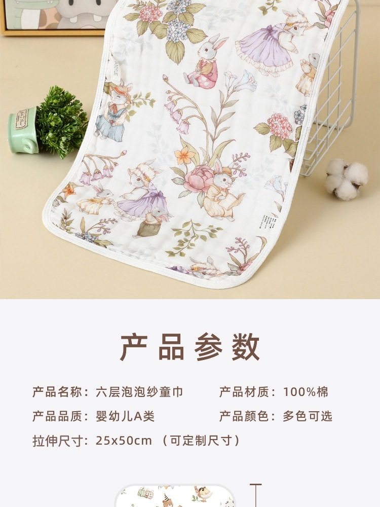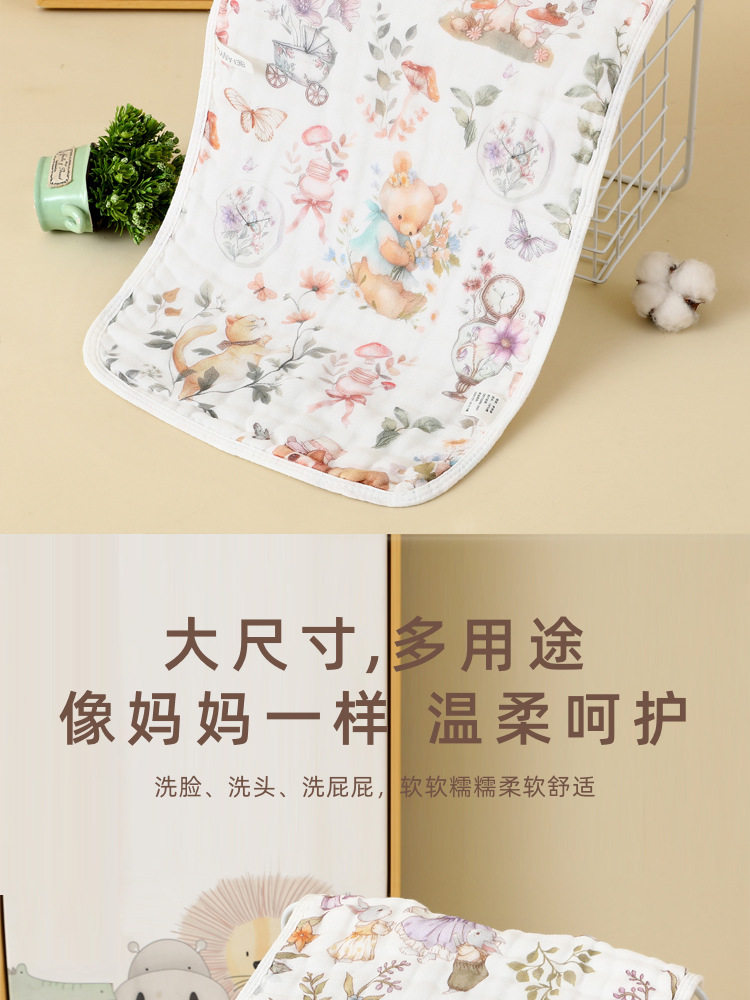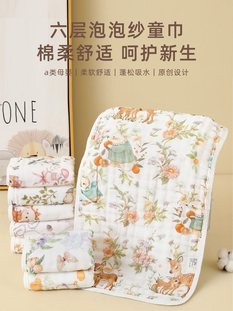 Jingbei Anyue Children's Edged 6-Layer Gauze Face Towel Class a Baby Towel Antibacterial Infant Saliva Towel for Bathing
