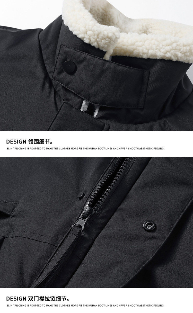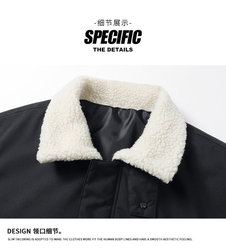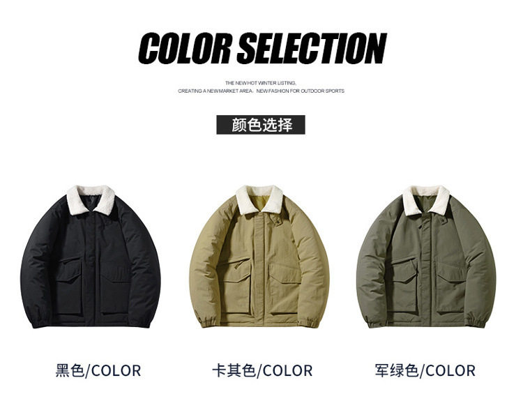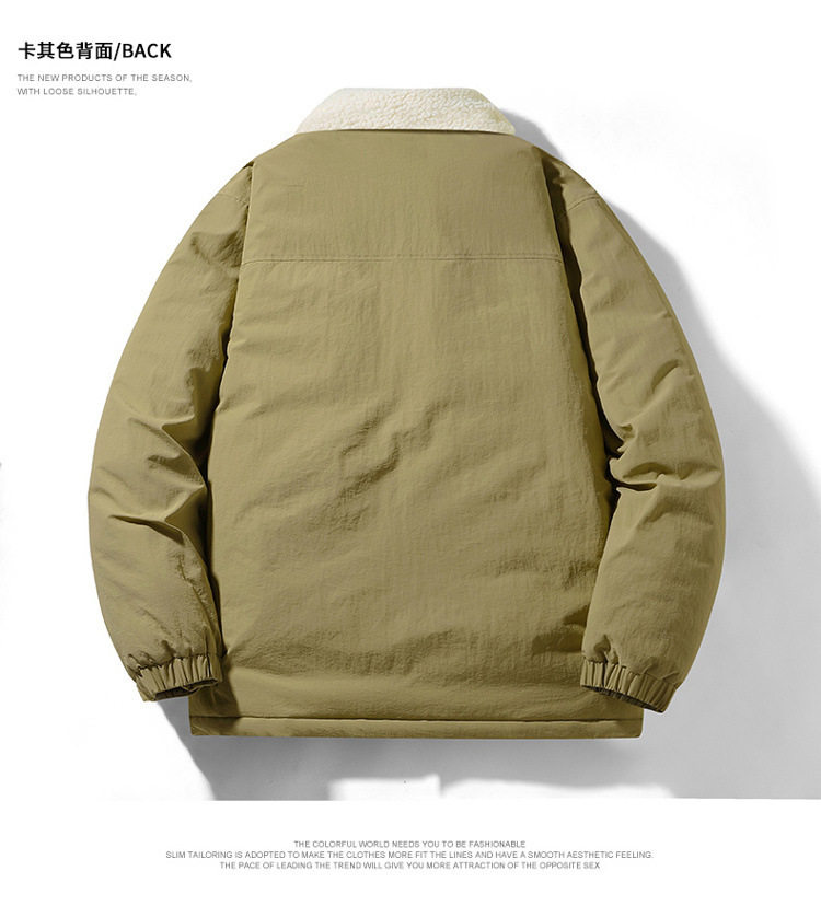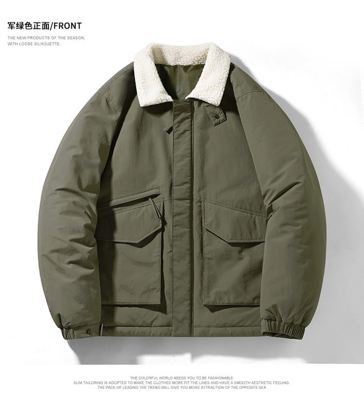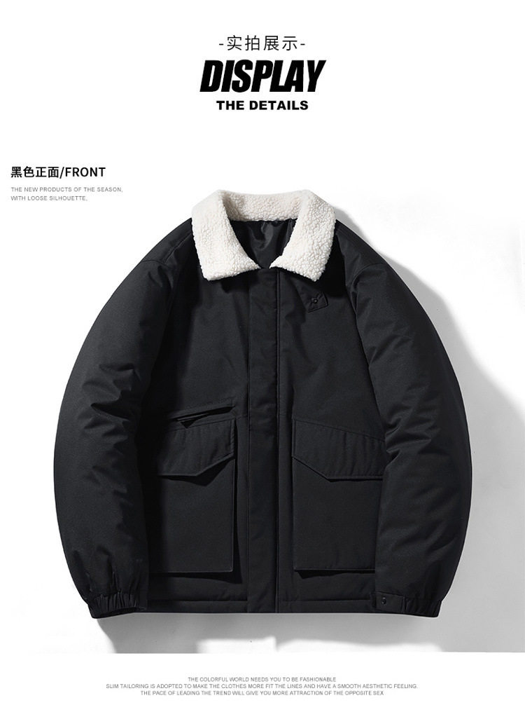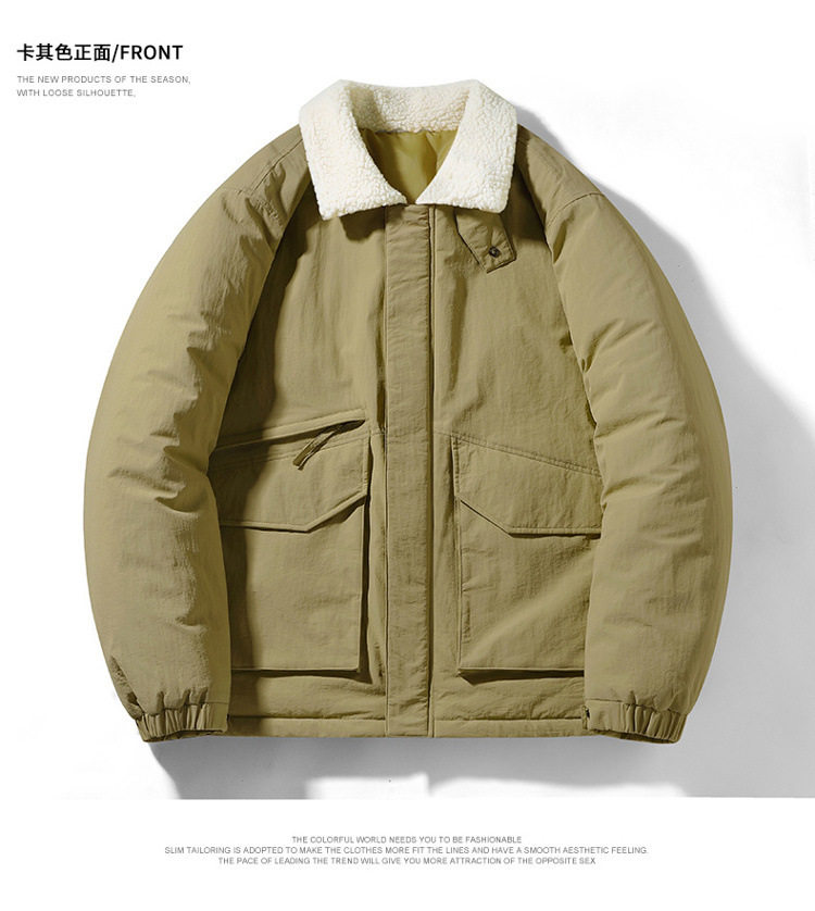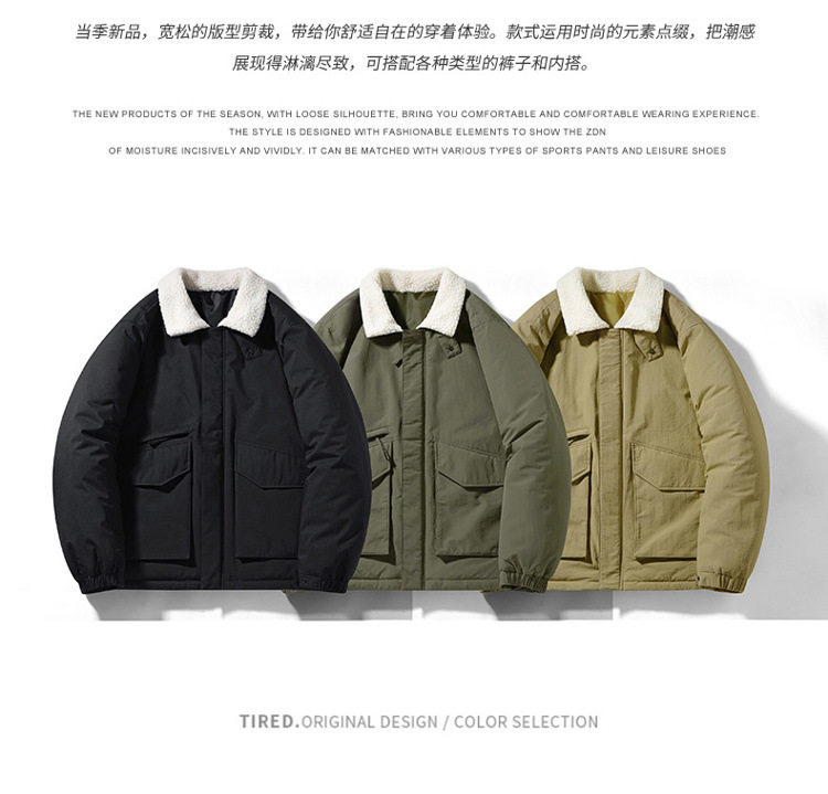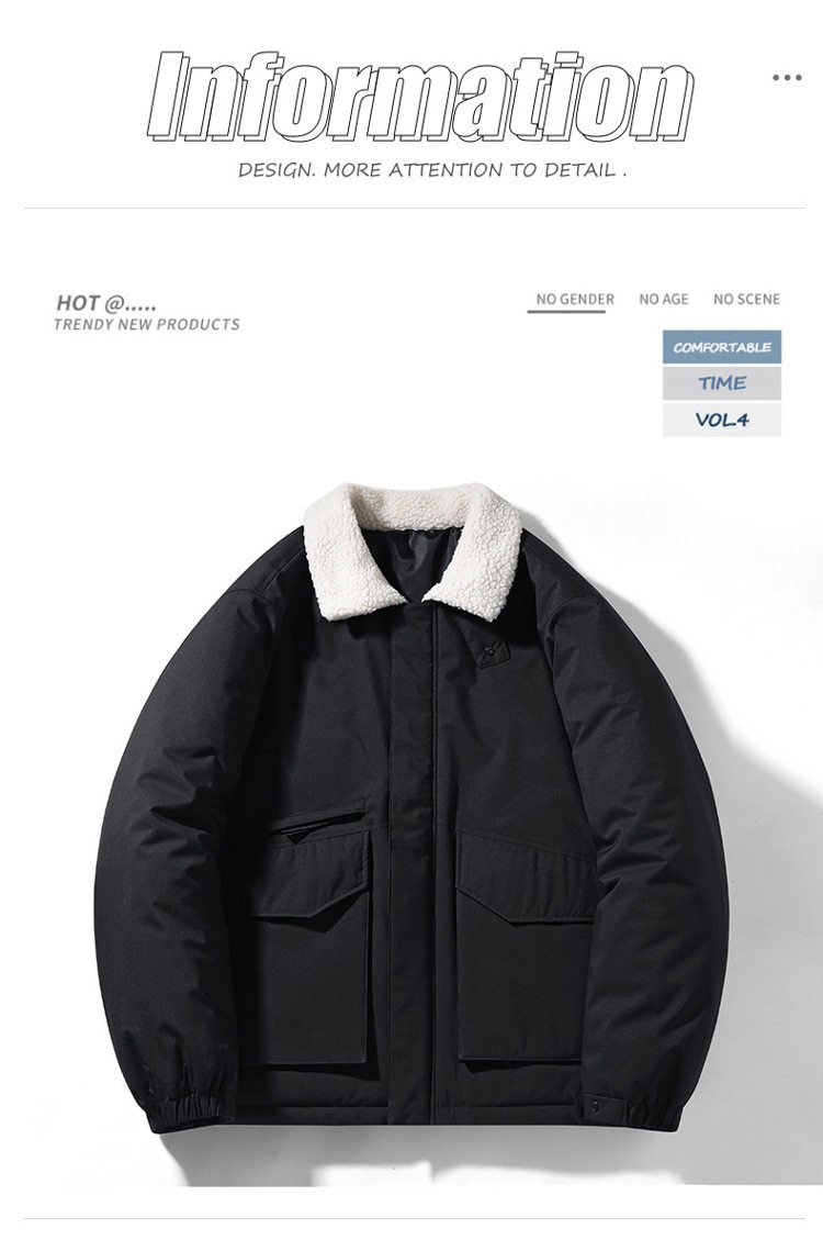 Winter Sports Leisure Trendy Brand Solid Color Lamb Velvet Lapel Coat Workwear Warm Down Jacket Men's Wear