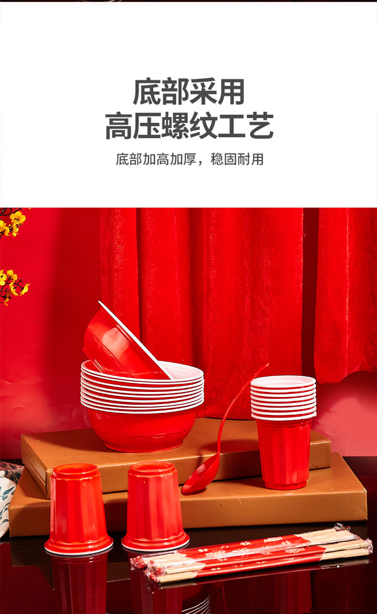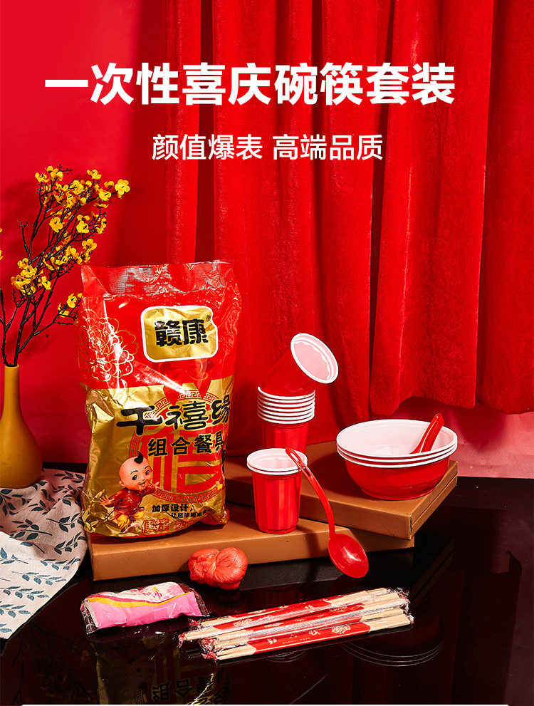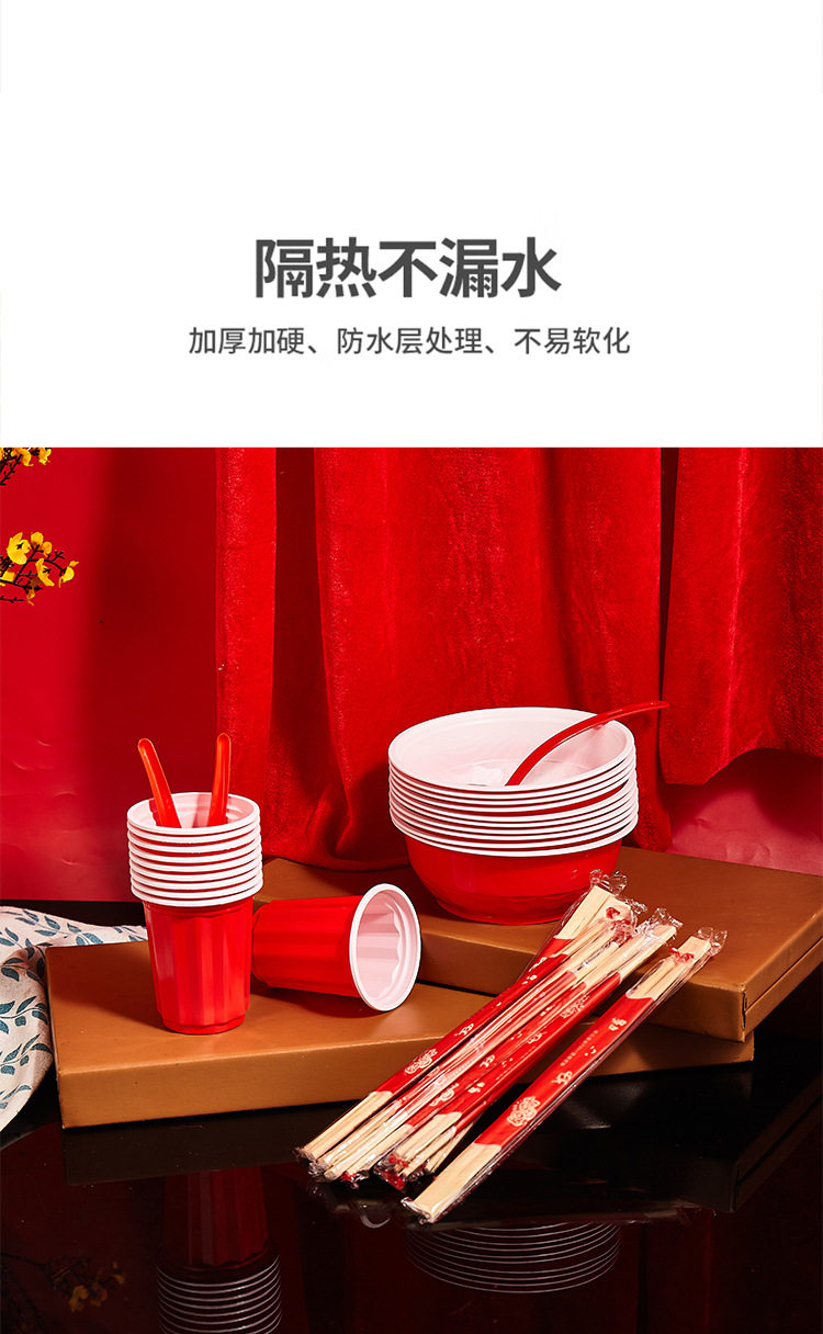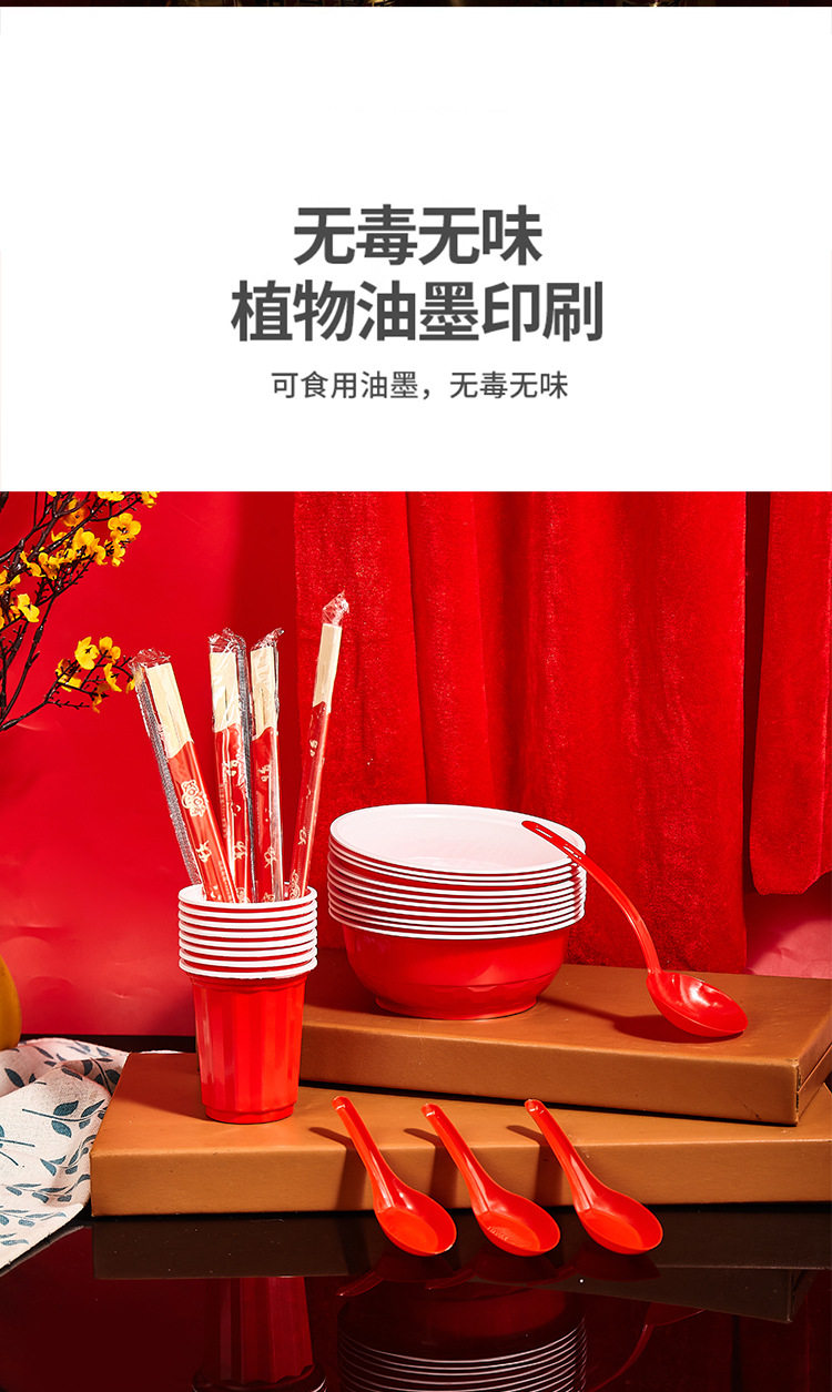 Disposable rural wedding festive bowl chopsticks suit housewarming wedding banquet cup plate spoon food grade tableware wholesale