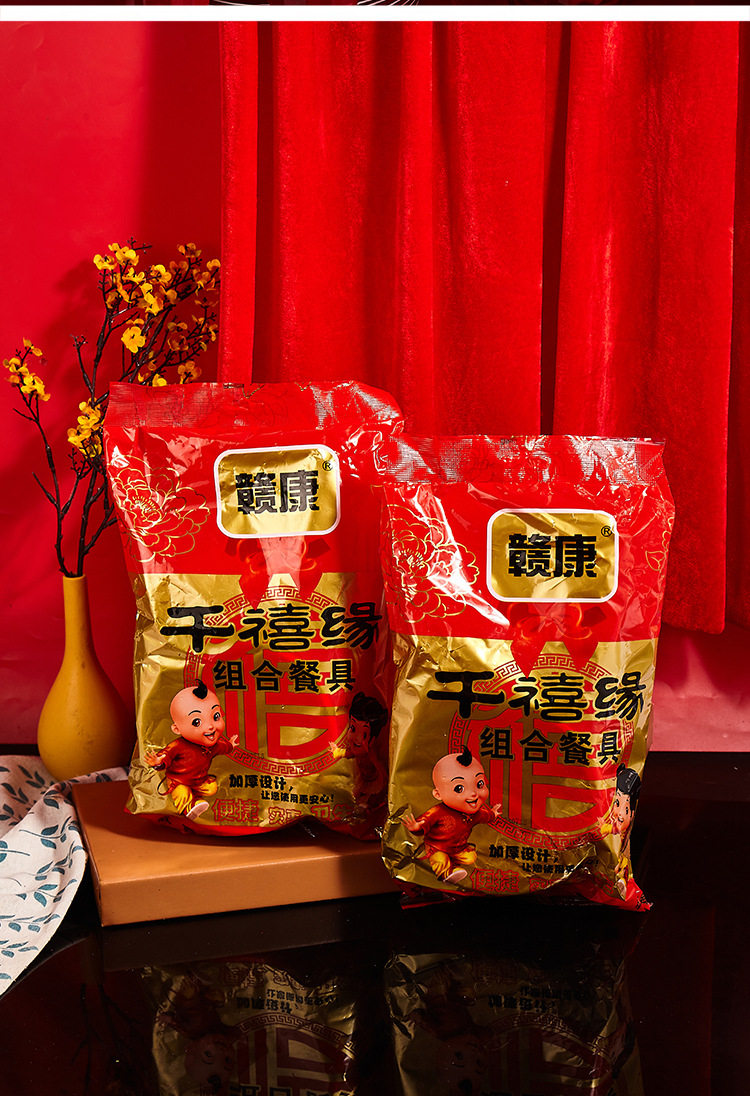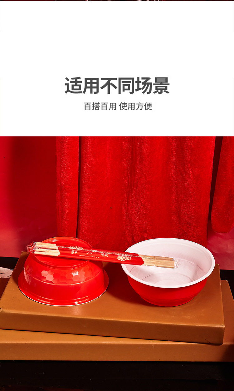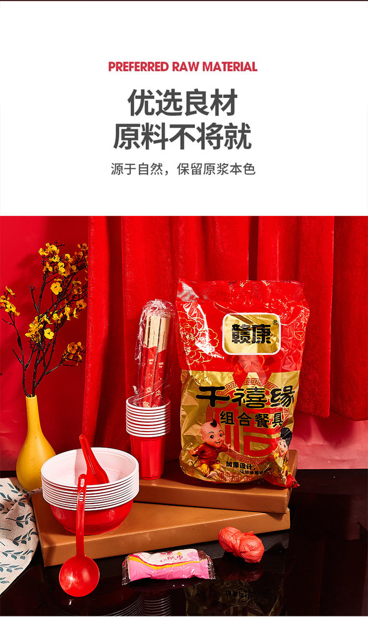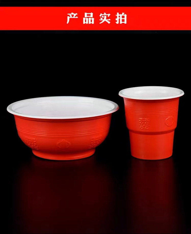 Disposable rural wedding festive bowl chopsticks suit housewarming wedding banquet cup plate spoon food grade tableware wholesale