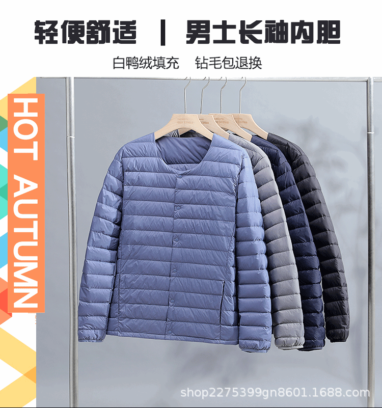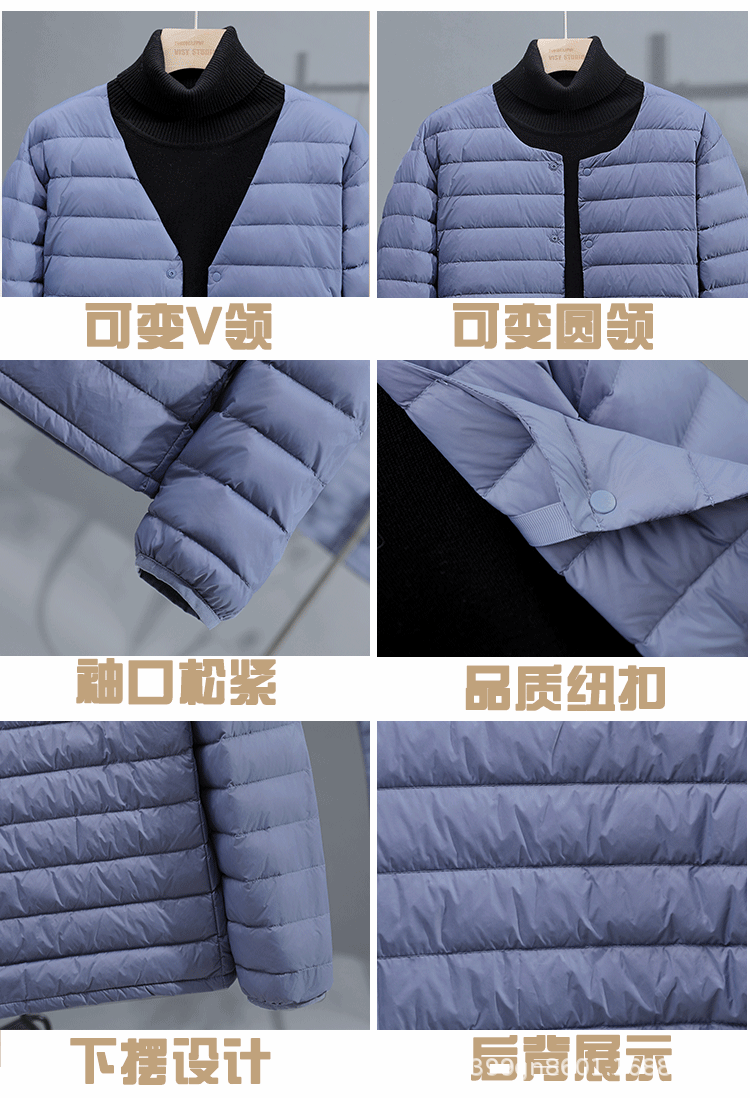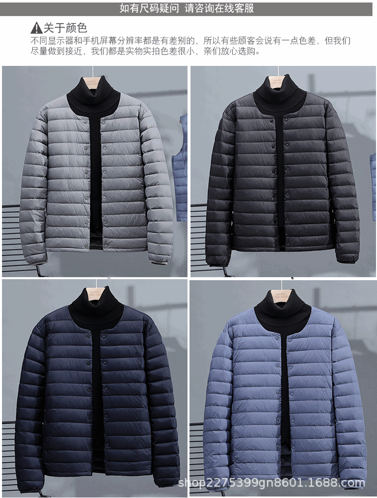 2024 New Men's Light down Jacket Short V Neck Round Neck Two-Wear Thin Large Size White Duck down Men's Outerwear