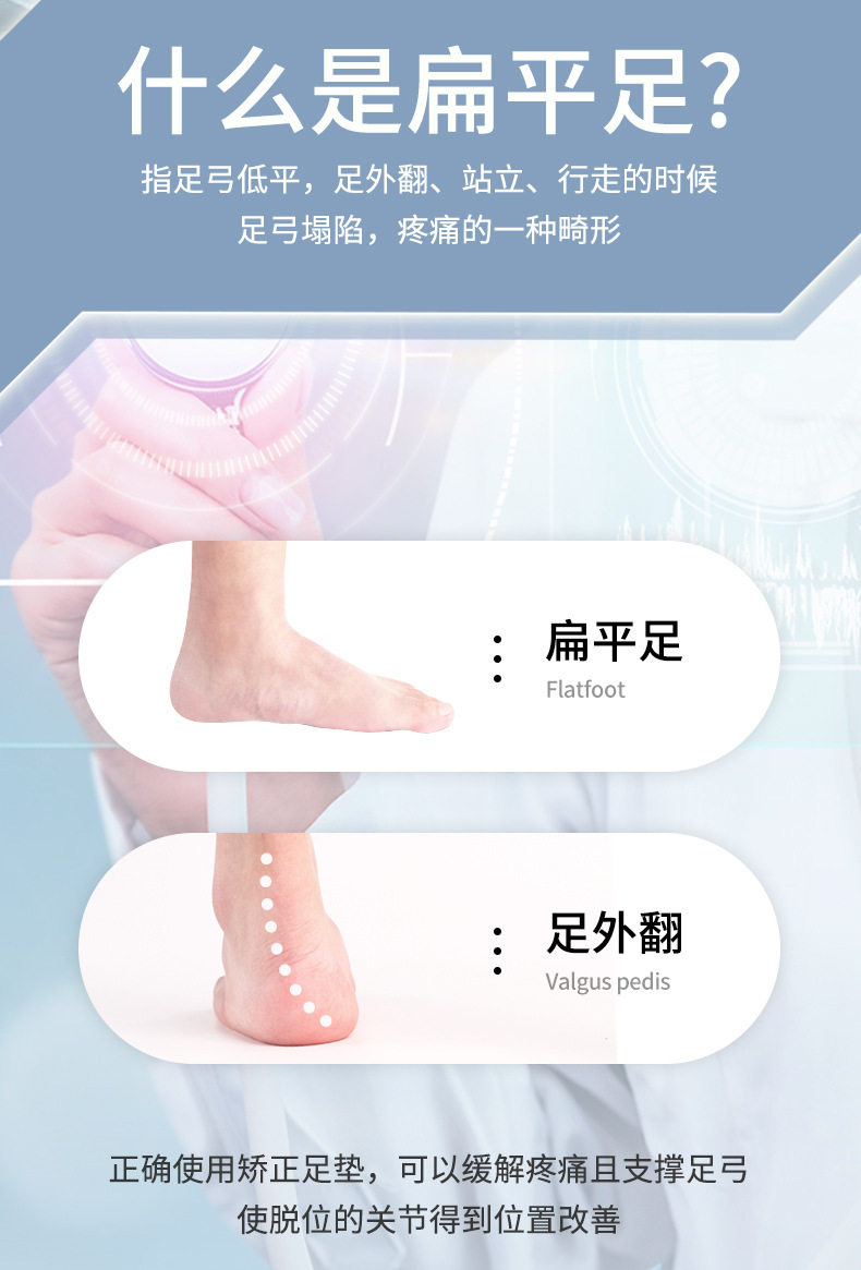 Foot arch pad physical correction insole support flat foot movement shock absorption foot valgus leg type special flat foot special