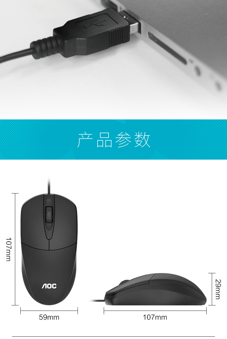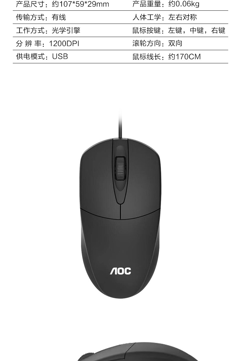 TPV AOC MS121 Wired USB Mouse Factory Notebook Desktop Business Office Game Mouse Wholesale