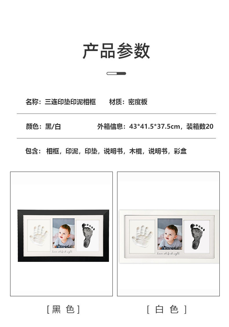 Triple-Link Ink Pad Photo Frame for Baby's Hand and Foot Prints, Commemorating Children's Full Moon Hand and Foot Prints, Triple-Link Creative Design