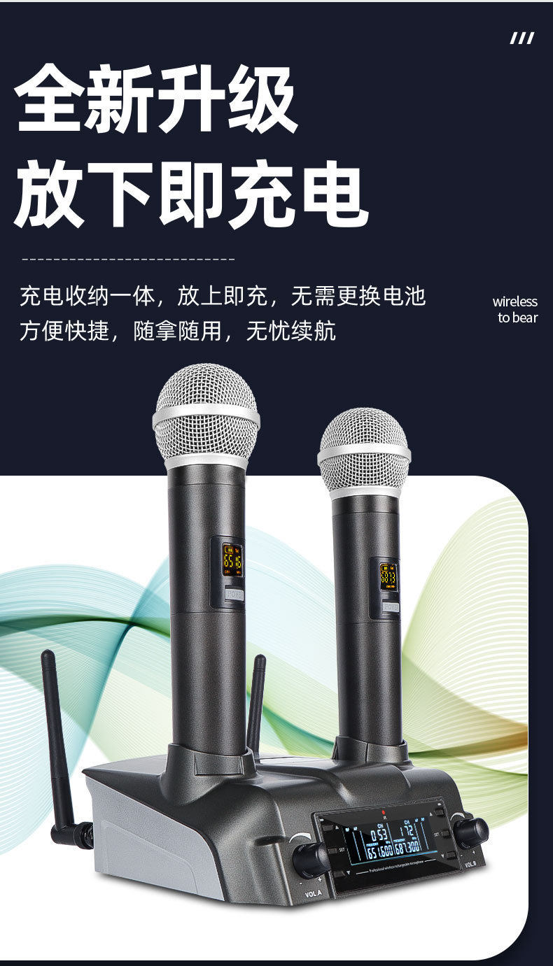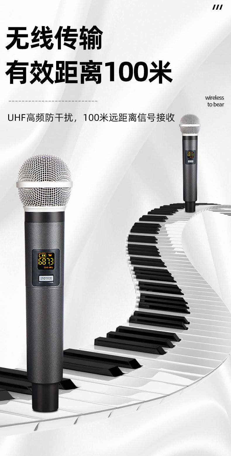 Performance U-Section Outdoor Microphone One-To-Two Wireless Handheld Microphone for Home Stage Wedding Conference Live Broadcast Microphone