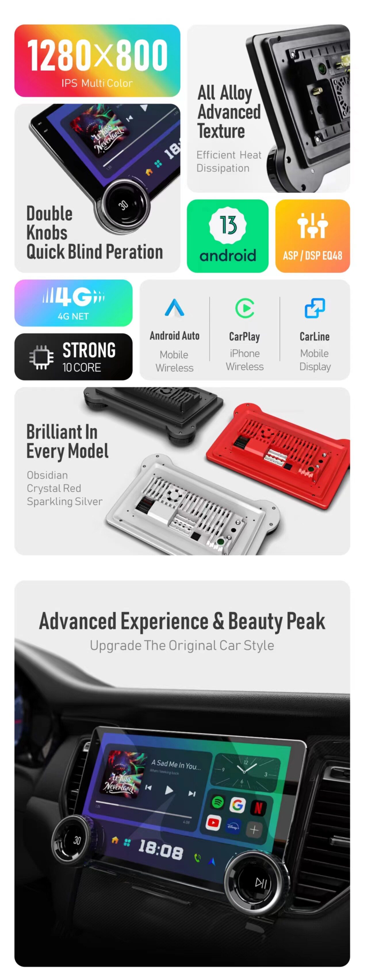| Specifications | 10.1ich wifi carplay 1+64g 1280*720 (display 2+64g/4+64g) |