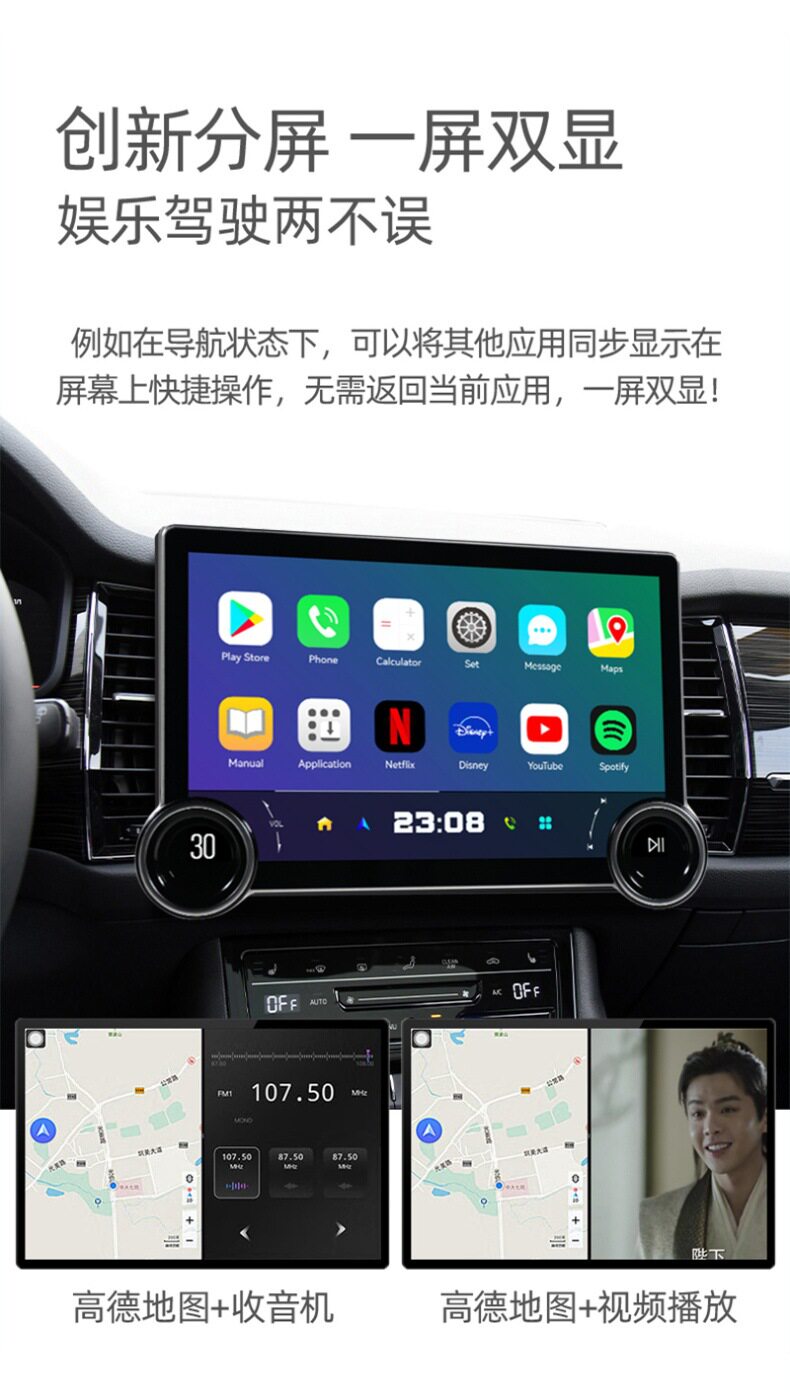 Variable car machine central control large screen navigation 10.1 inch car machine large screen navigation 2K intelligent Android all-in-one machine double knob