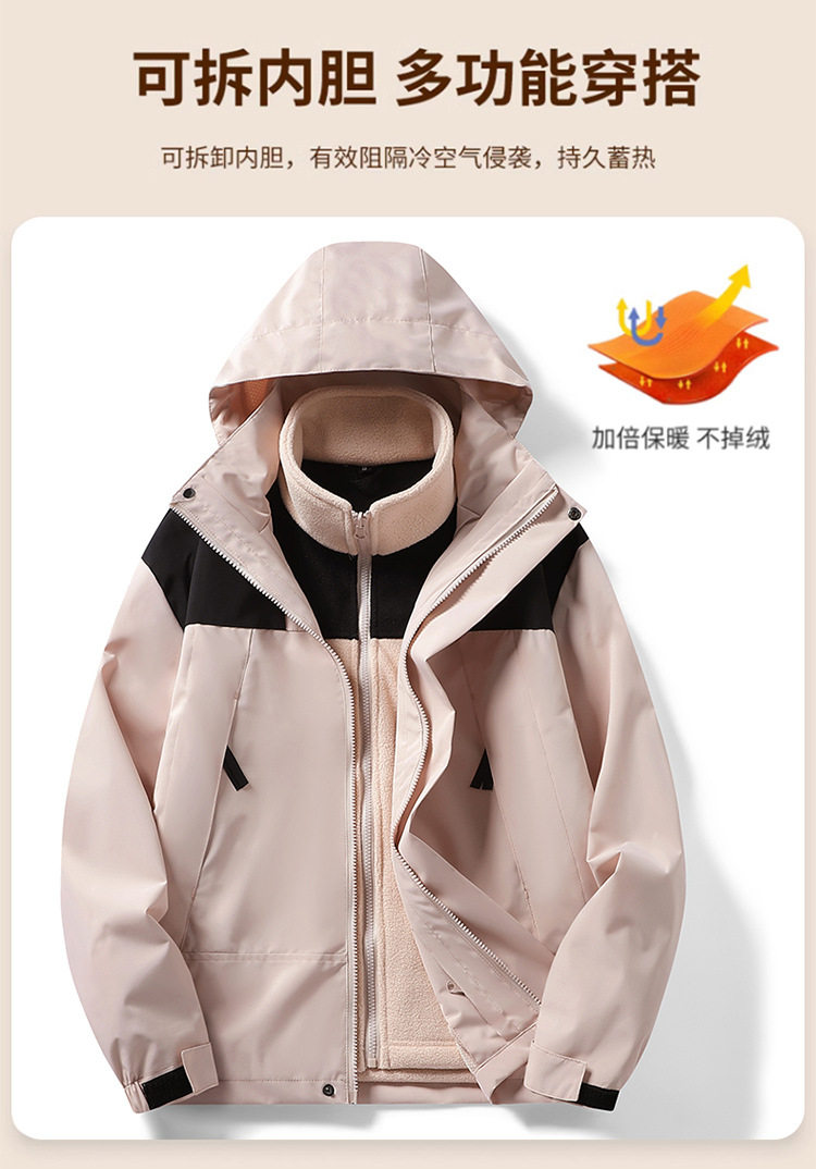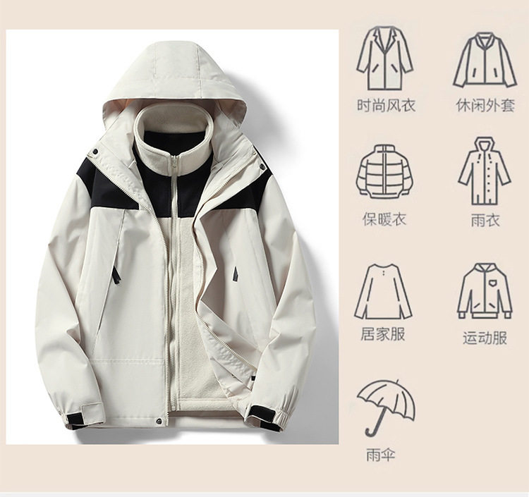 Women's 2023 New Outdoor Three-in-One Waterproof Windproof Xizang Travel Jacket Mountaineering Suit for Men