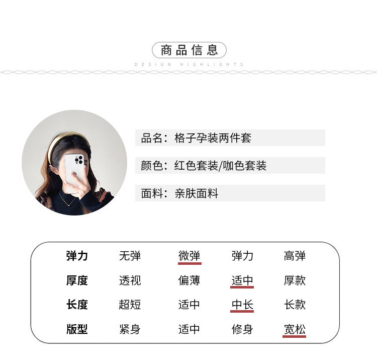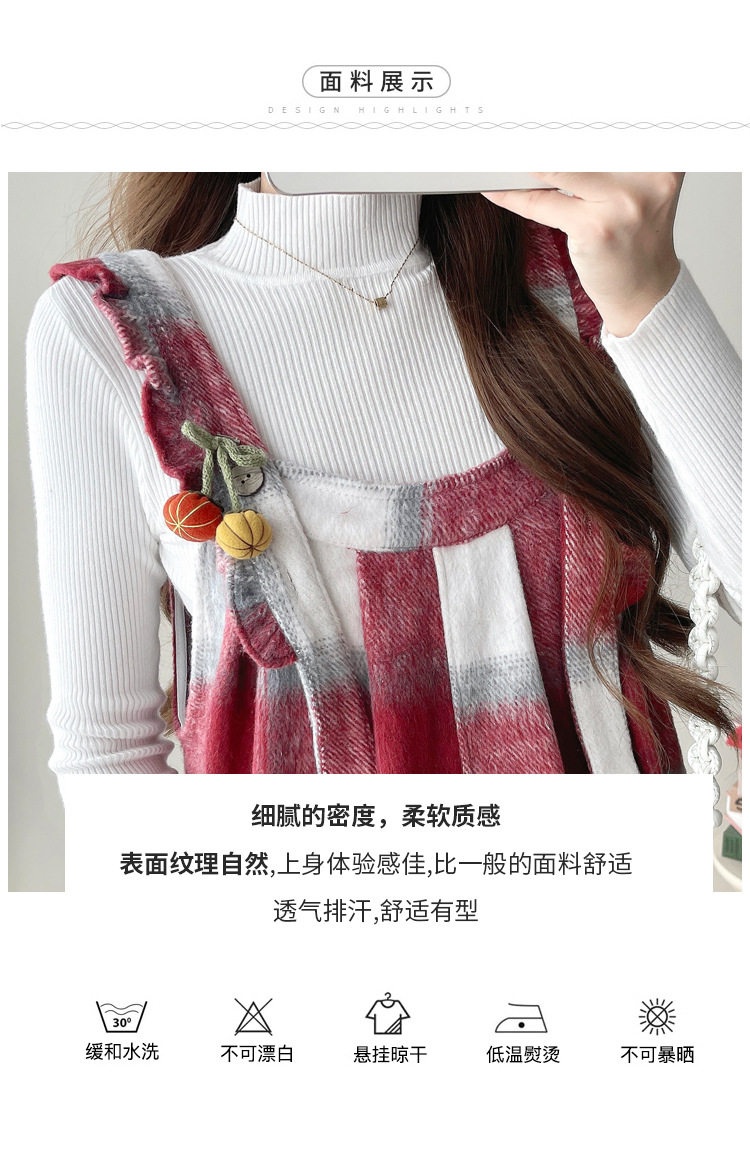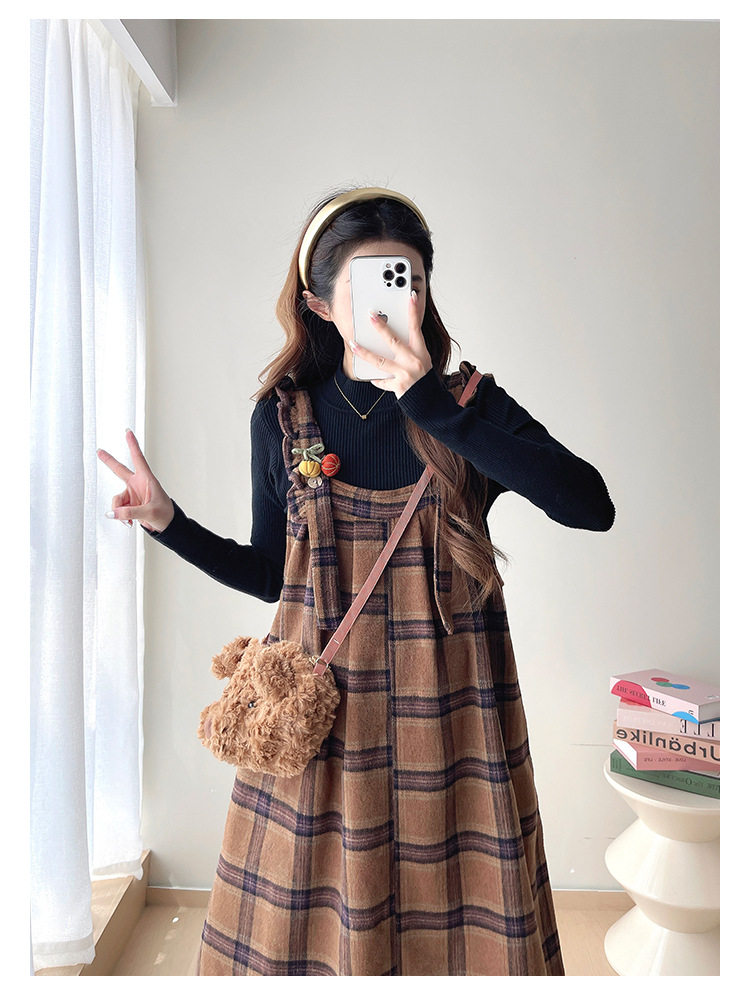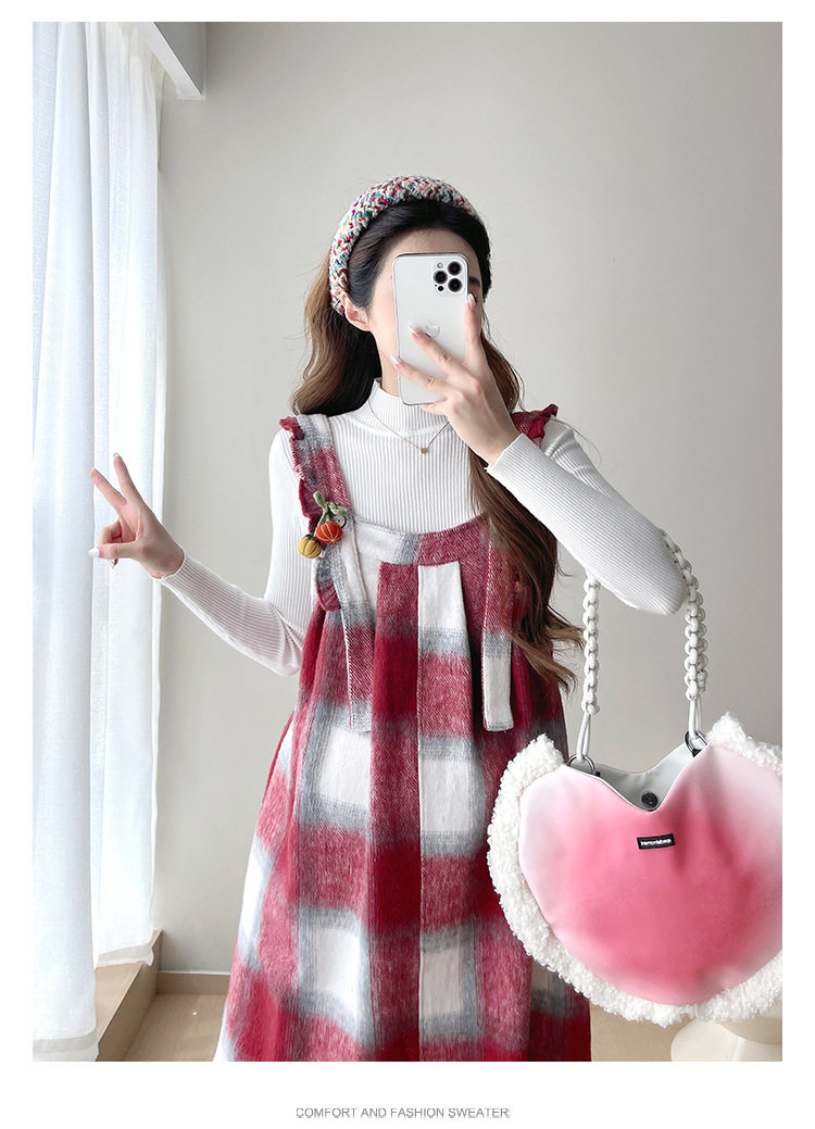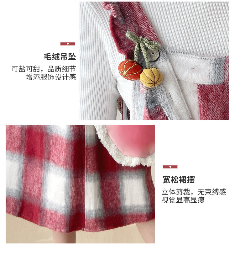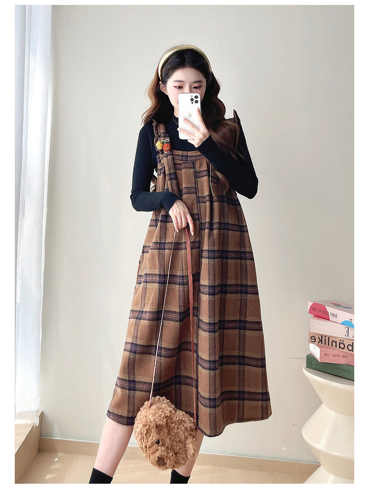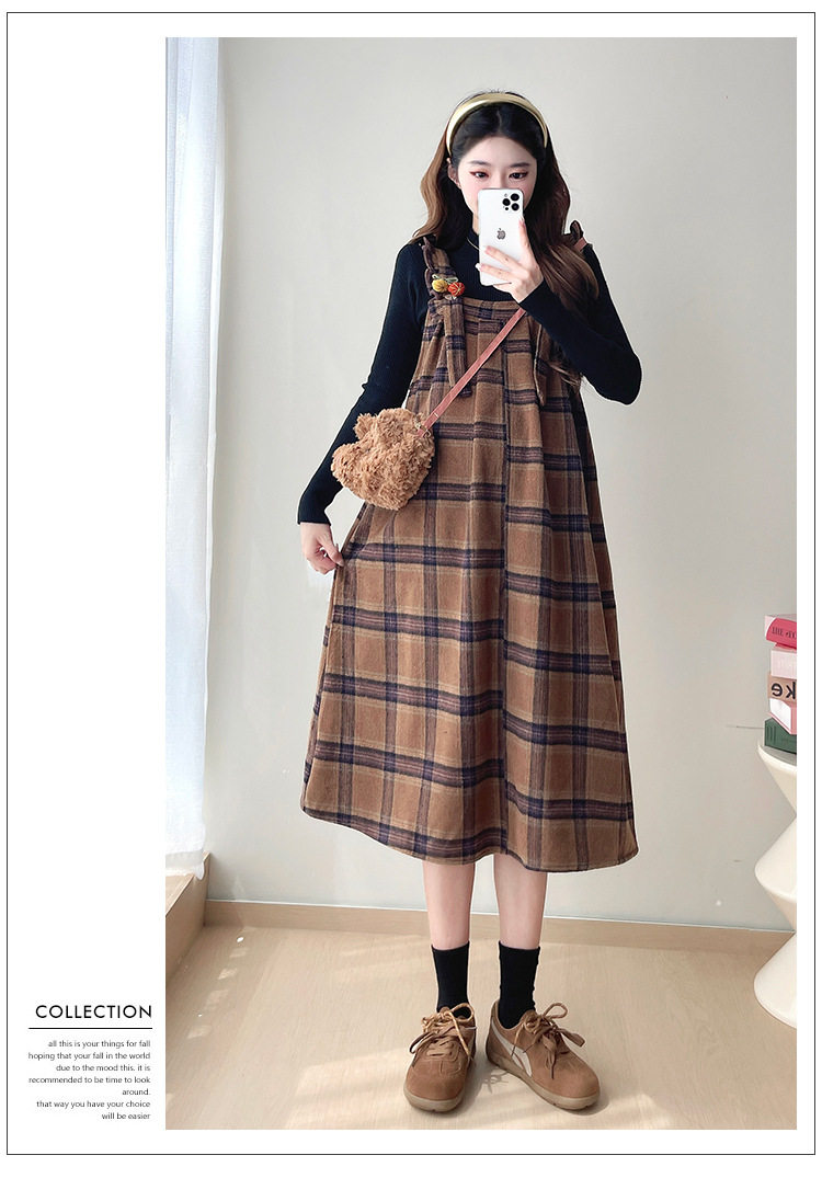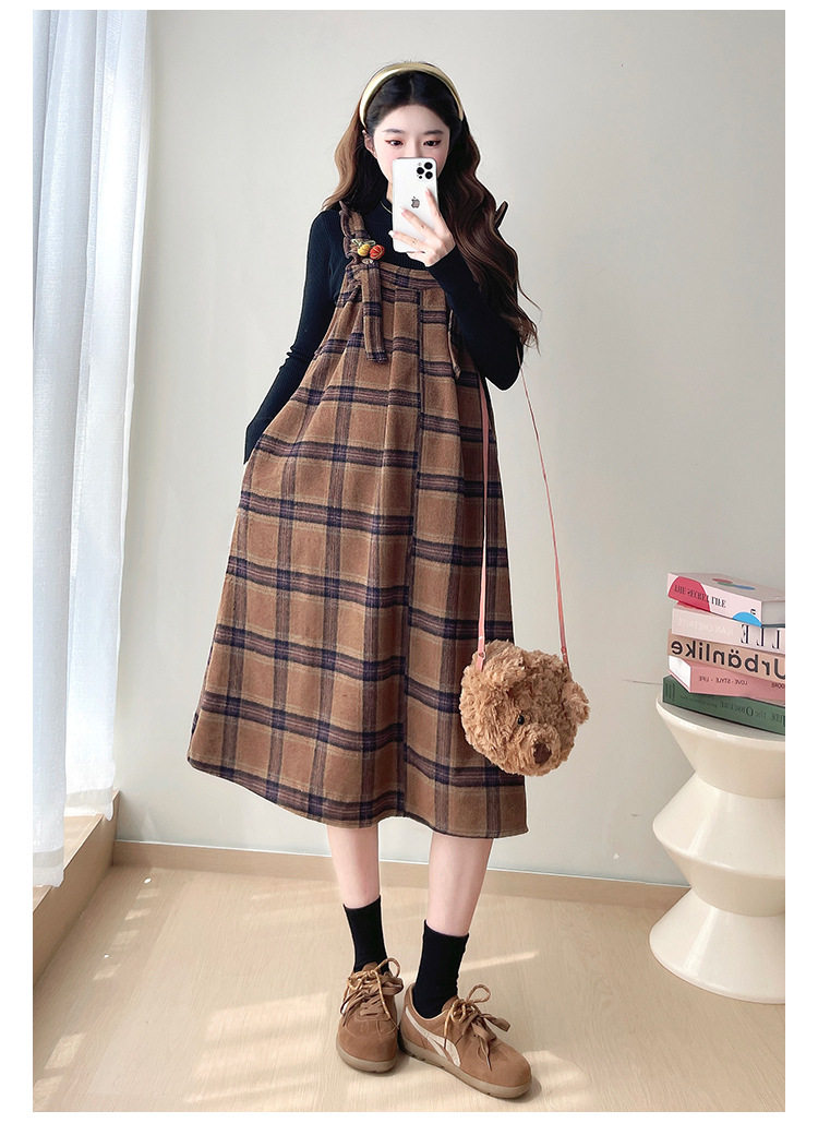 Maternity 2024 Autumn and Winter New Sweet All-match Plaid Woolen Vest Base Knitted dress Two-piece Set