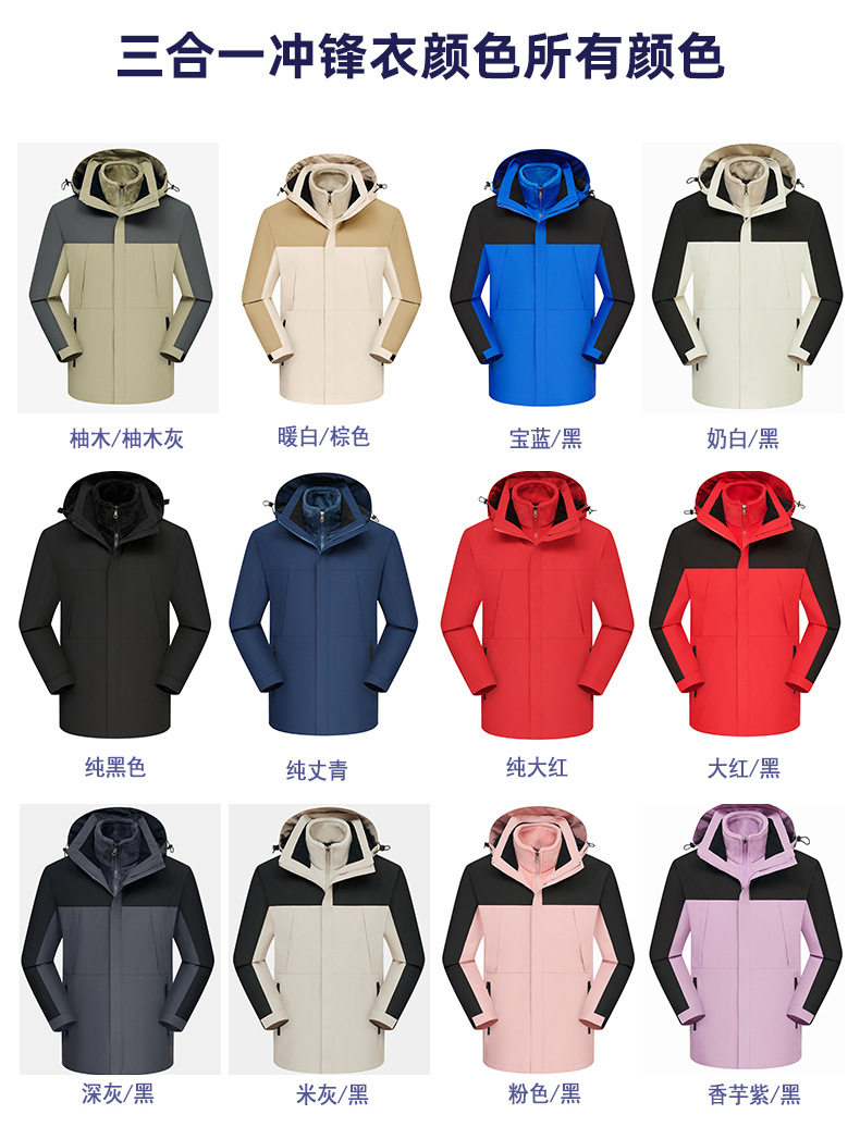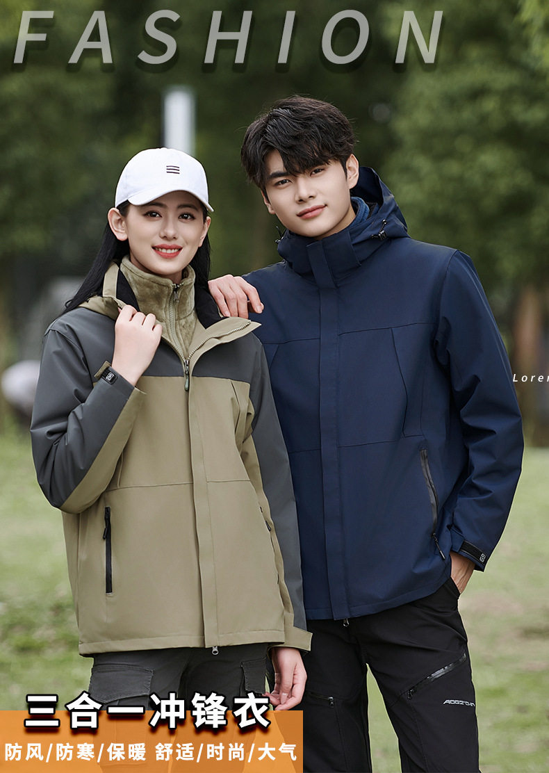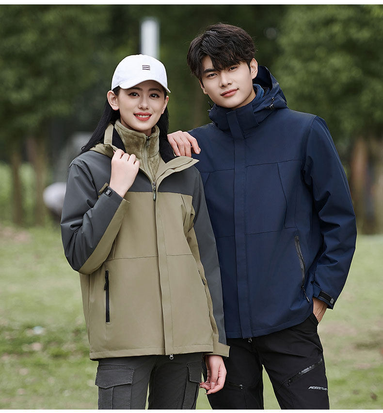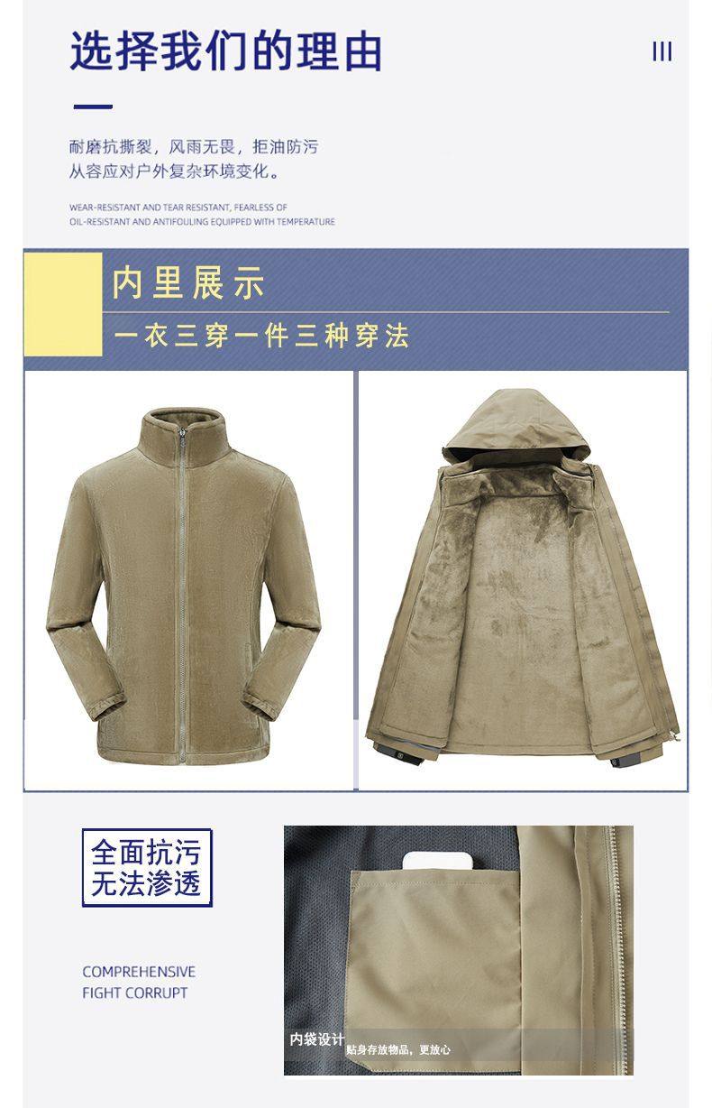 Customized Windbreaker with Logo Printed, Three-In-One Workwear for Men and Women, Custom-Made Windproof Outdoor Fleece-Lined Work Jacket
