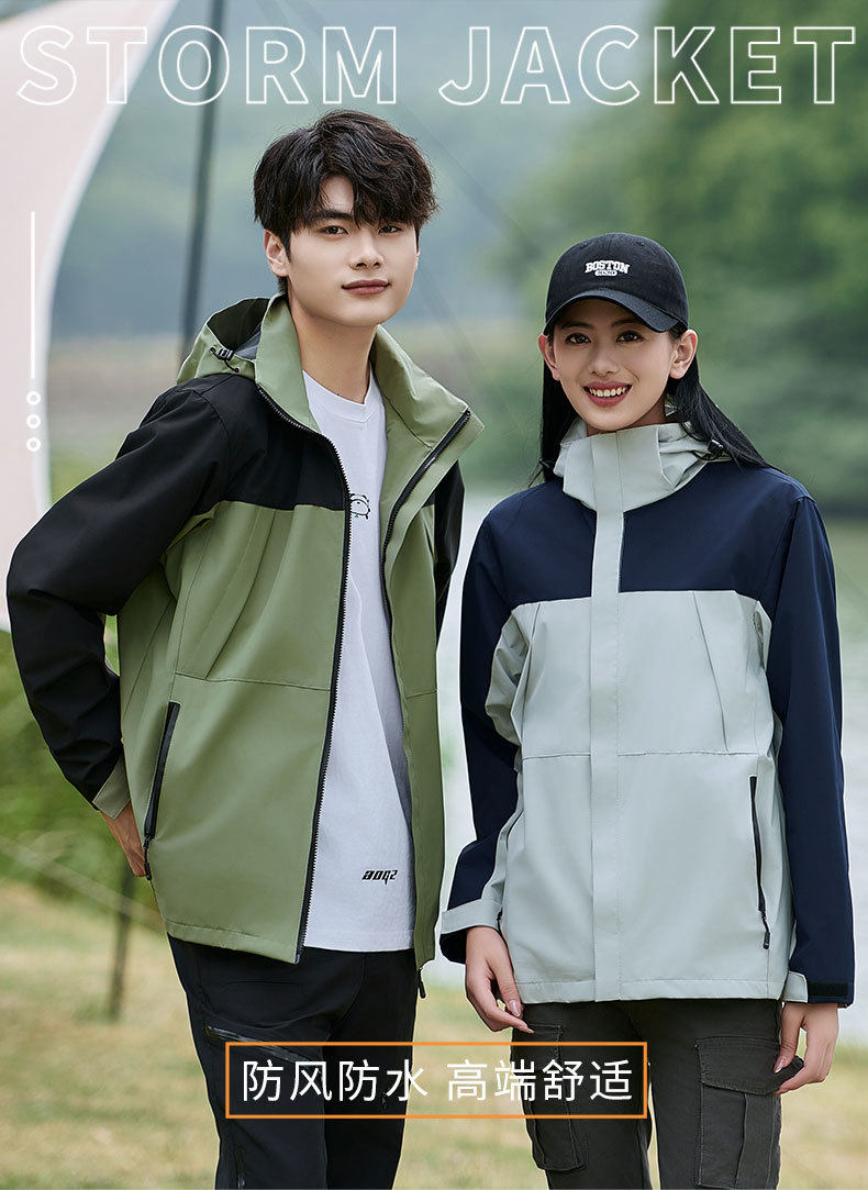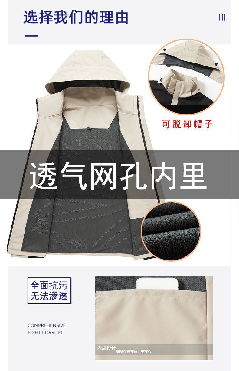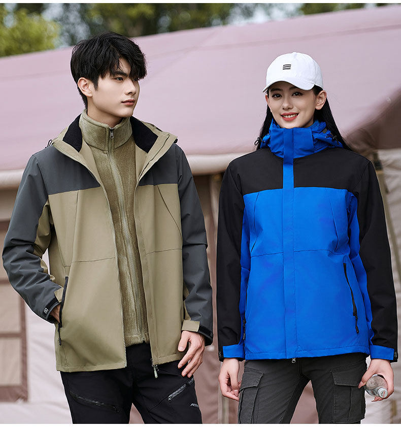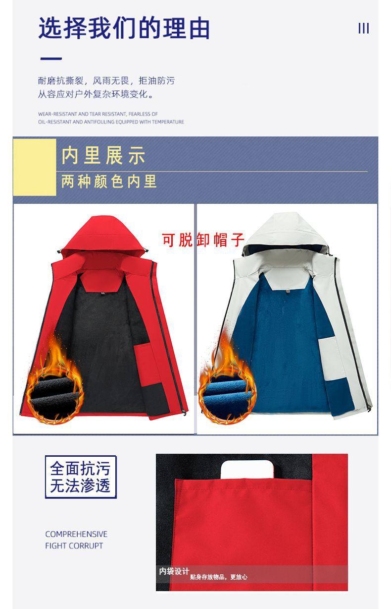 Customized Windbreaker with Logo Printed, Three-In-One Workwear for Men and Women, Custom-Made Windproof Outdoor Fleece-Lined Work Jacket