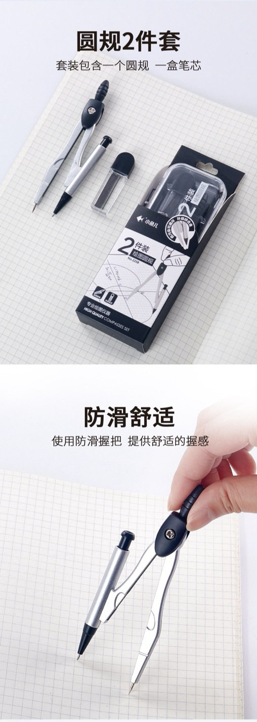 Xiaoyuer 2258 drawing compasses 2-piece set student office drawing math tools durable metal compasses wholesale