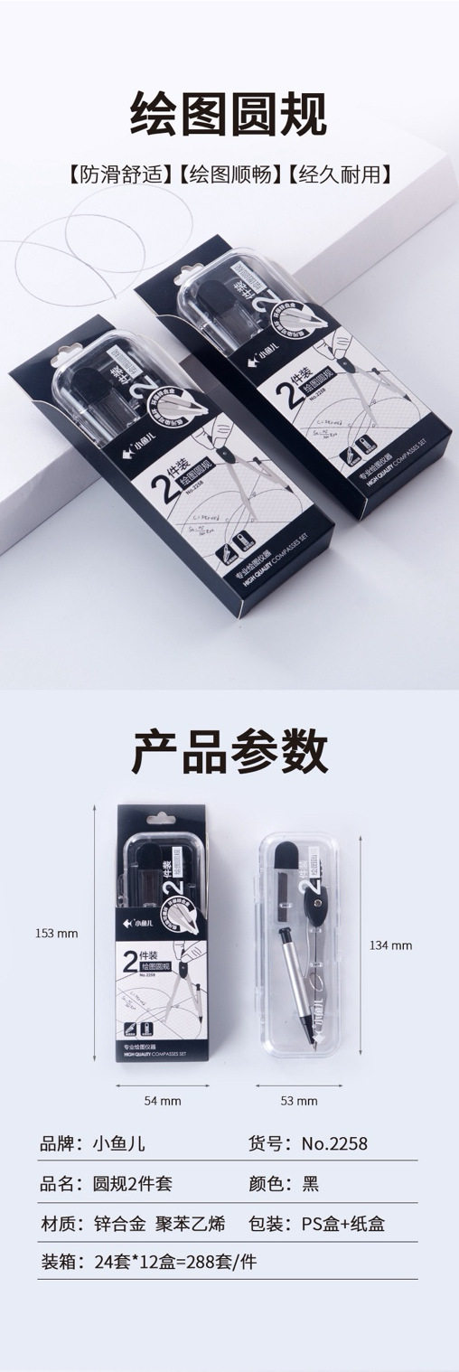 | Size | 2258 drawing compass 2-piece set [24 sets/box] |