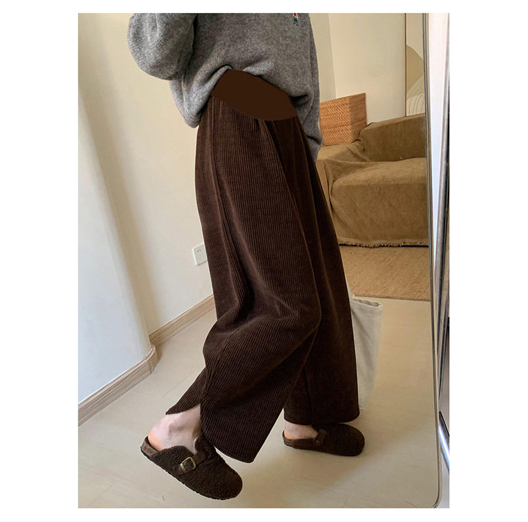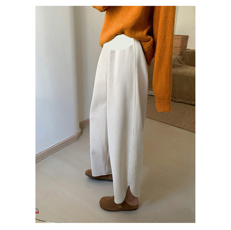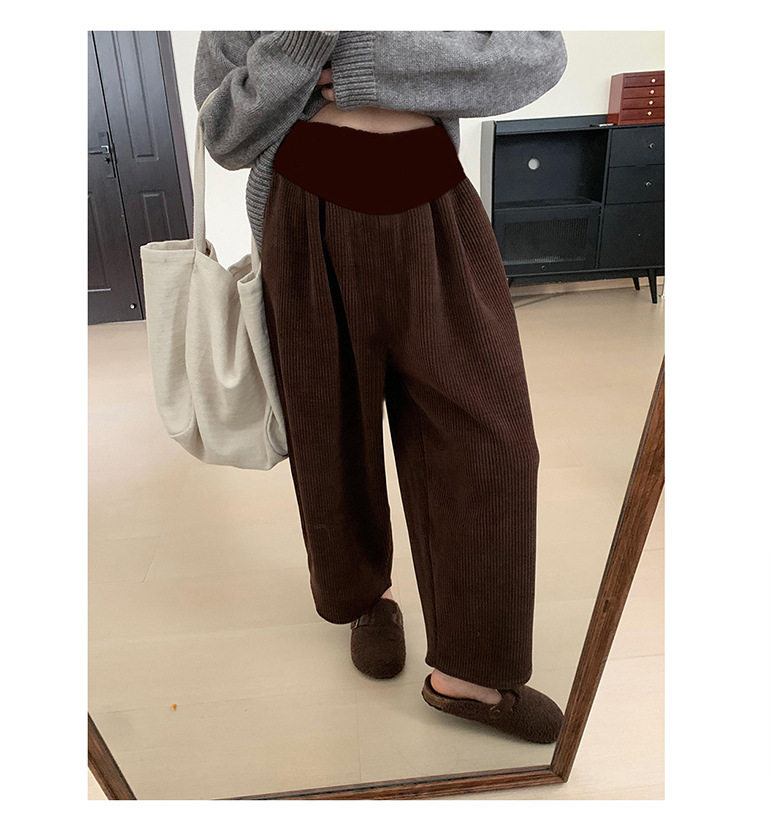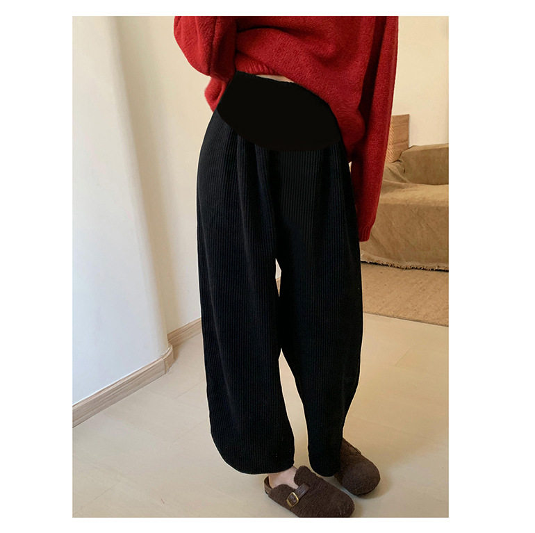 Pregnant Women's Chenille Belly Slimming Loose Autumn and Winter Granny Pants Pregnant Women's European Cotton Velvet Casual Wide Leg Straight Leg Pants fleece-lined