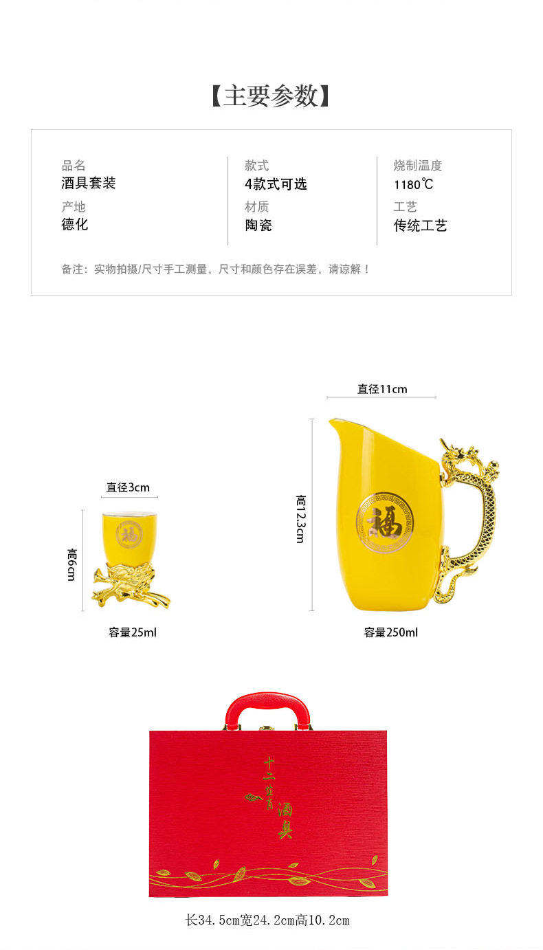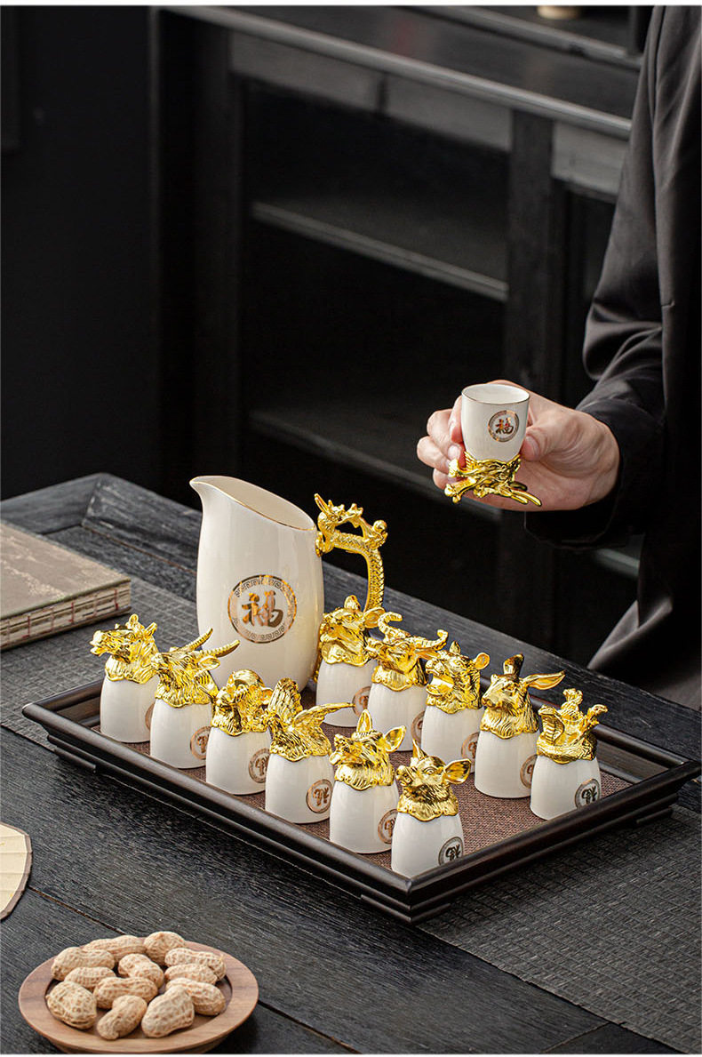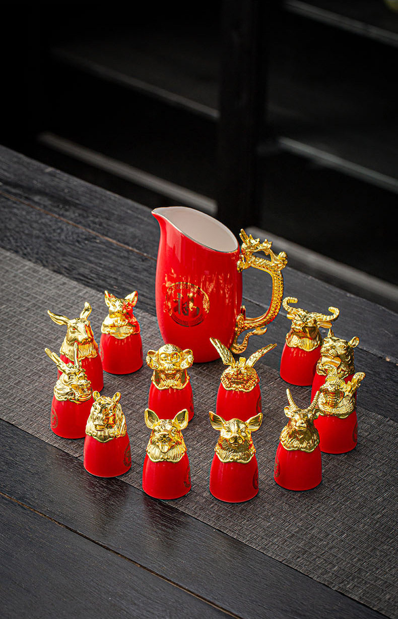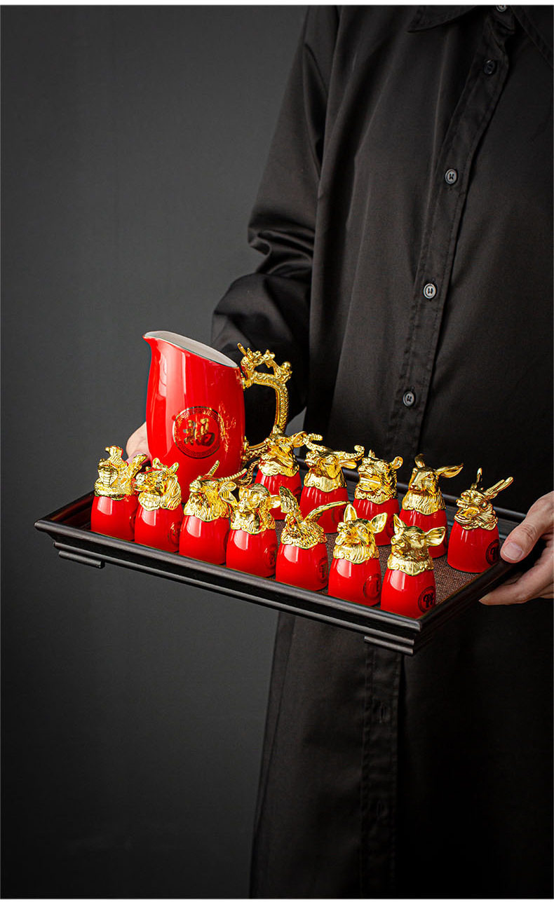 | Color | 12 zodiac wine set/golden fu,12 zodiac wine set/platinum fu,12 zodiac wine set/blue jinfu,12 zodiac wine set/red gold blessing |