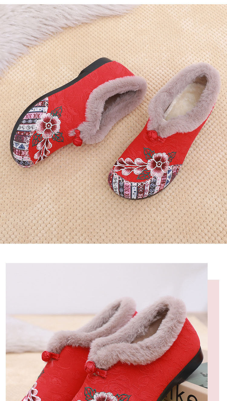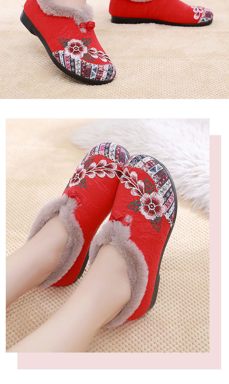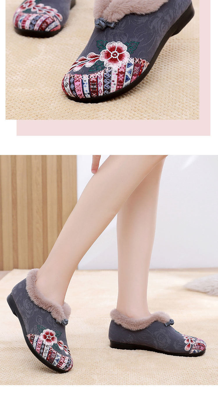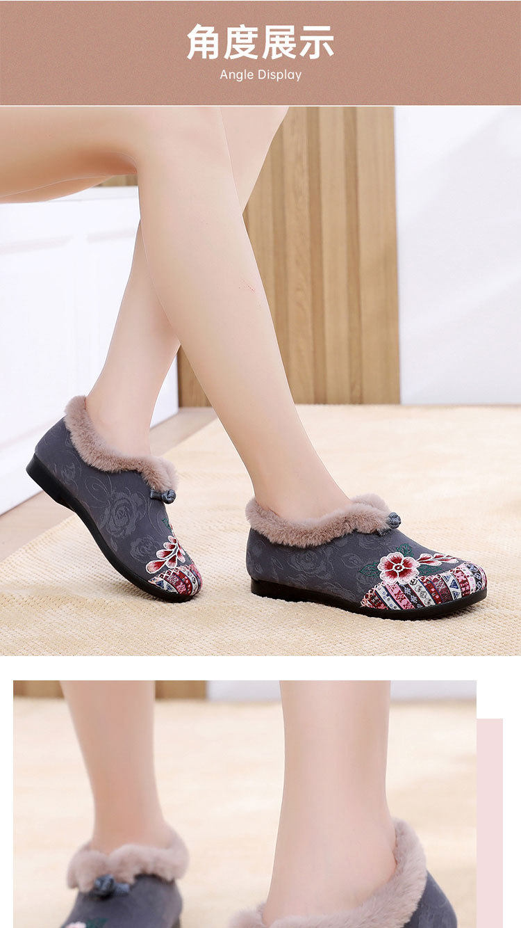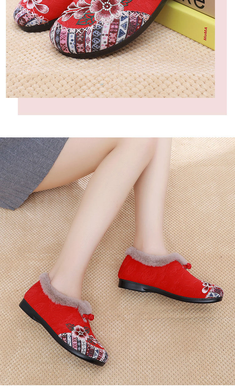 New Style Cotton Shoes Women's fleece-lined Thickened Middle-aged and Elderly Flat Embroidered Shoes Chinese Ethnic Style Slip-on Shoes for Mother Hanfu